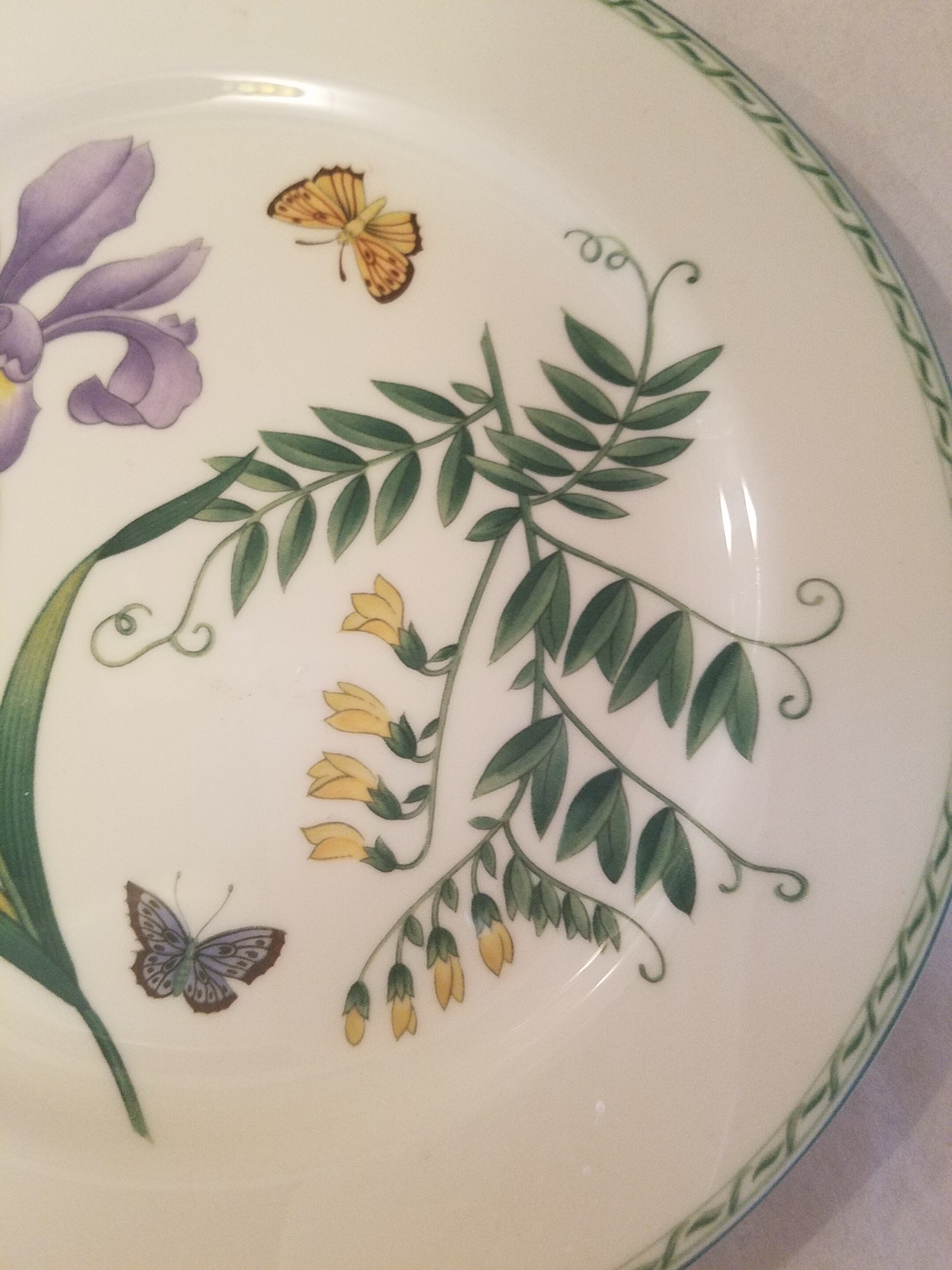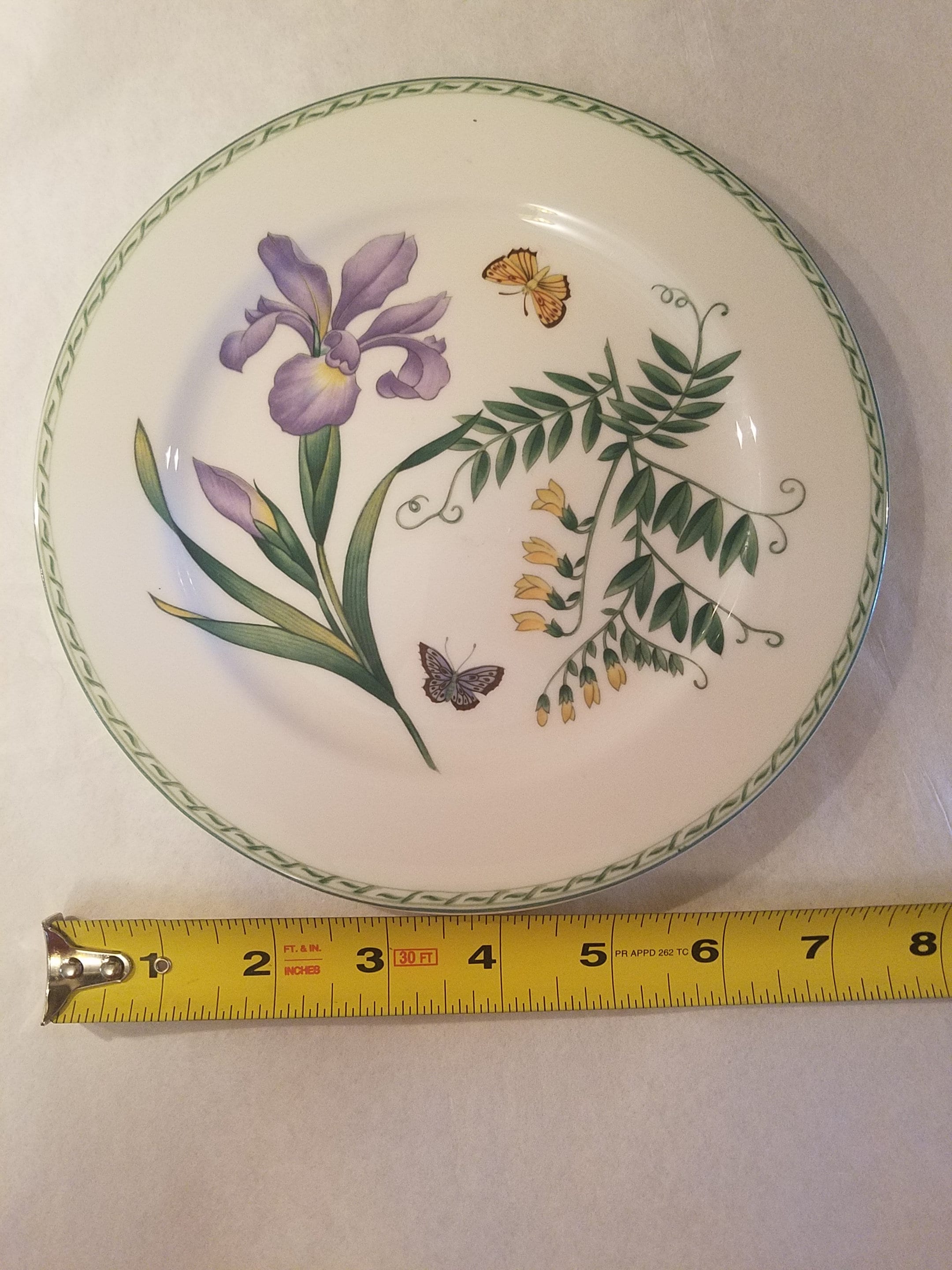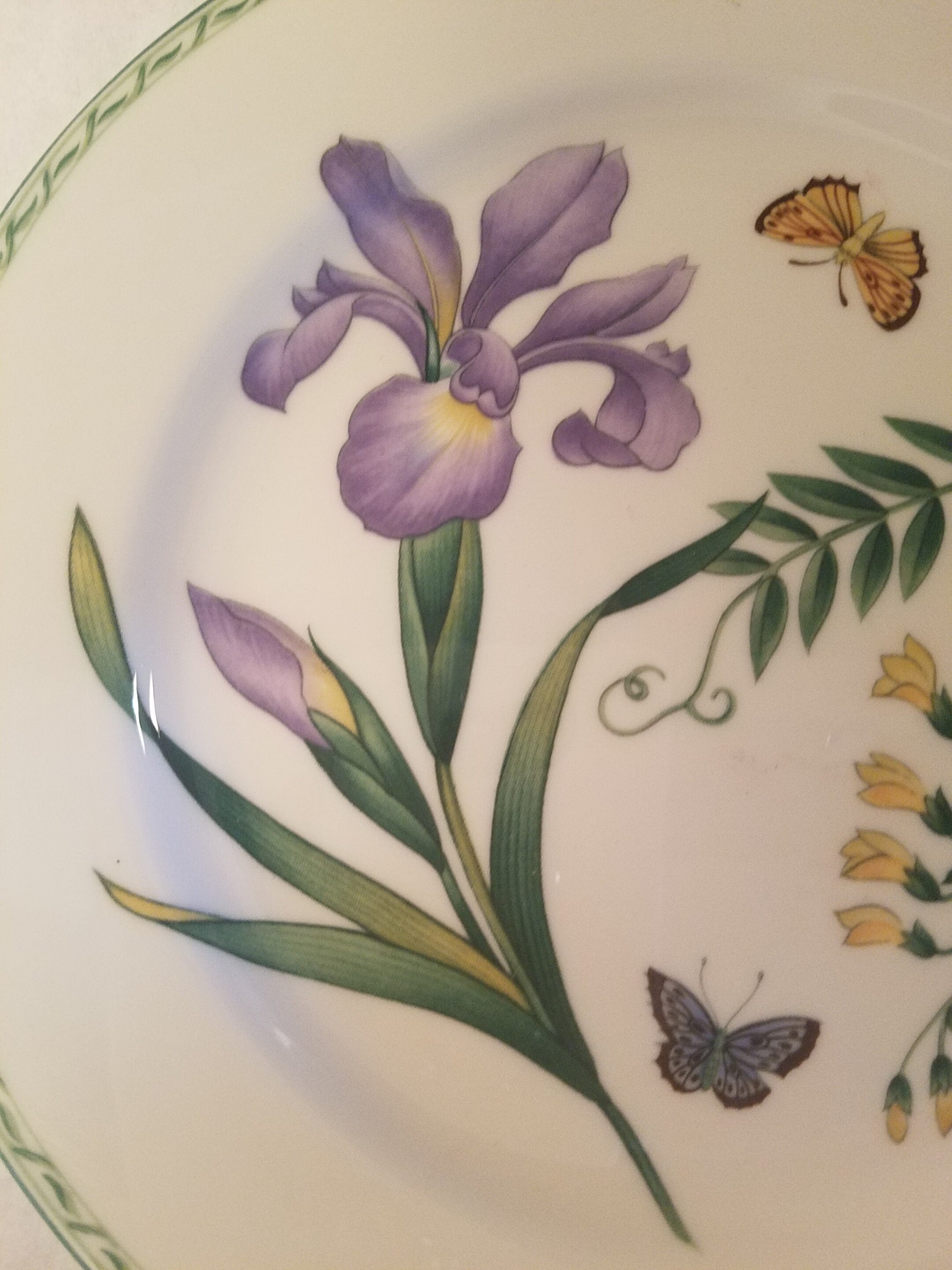 Beautiful botanical design with a purple iris, butterflies and more. Like new condition! Ultima, super strong fine china pattern F2003