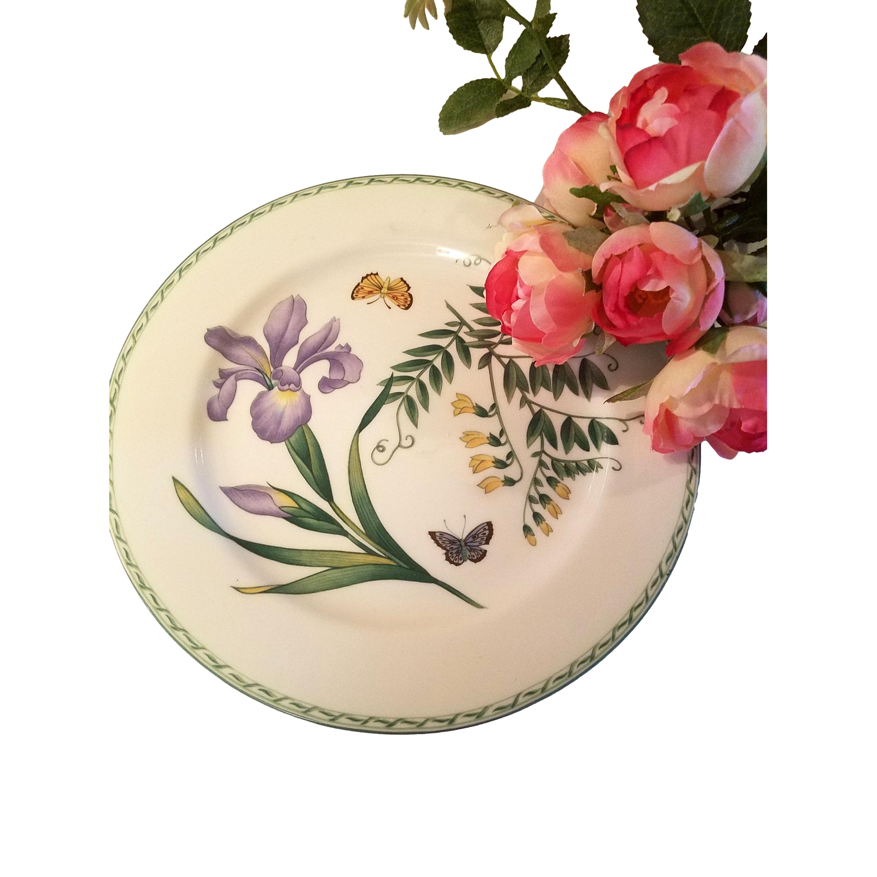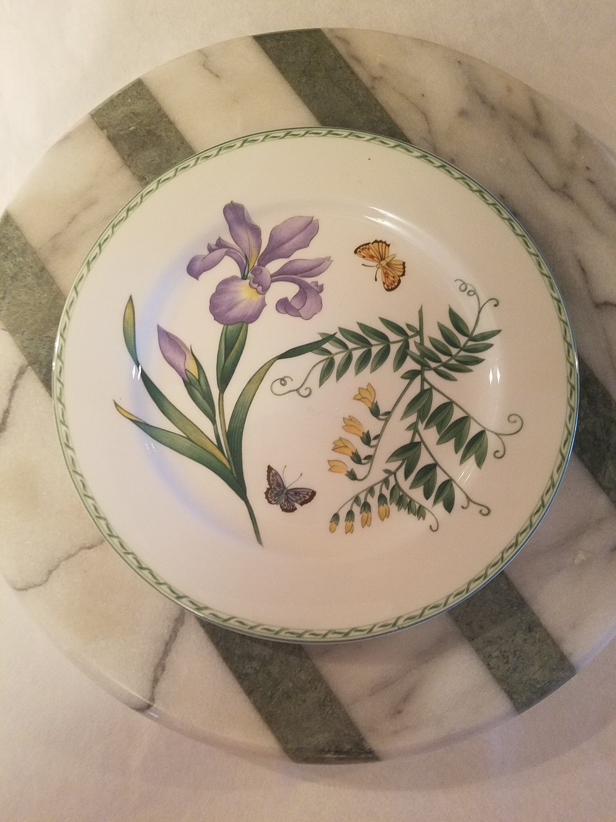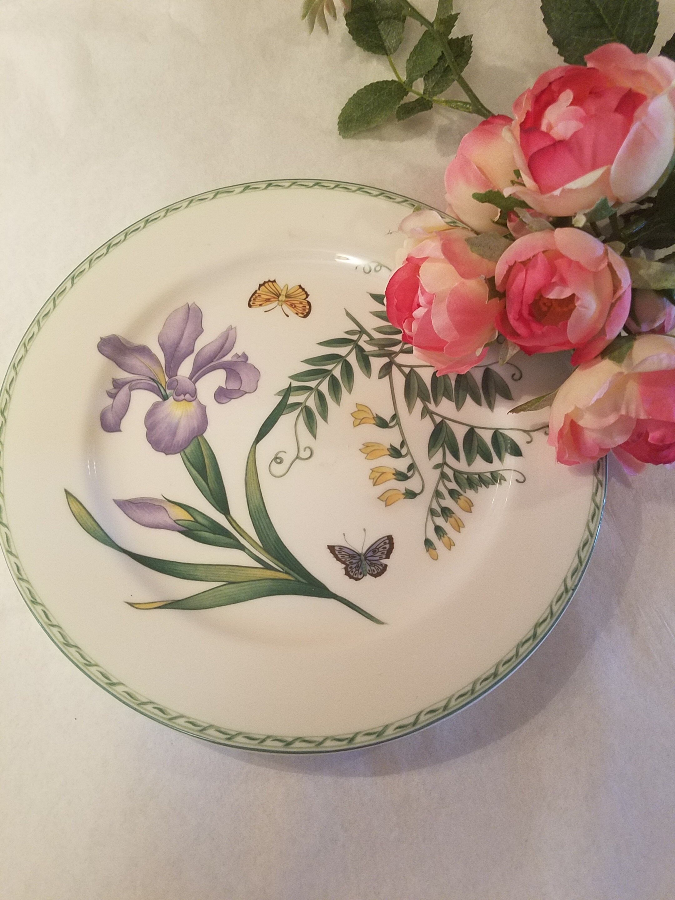 Beautiful botanical design with a purple iris, butterflies and more. Like new condition! Ultima, super strong fine china pattern F2003