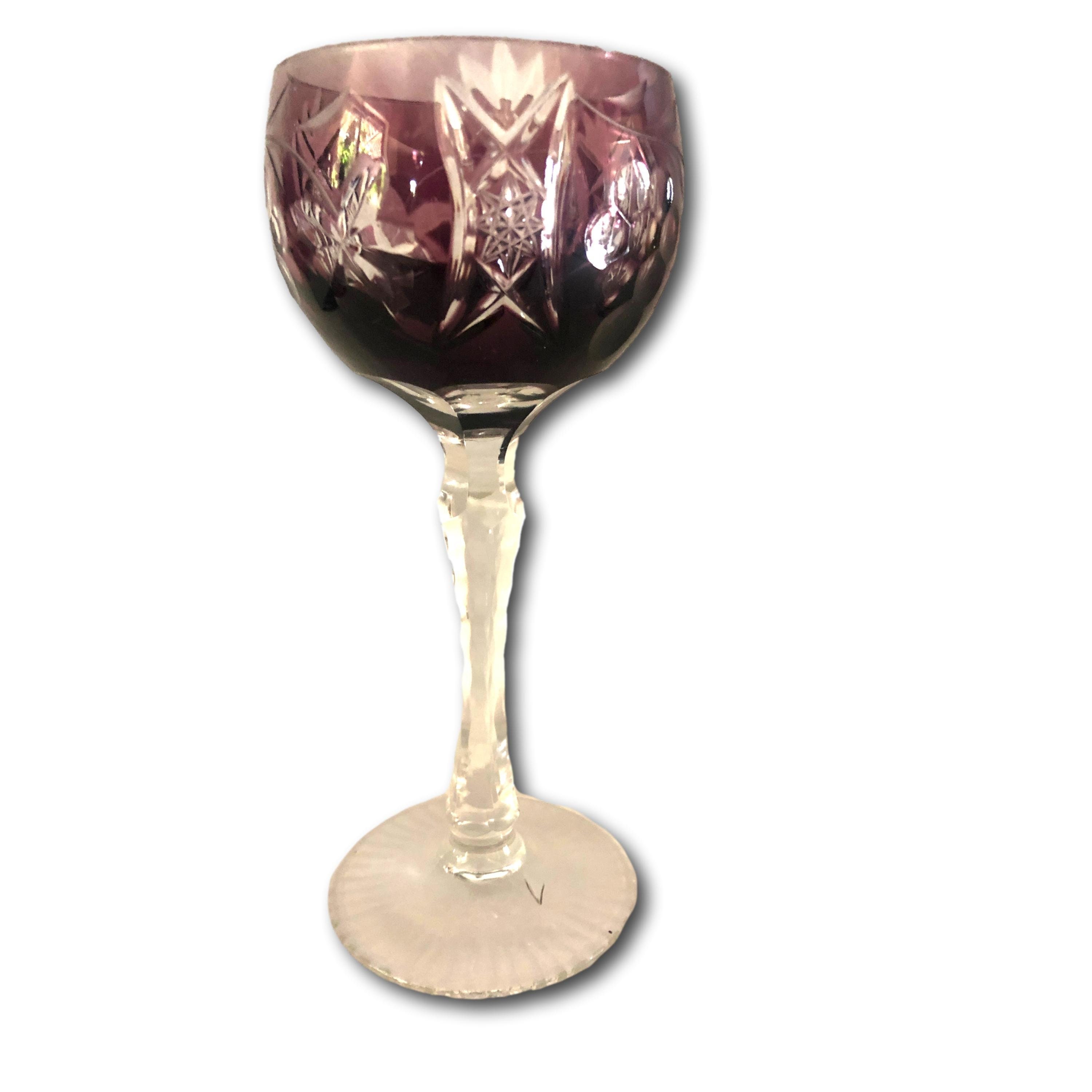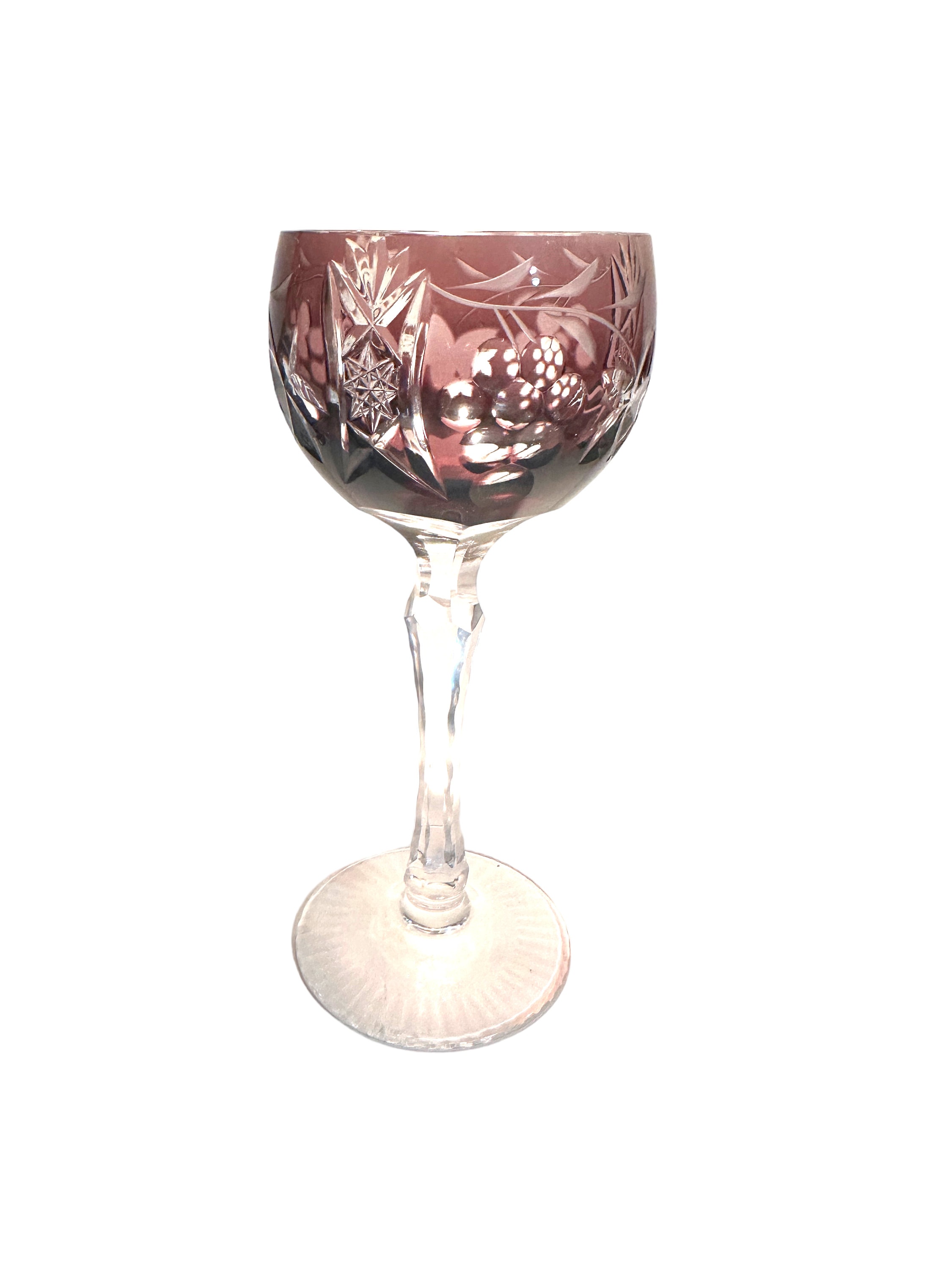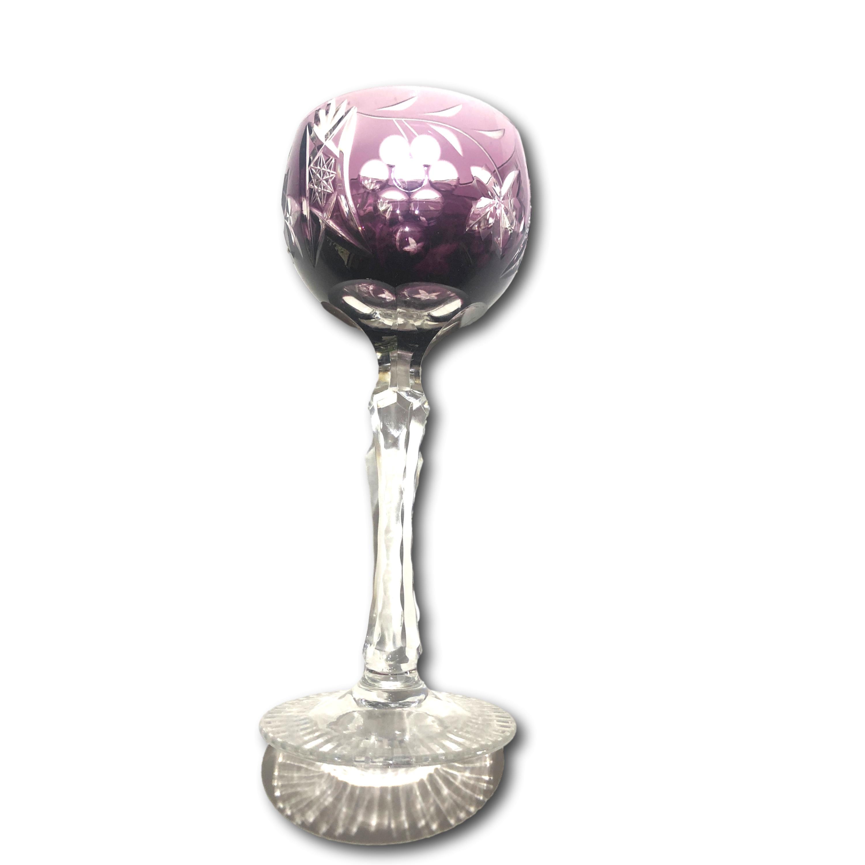 Crystal Blown Glass, Cut Glass Purple Wine Goblet