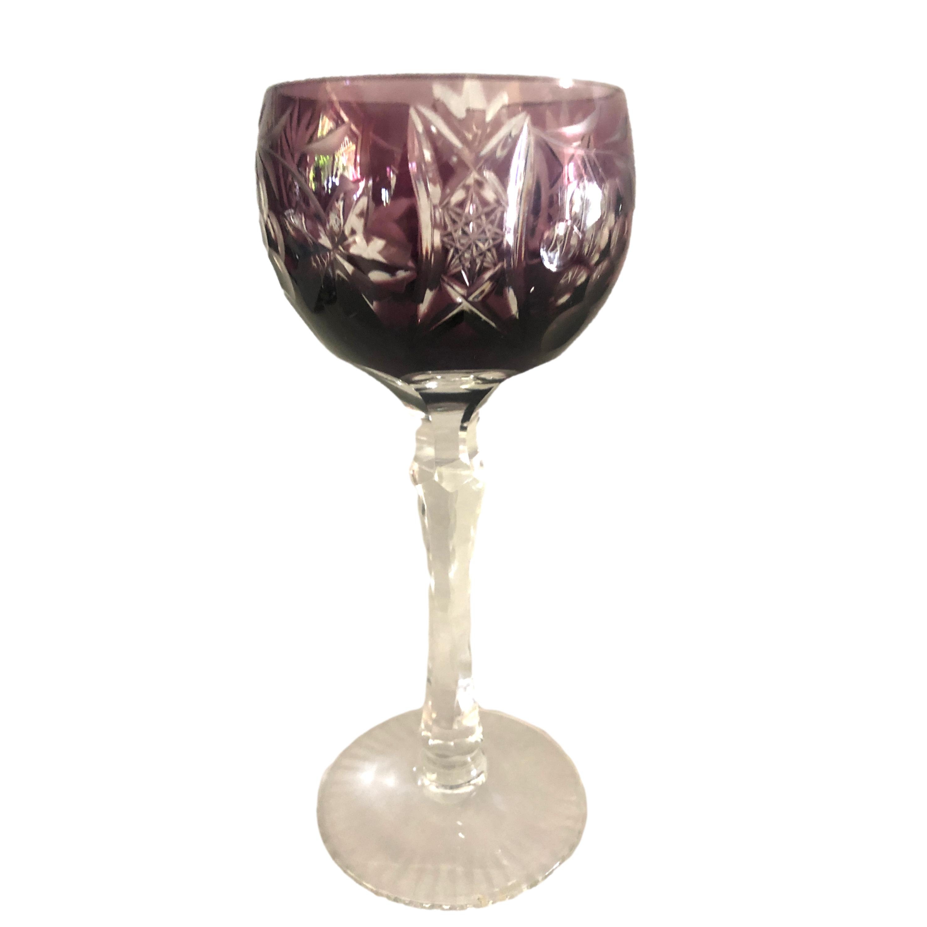 Vintage Amethyst Purple Ajka of Hungary Marsala Wine Glass Goblet Crystal Stemware