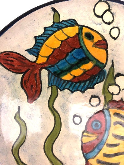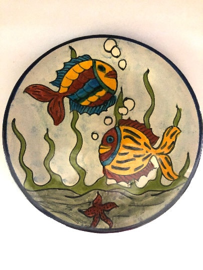 Talavera Mexican Pottery Plate | Hand Painted Dish with Fish | Ocean Core Wall Hanging