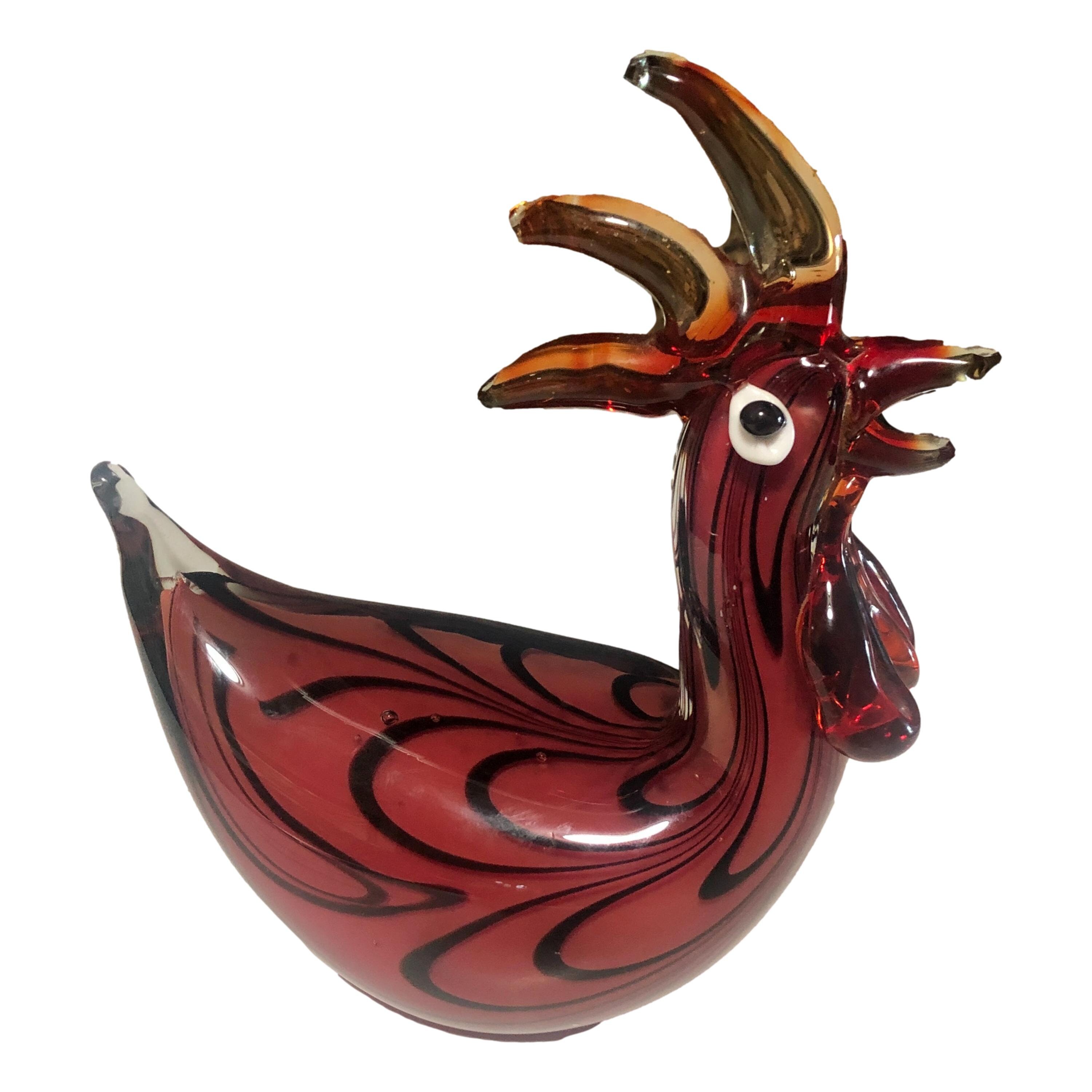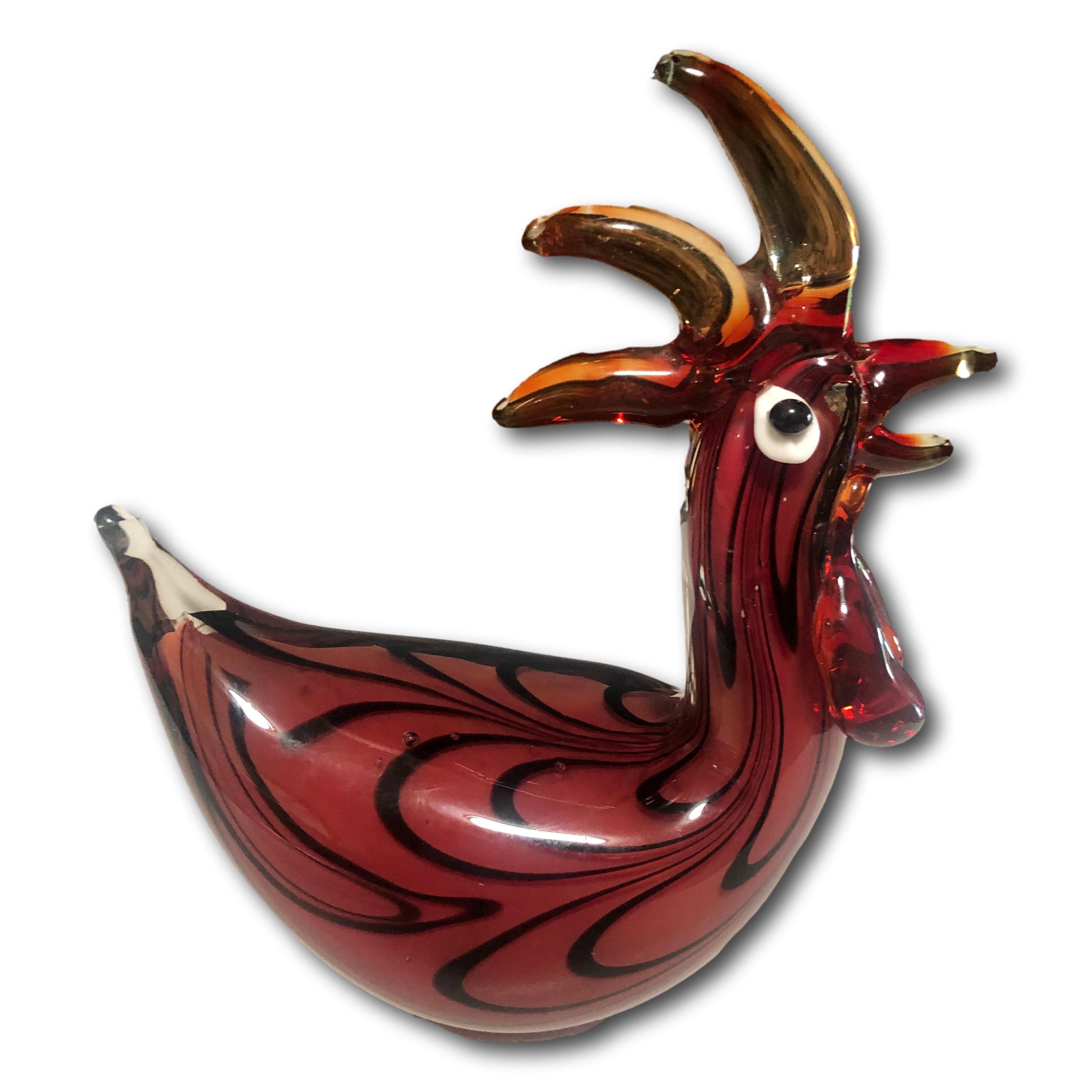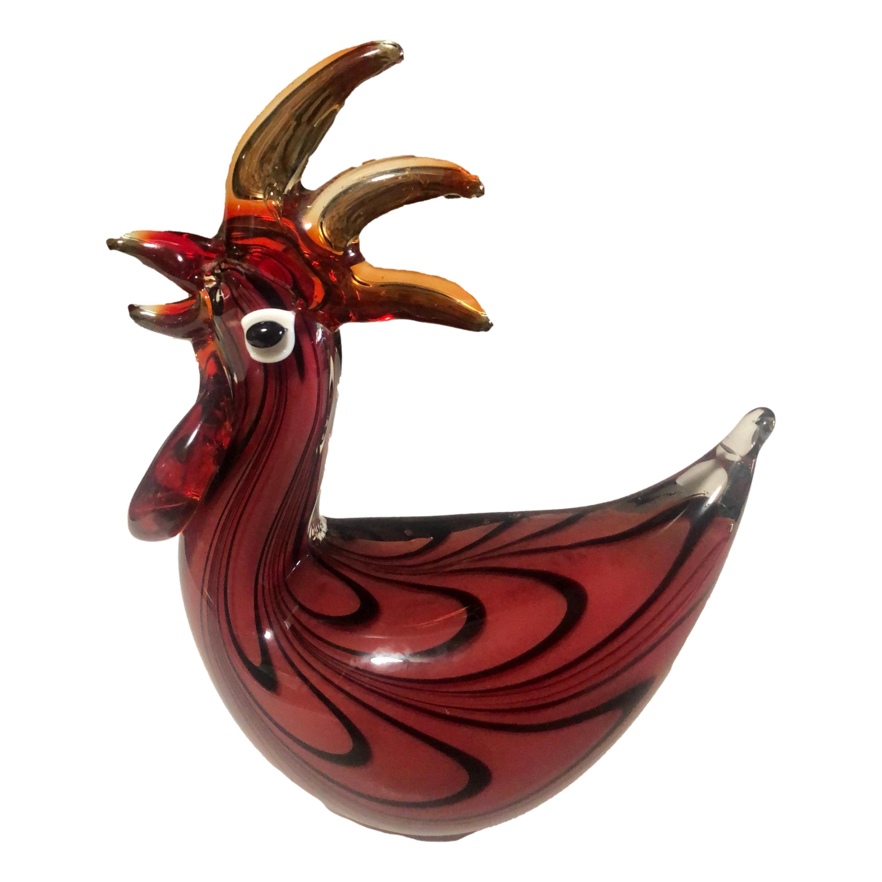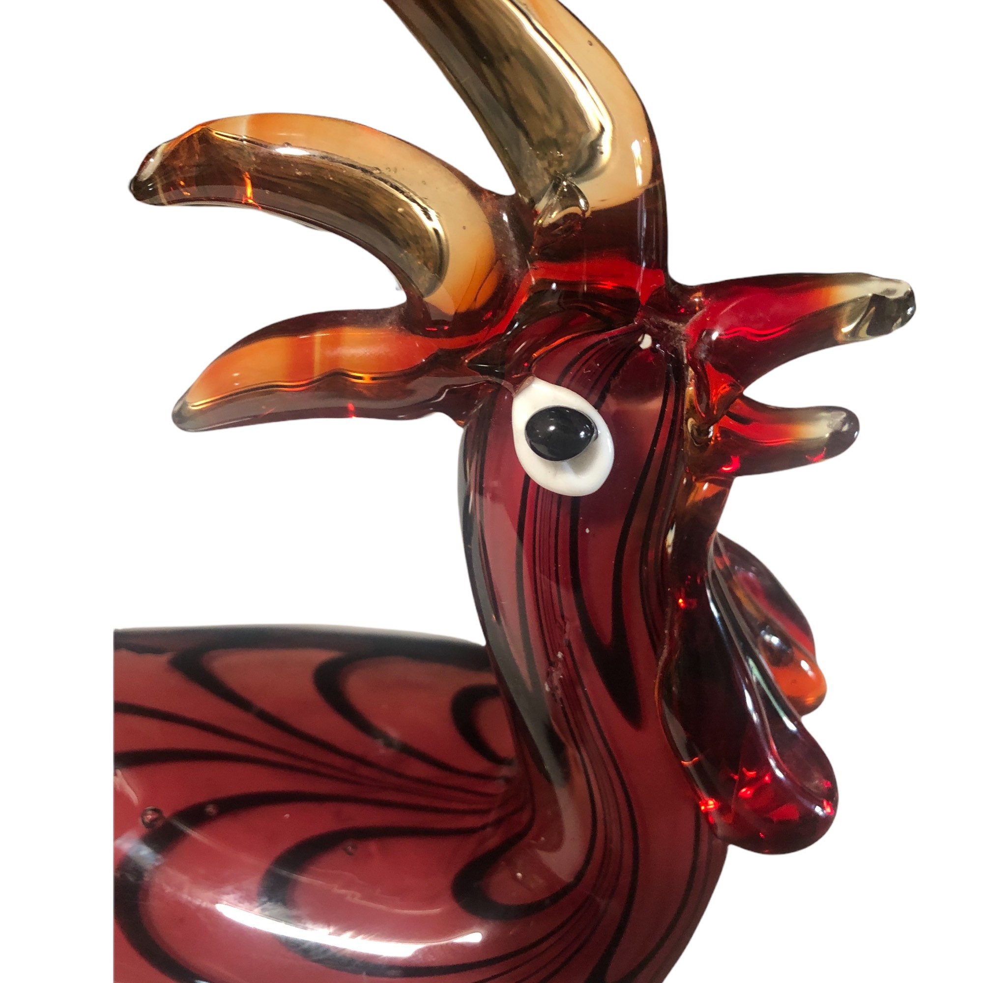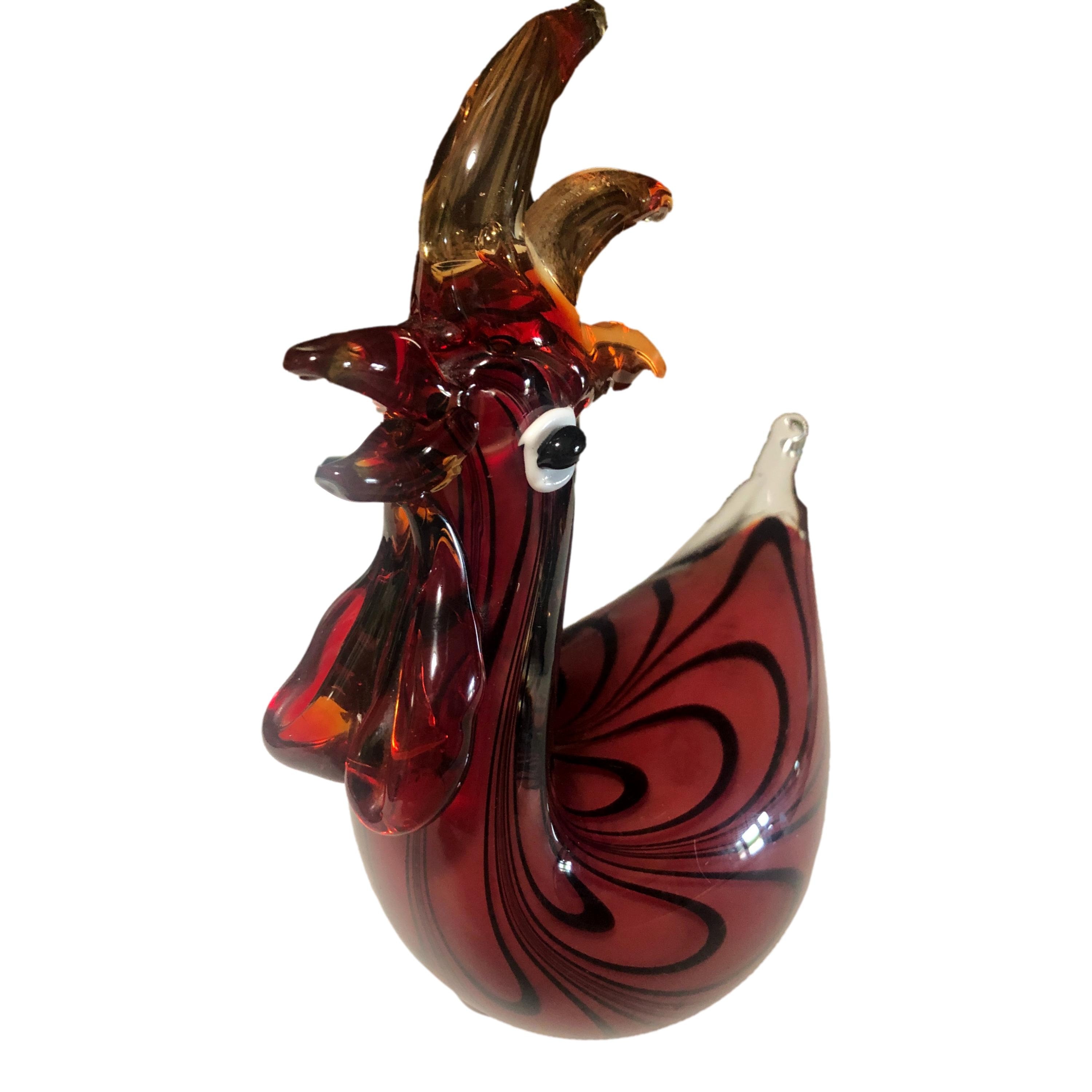 Vintage Murano Style Glass Rooster Figurine: Italian Art Glass Bird
