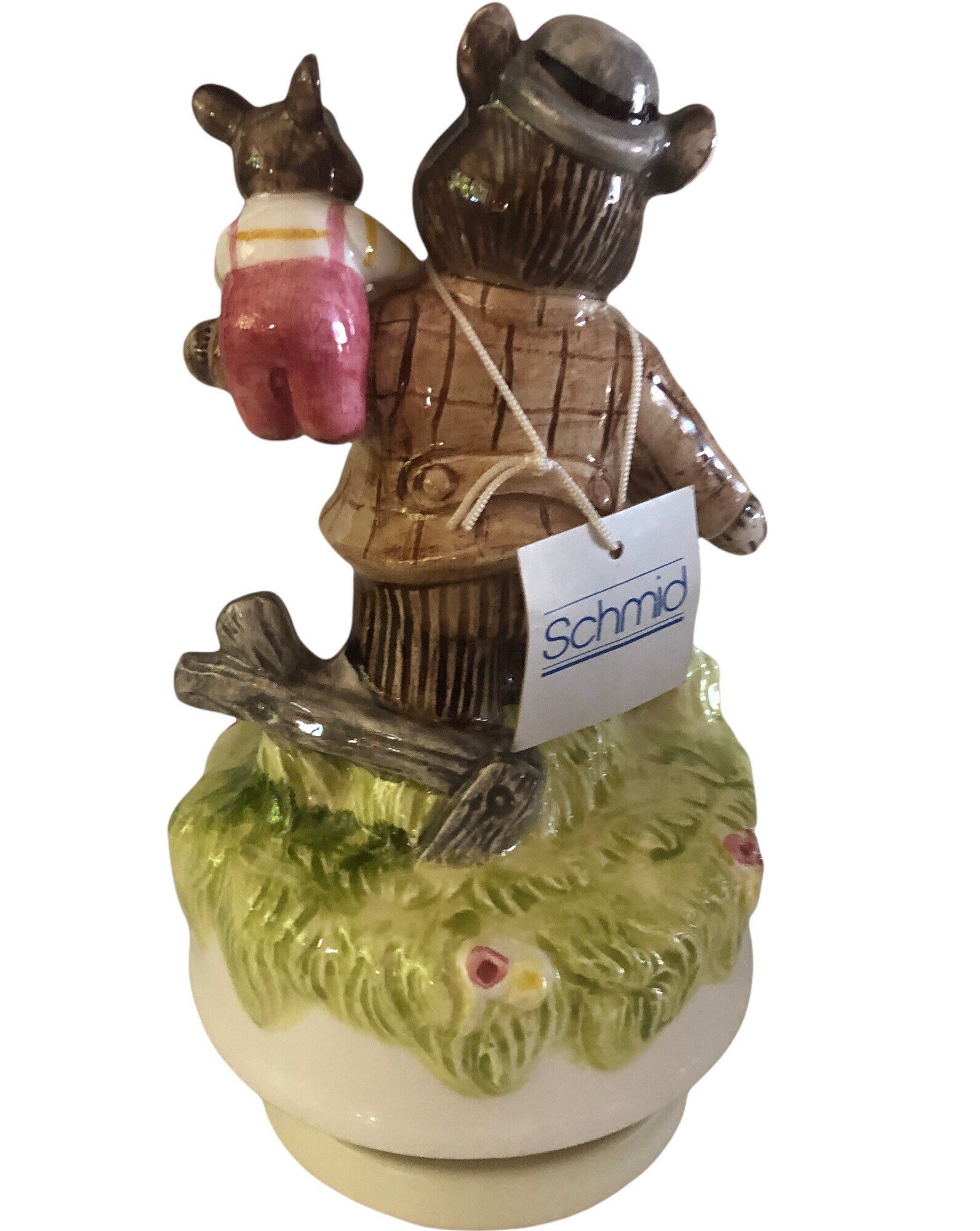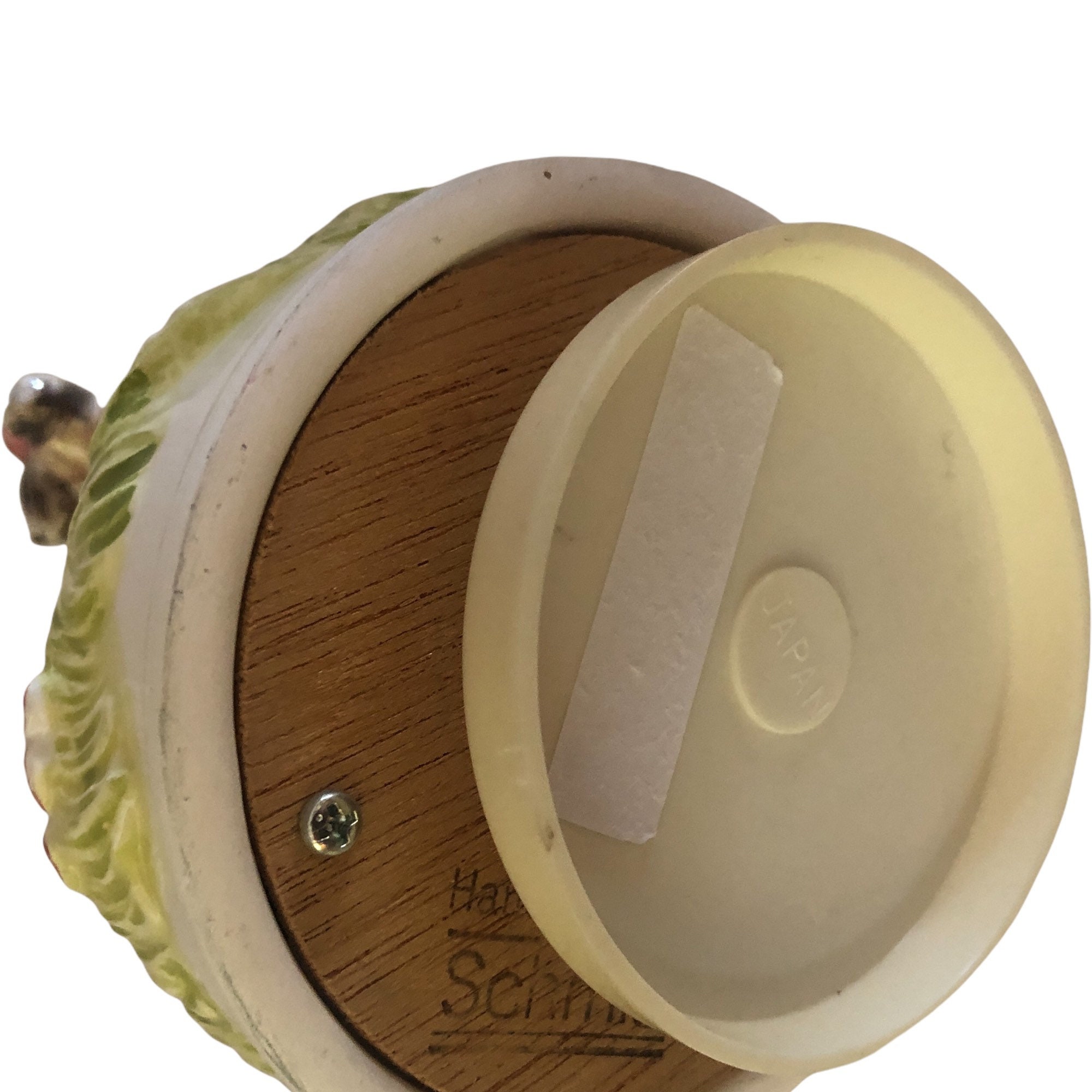 Vintage music box by Schmid. The Beatrix Potter mouse character is a rotating music box. The tune is "Oh My Papa". Great music box vintage gift! It has the original tag and was made in Japan.