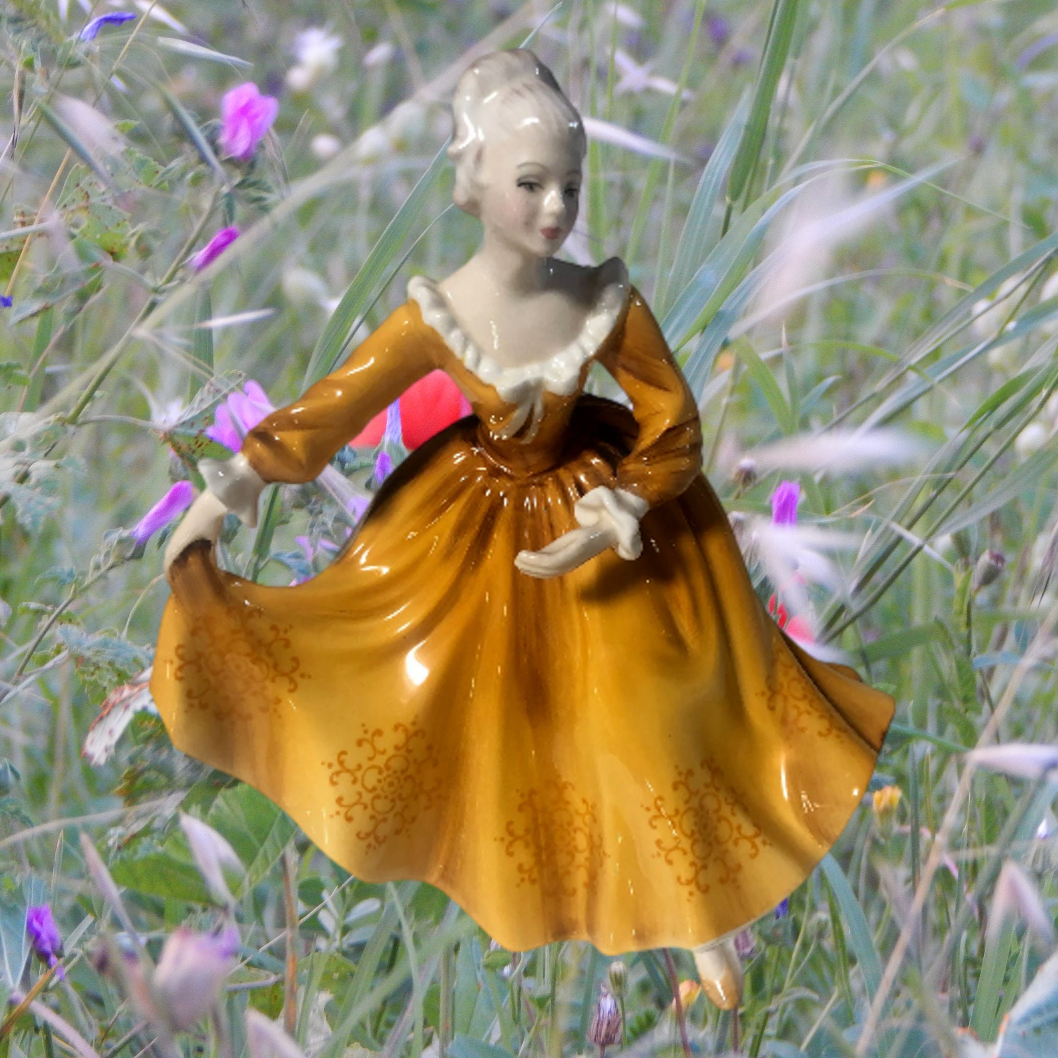 Royal Doulton Lady Kirsty Figurine Hand-Painted Bone China Peggy Davies Orange Dress Collectible Figurine