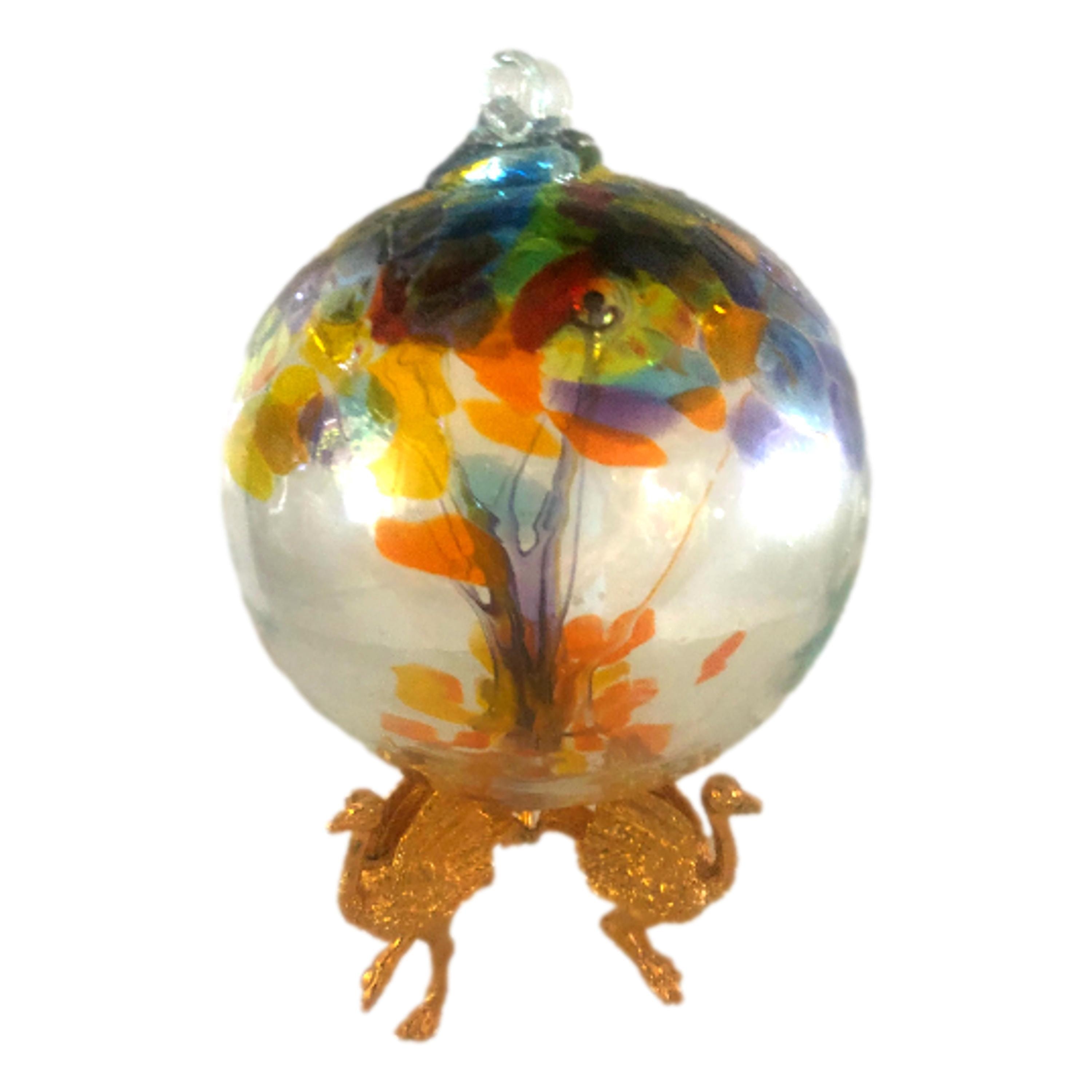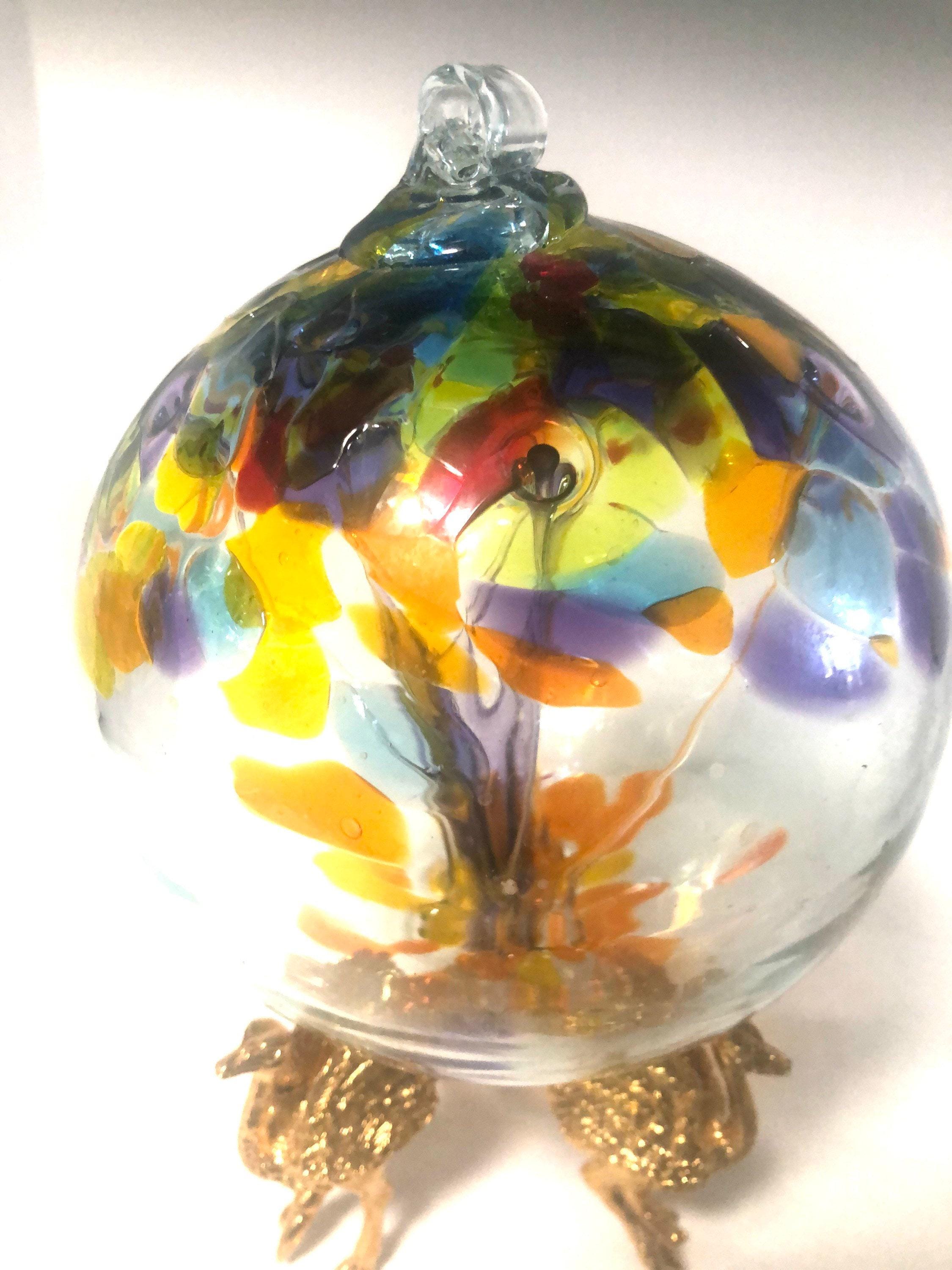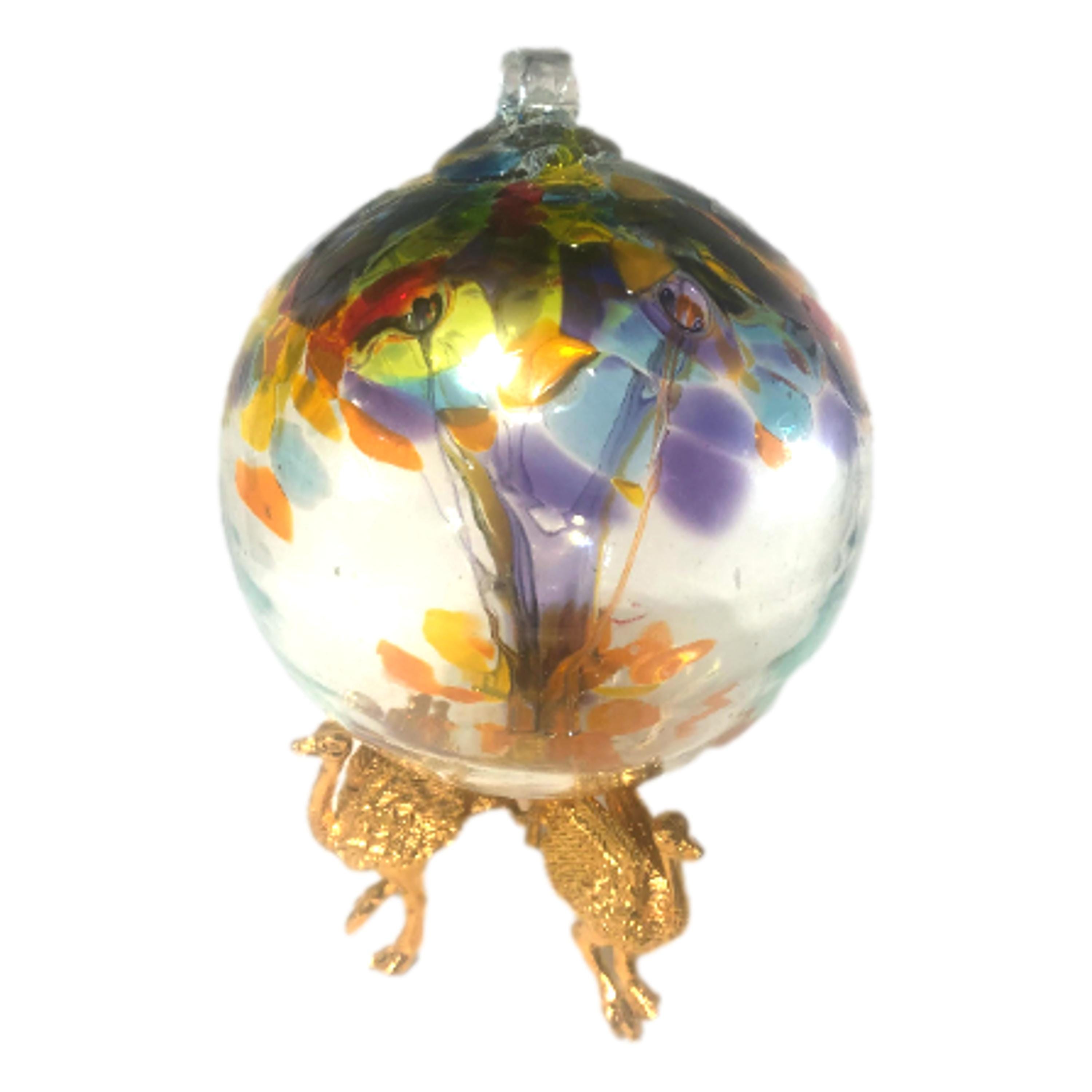 Hand Blown Glass Witch Ball: Suncatcher Ornament with Ostrich Stand