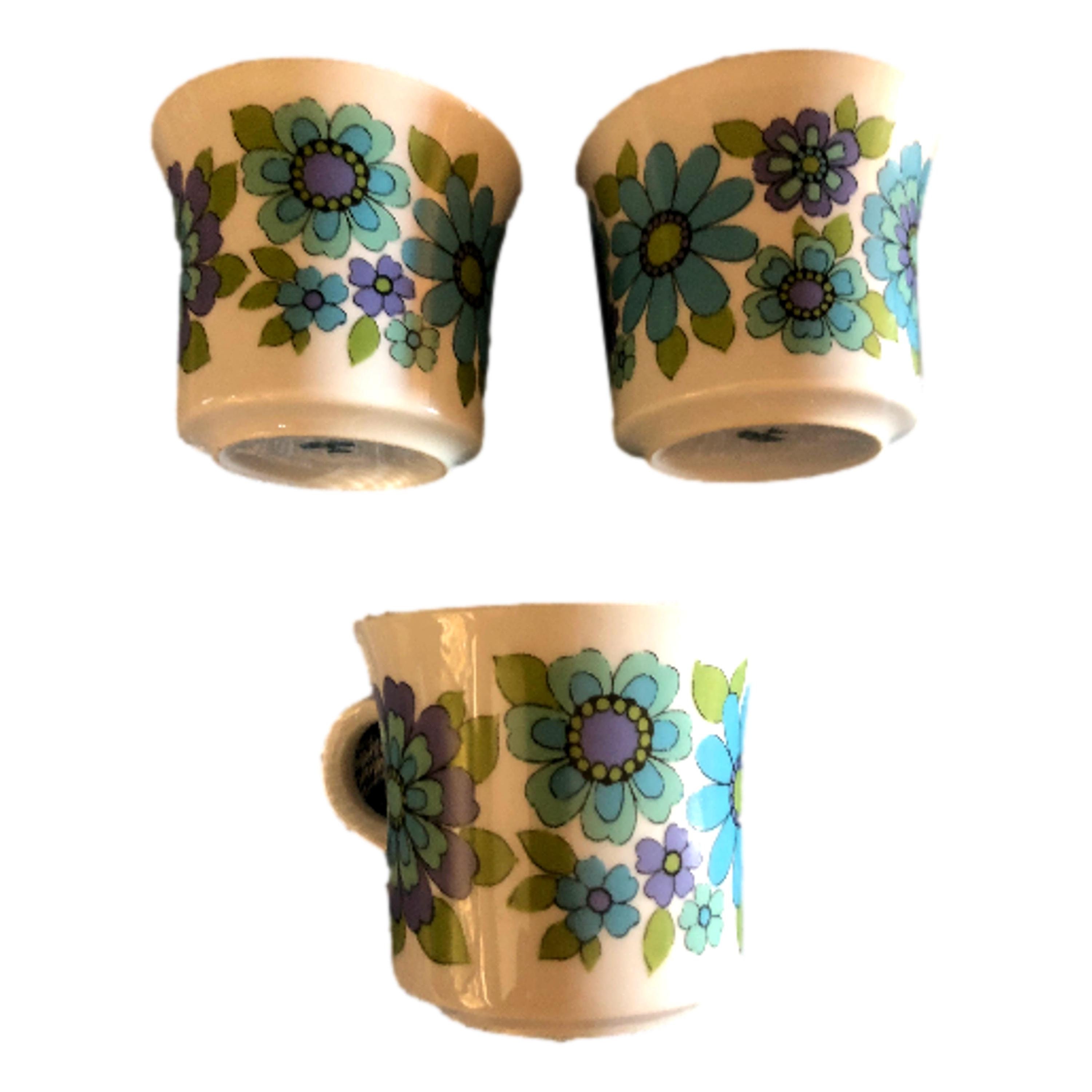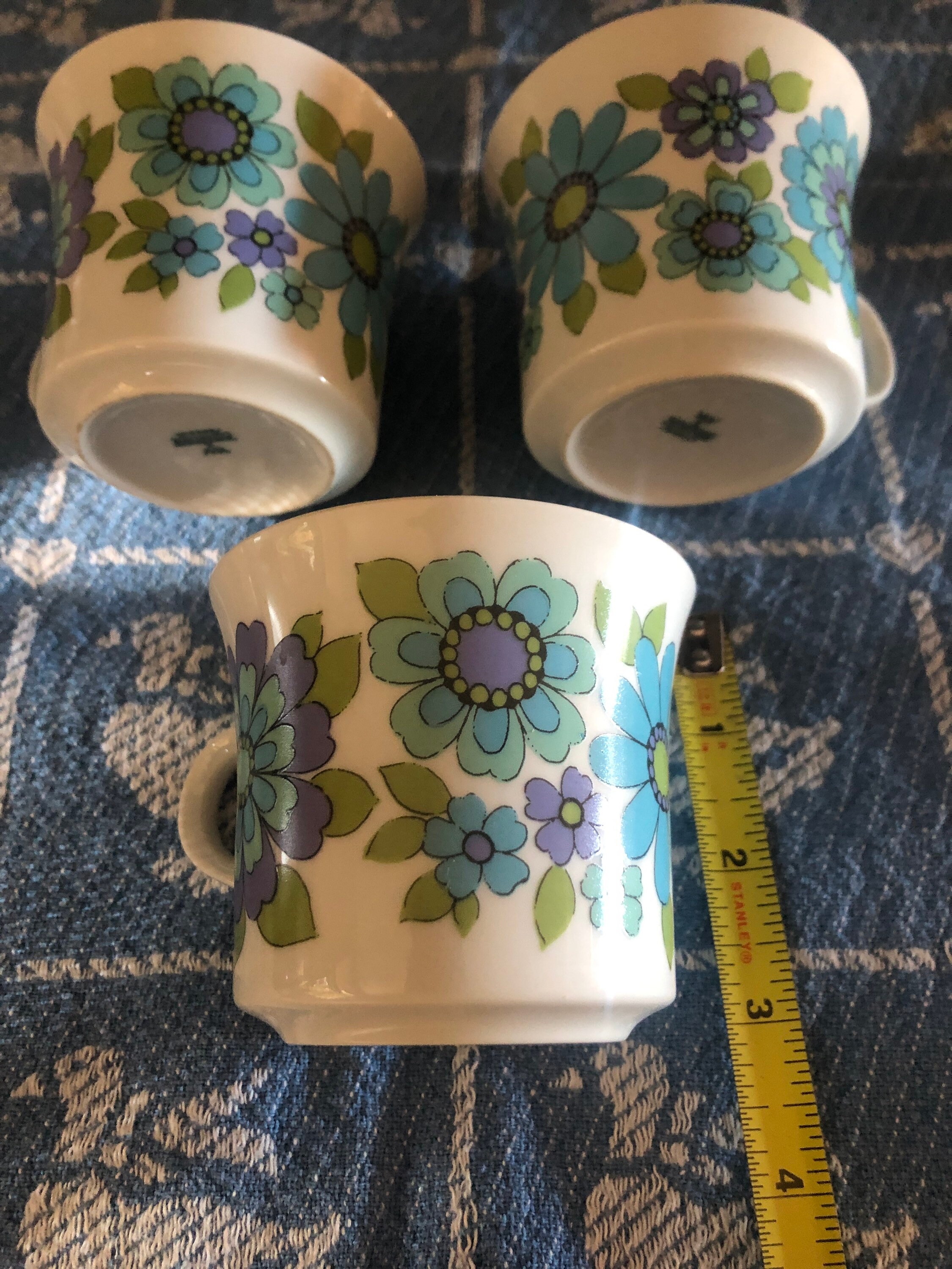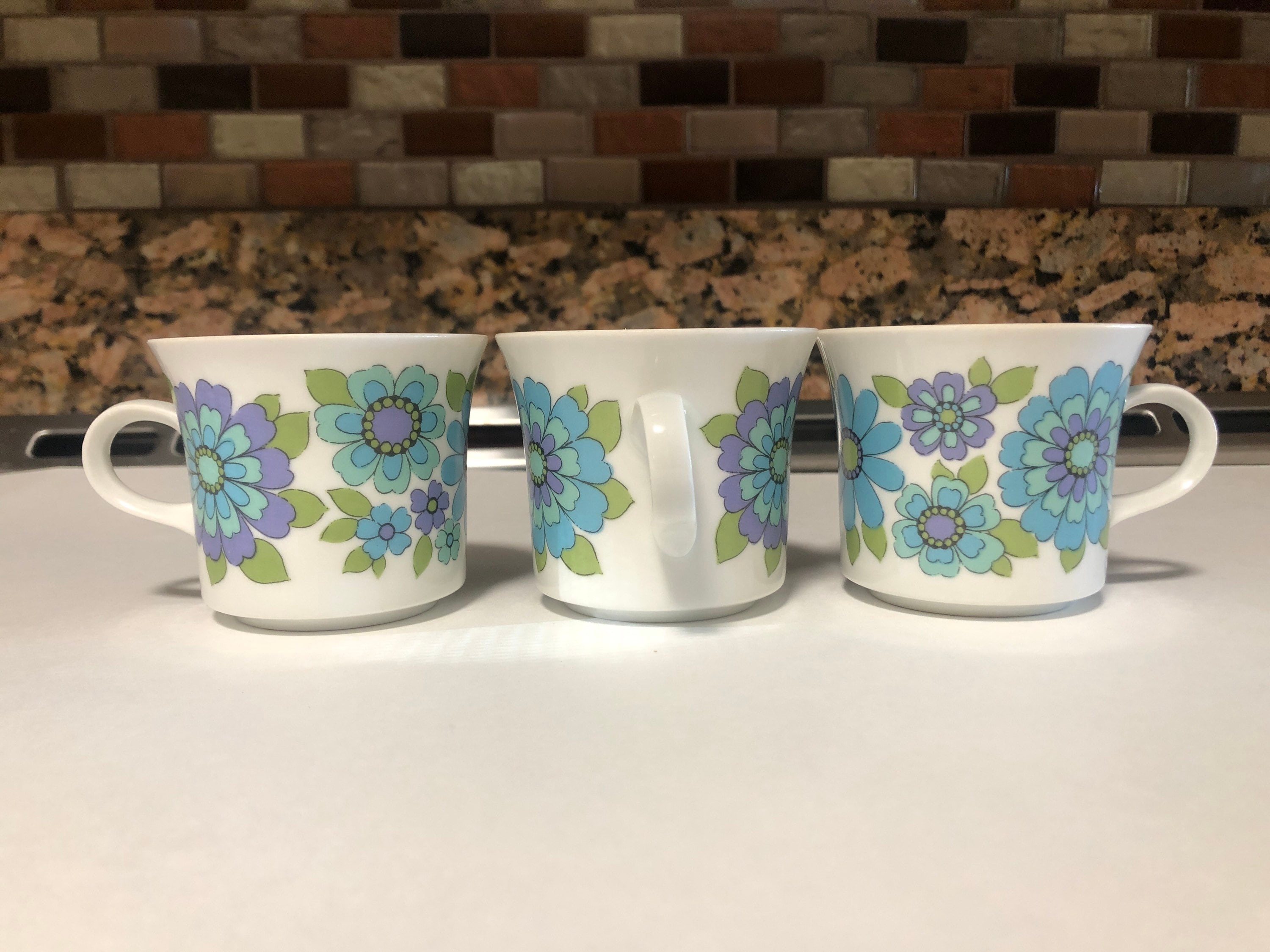 This vintage floral Bavarian porcelain tea set from Germany has bright, cheery daisy-like flowers. The floral tea set will accent your table setting any day of the week. The bottom is marked Mitterteich, Bavaria. The tea service includes the covered serving pot, floral creamer, covered sugar bowl.