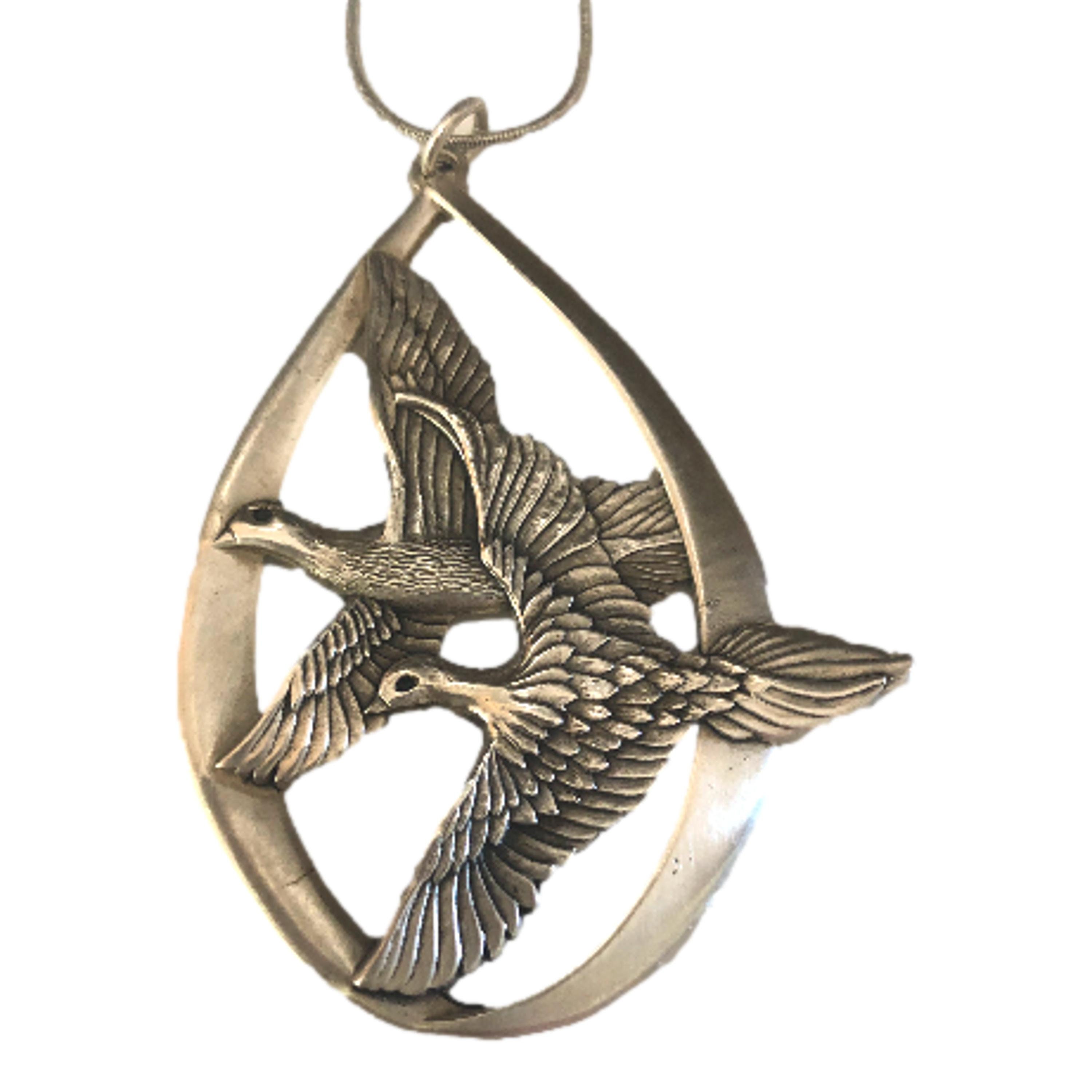 Vintage Sterling Silver Dove Pendant Necklace - Wallace 1972