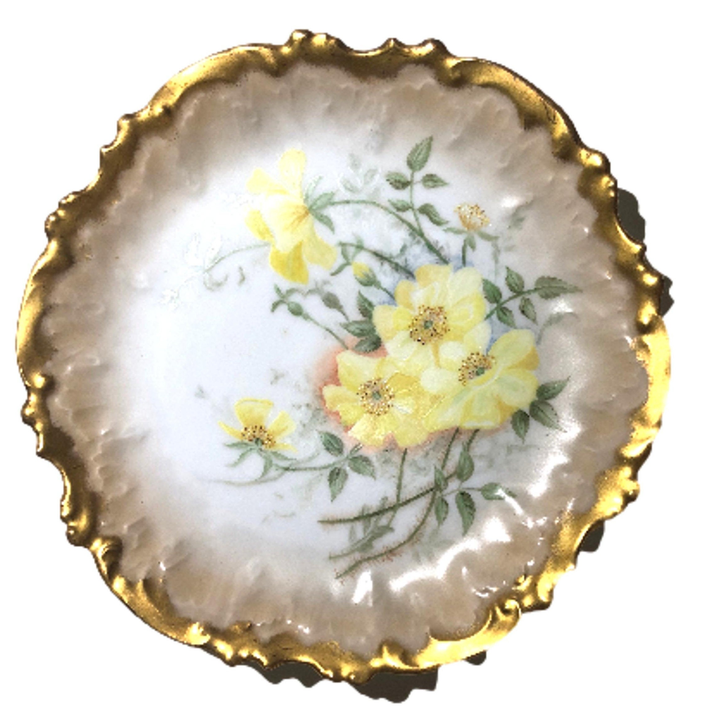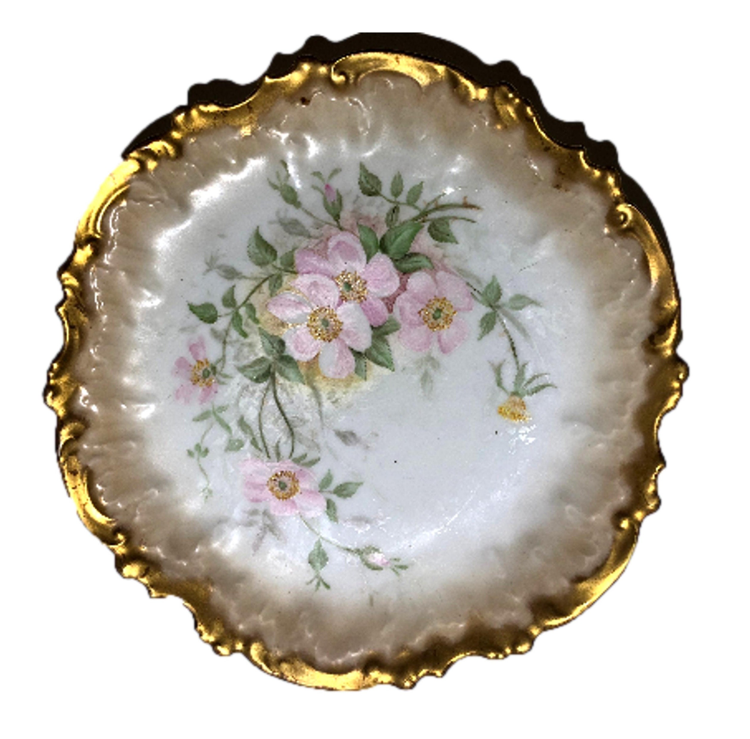 Antique Limoges China Plate: LE Coiffe Hand-Painted Floral Wall Art