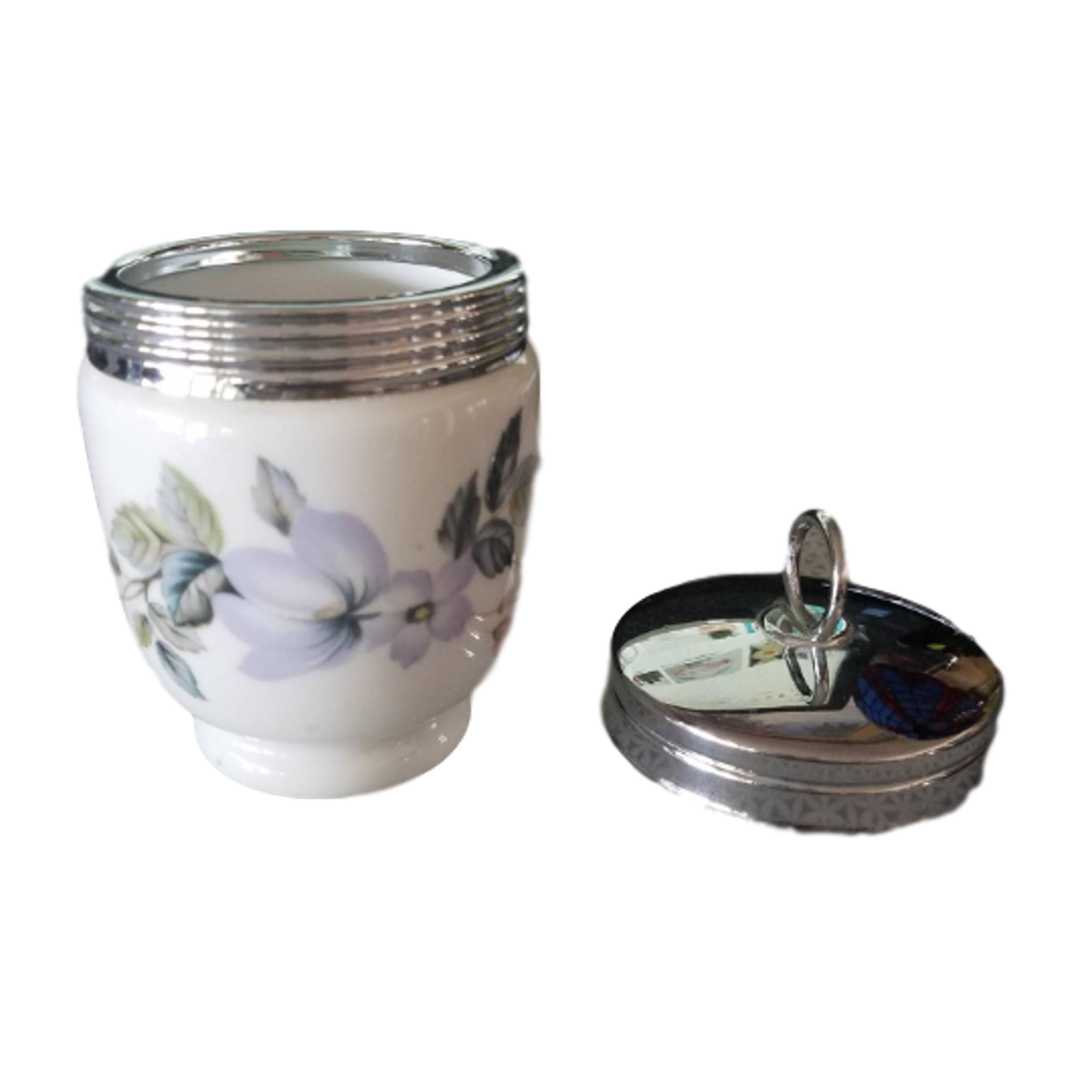 Elevate your kitchen decor with the exquisite Royal Worcester egg coddler, featuring a charming June Garland design in a generous king size; this elegant porcelain collectible is not just a cooking tool but a stunning vintage piece that will add character to your collection. Celebrate the artistry of fine porcelain while enjoying perfectly cooked eggs with this timeless coddler—get yours today and indulge in a touch of culinary luxury!