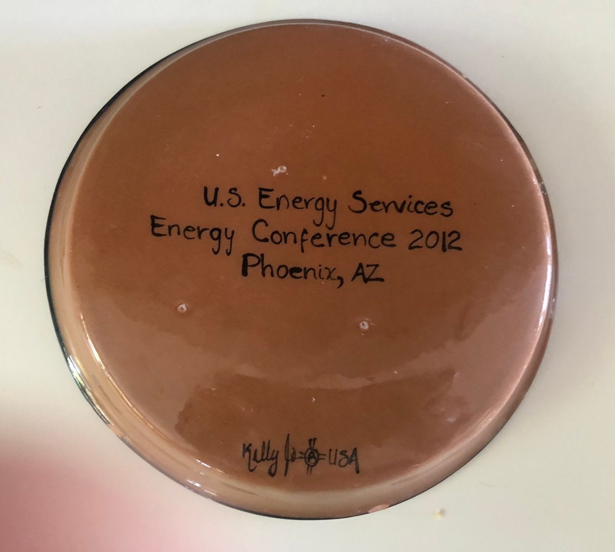 This is a beautiful southwestern decor pottery plate designed for the U.S. Energy Services Energy Conference in Phoenix, Arizona. It is signed by the artist.