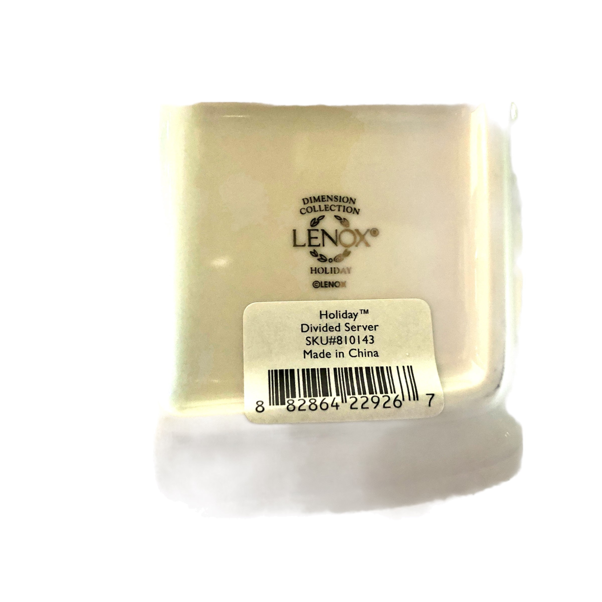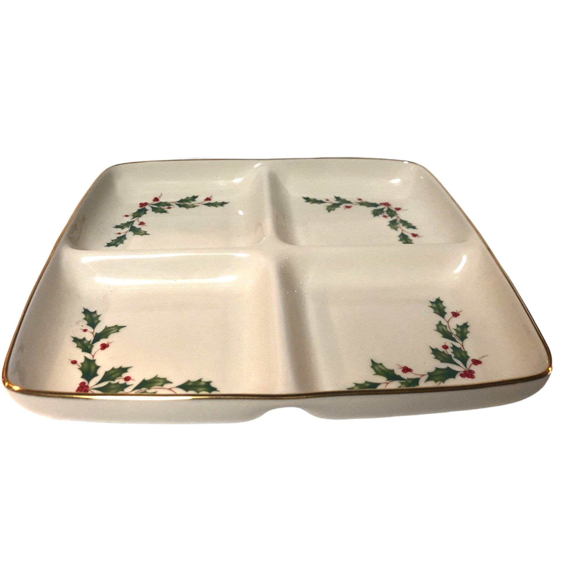 Lenox Holiday China Porcelain Square Divided 4 Compartment Serving Dish: Holly Berry Christmas Decor