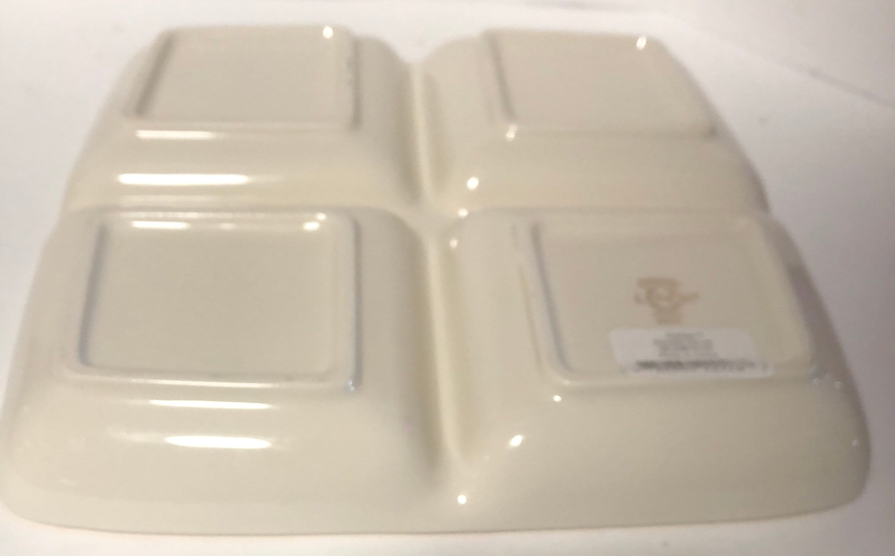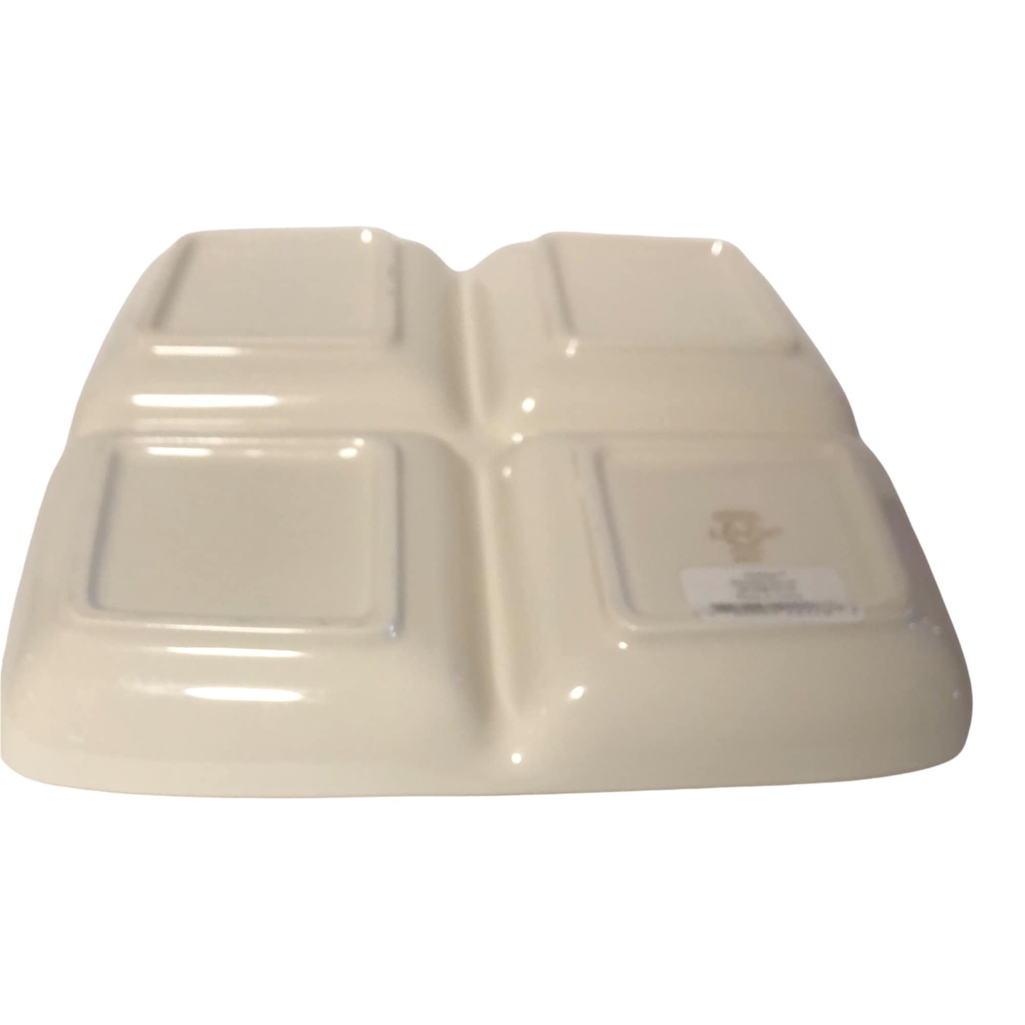 Measuring 9.5 inches by 9.5 inches with a height of 1.5 inches, this square serving dish offers four separate compartments, ideal for serving an assortment of snacks, appetizers, or holiday treats in a stylish and organized way. The divided design makes it easy to present a variety of items while adding a touch of holiday cheer to your gatherings.