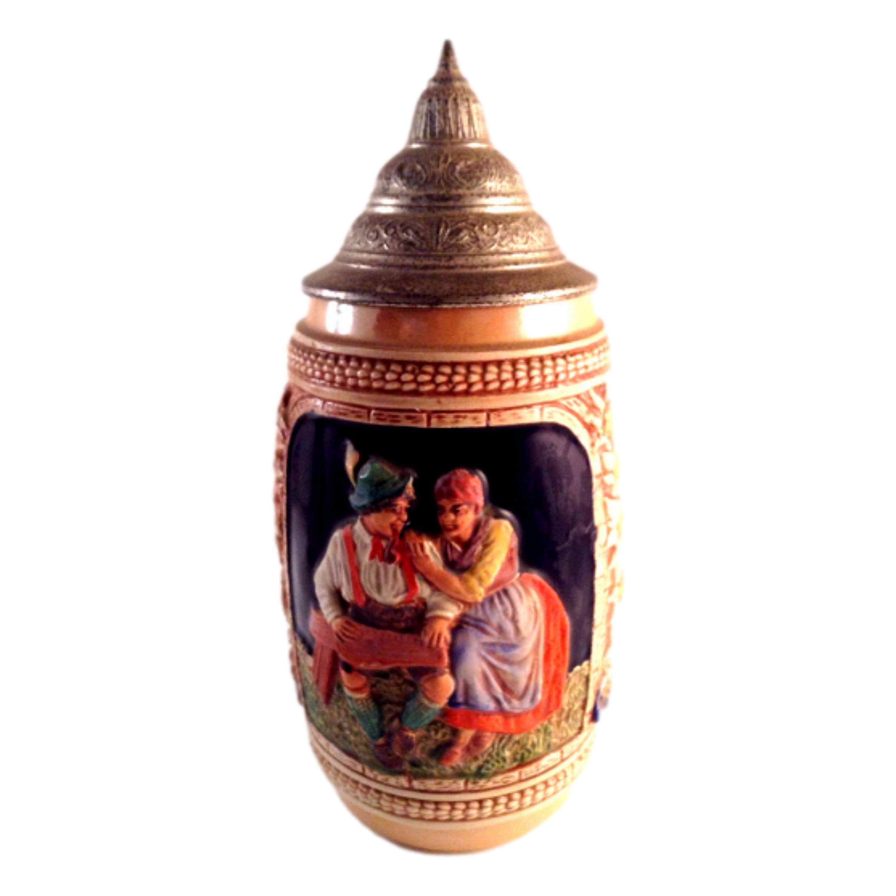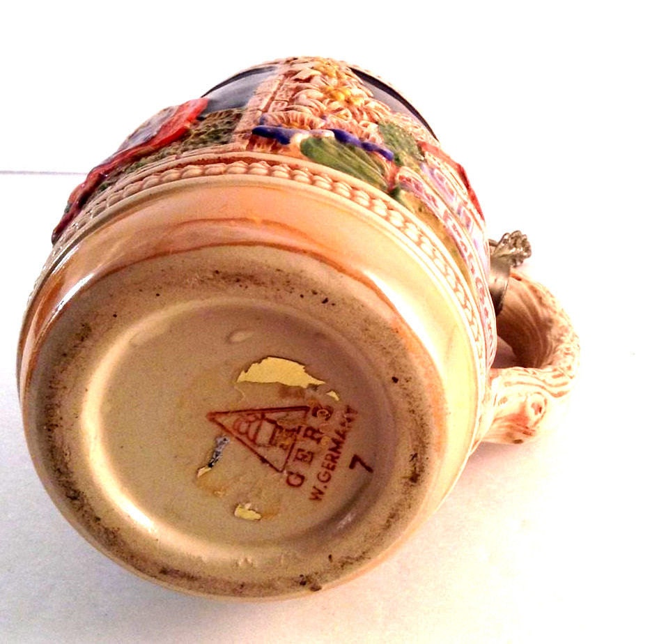 Vintage German Beer Stein: Hand-Painted 3D Gerz Mug