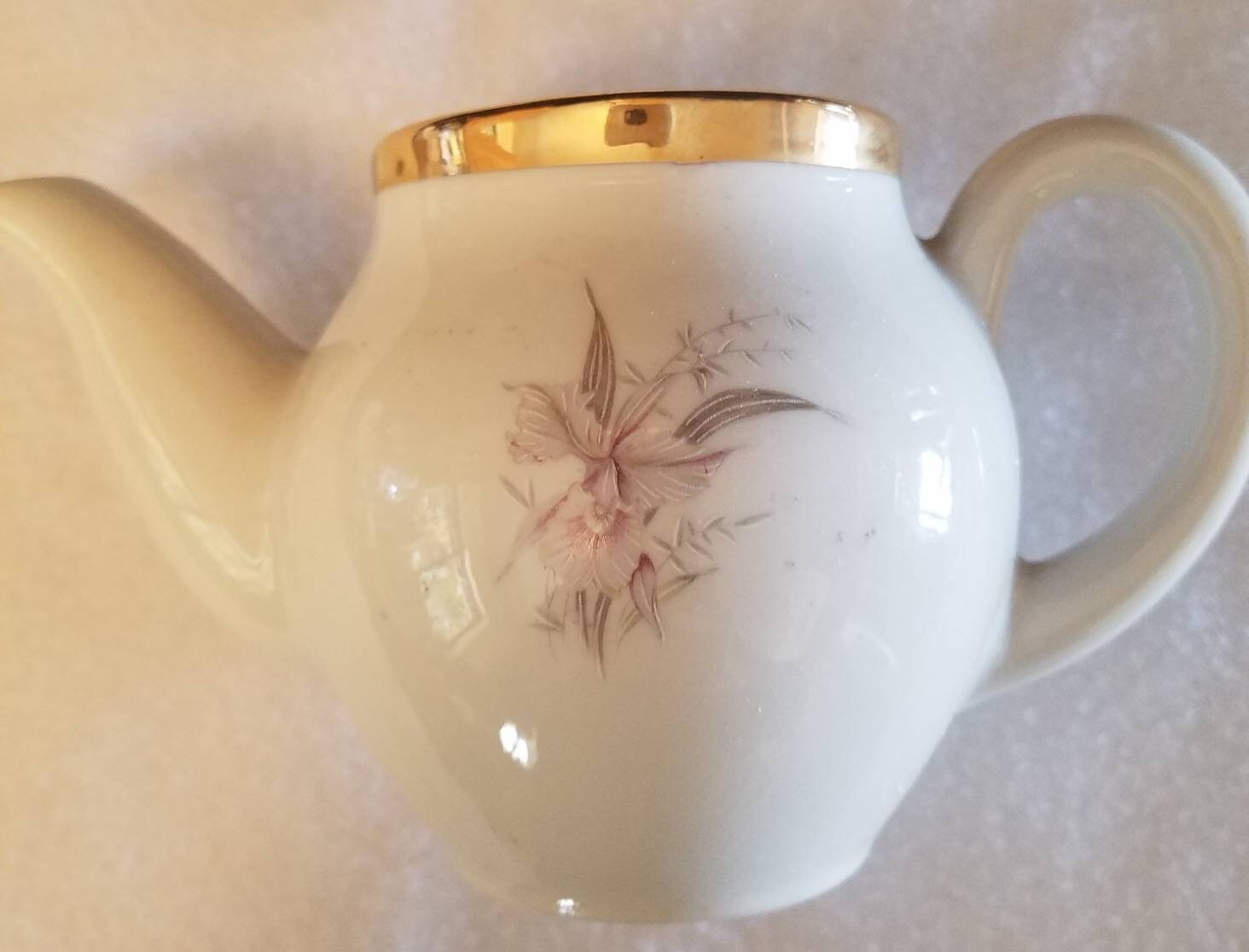 Syracuse China Tea for One Vintage Porcelain Teapot Orchids