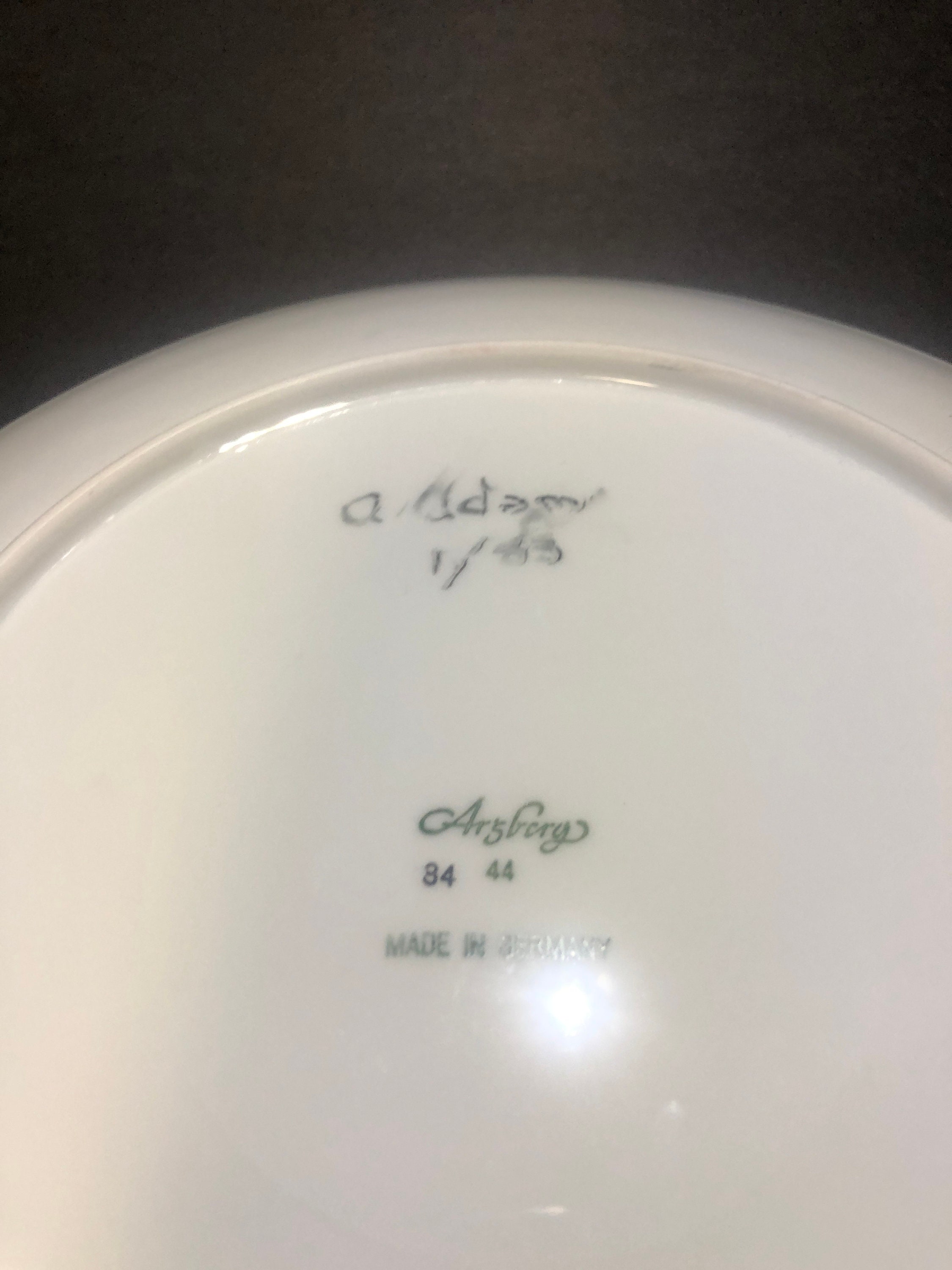 This is a hand-painted floral plate made in Arzberg, Germany. This German fine art ceramics plate in excellent condition. It was made in the 1980s.