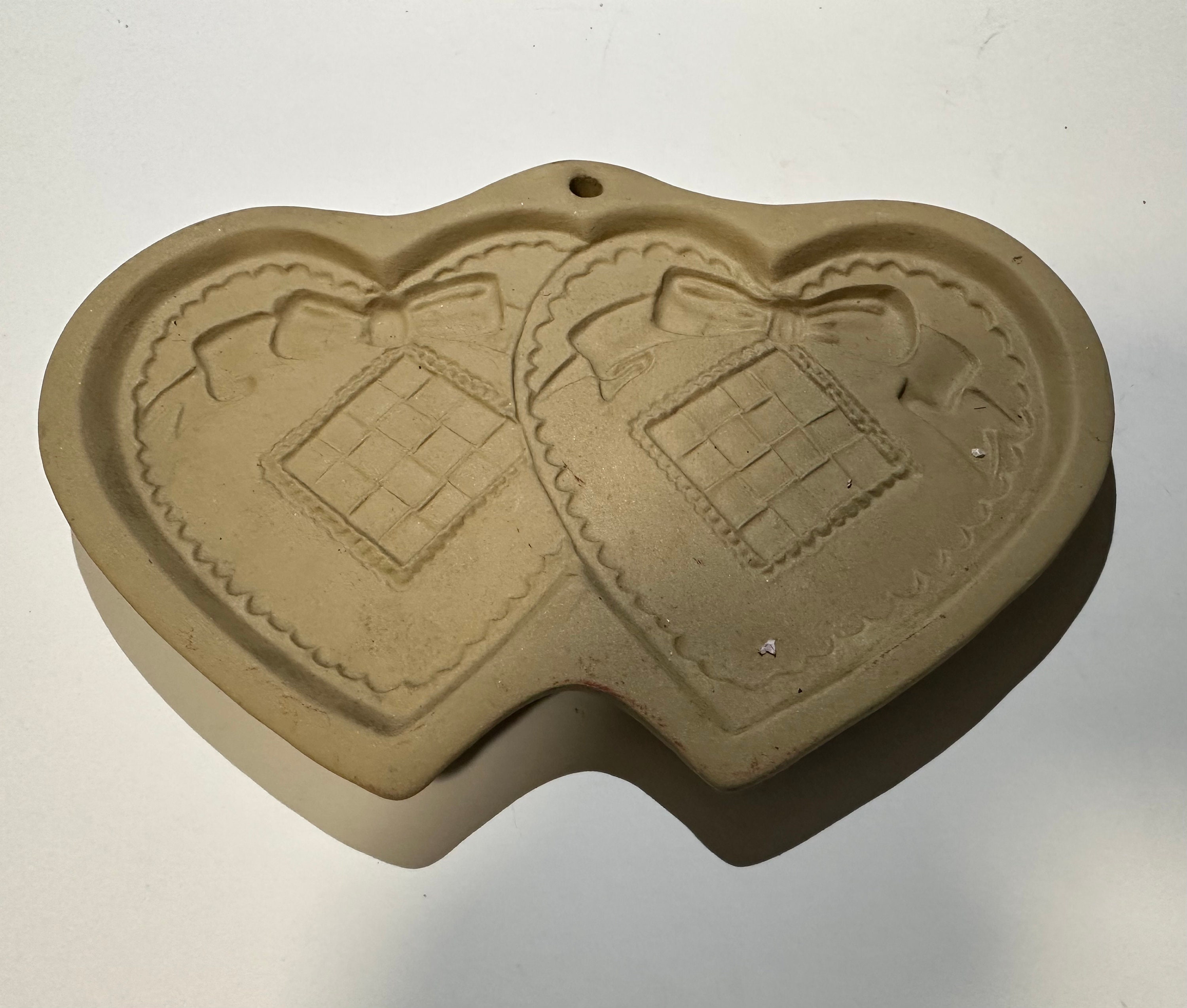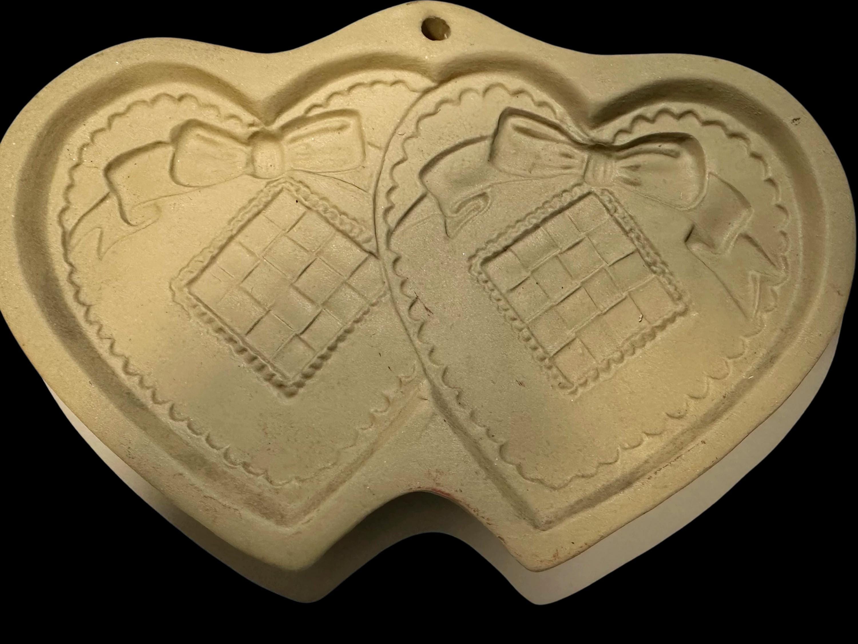 Vintage Double Hearts Stoneware Cookie Mold - Brown Bag Cookie Art 1988