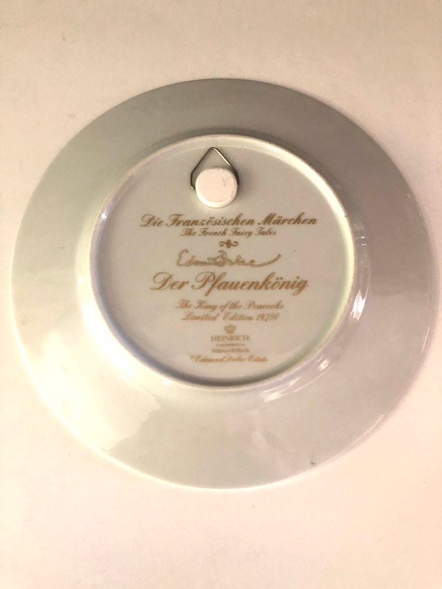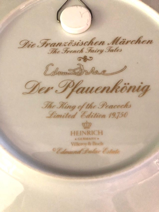 Villeroy Boch, Heinrich Germany French Fairy Tale plate now available. Made in the 1980s. The King of Peacocks is a beautiful limited edition plate in excellent condition. It measures 8.5" in diameter. A beautiful wall decor gift item for her or that someone special!