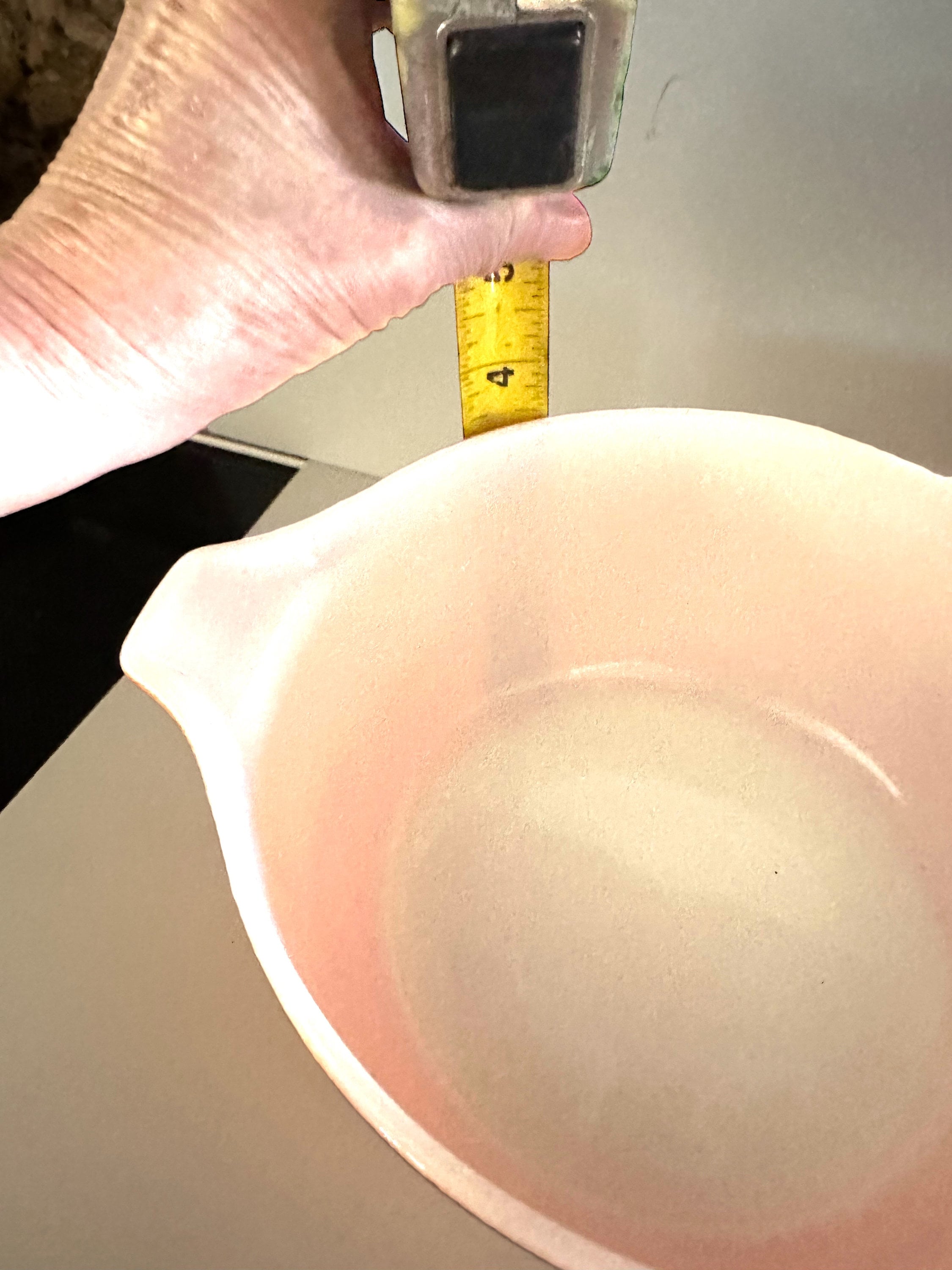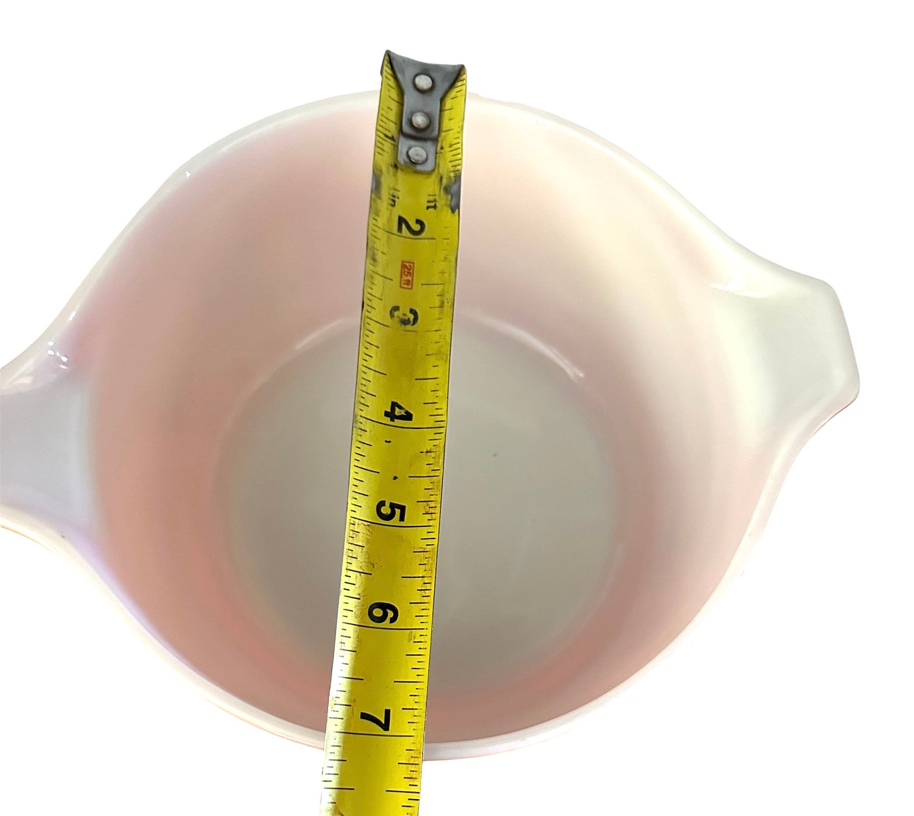 It measures 7.5" in diameter. Very good condition. Not for use in the oven or stovetop.
