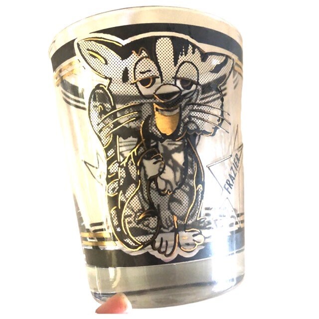 Discover the charm of the past with these vintage Libbey Frazier the Cat whiskey rocks glasses—an iconic piece of retro animal-themed barware from the 1980s. Perfect for collectors, cat lovers, or anyone who appreciates whimsical glassware, these glasses feature an etched image of a cool, laid-back cat named "Frazier" in elegant cursive. Crafted from sturdy, thick clear glass, they offer both durability and timeless style, making them ideal for enjoying your favorite whiskey or cocktail.