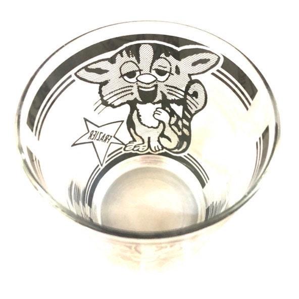 Vintage Libbey Frazier Cat Whiskey Glass: 1980s Etched Tumbler