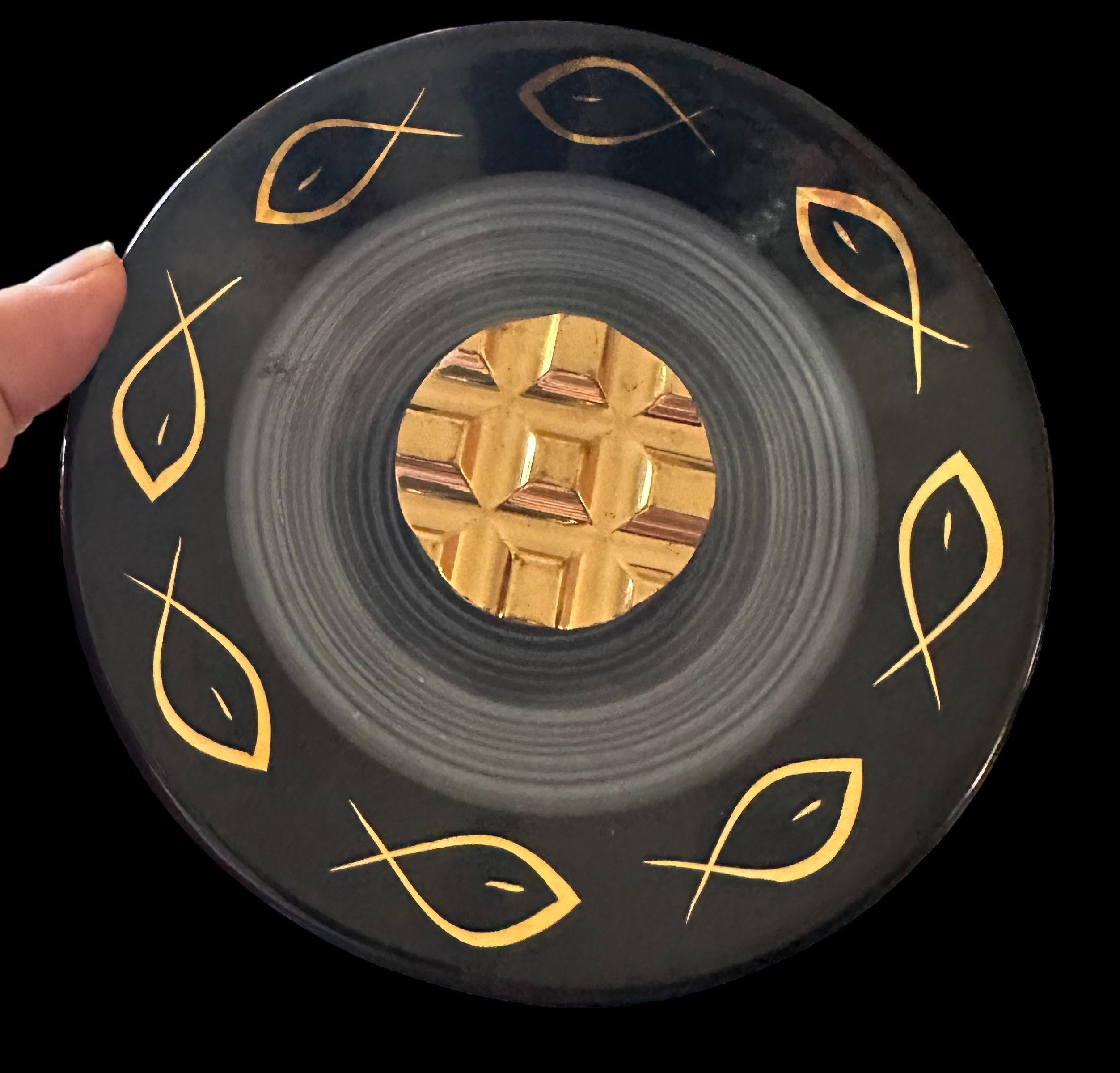 Vintage Black and Gold Fish Evan's Ashtray | Rare Collectible Atomic Fish Tray