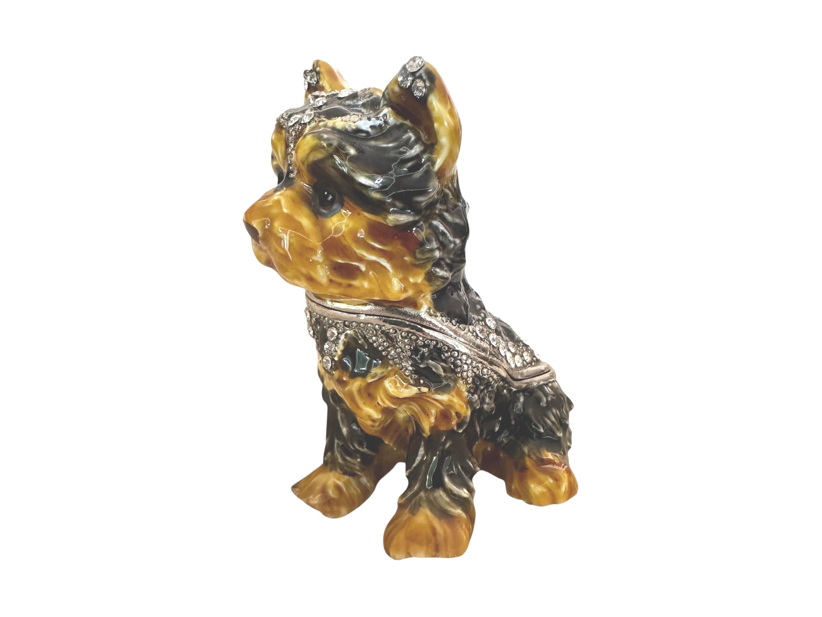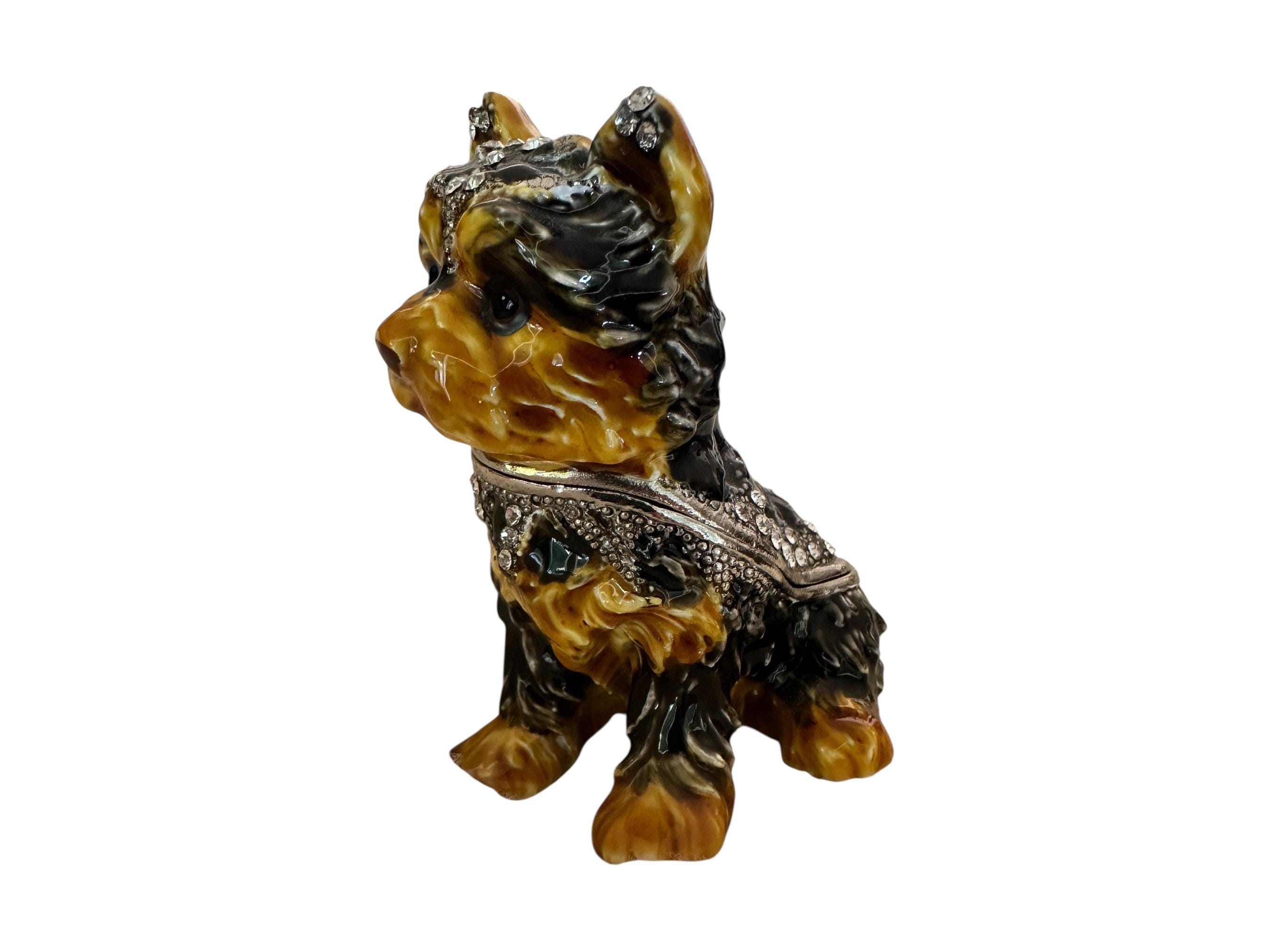 Handcrafted jeweled trinket box featuring a Yorkshire Terrier