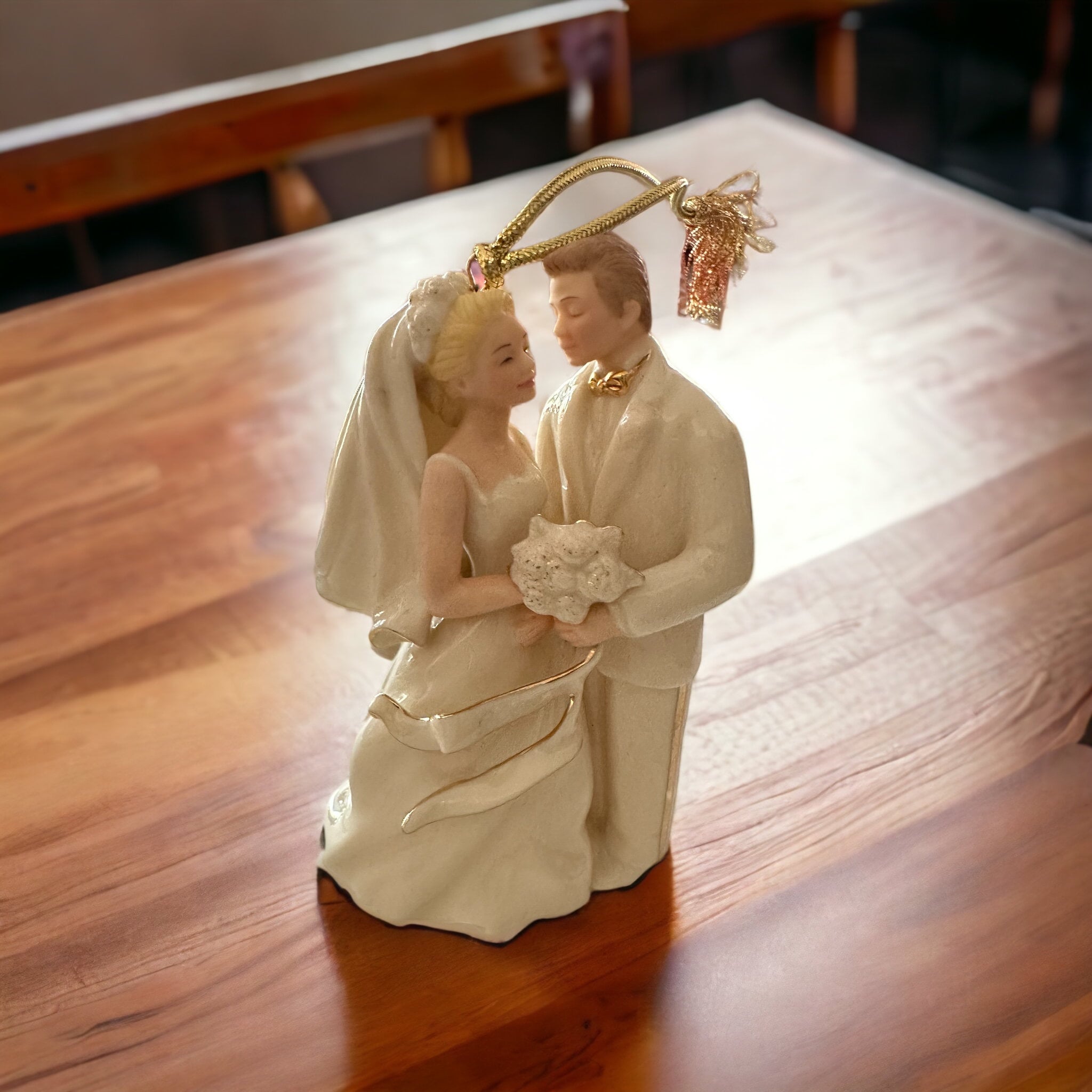Celebrate love and the magic of the season with this beautifully crafted Lenox Bride and Groom Ornament, a perfect festive wedding keepsake and romantic couple gift. Featuring a charming handcrafted depiction of a blonde bride and a brown-haired groom, this holiday decor piece exudes elegance and warmth, making it an ideal gift for newlyweds or couples starting their journey together.