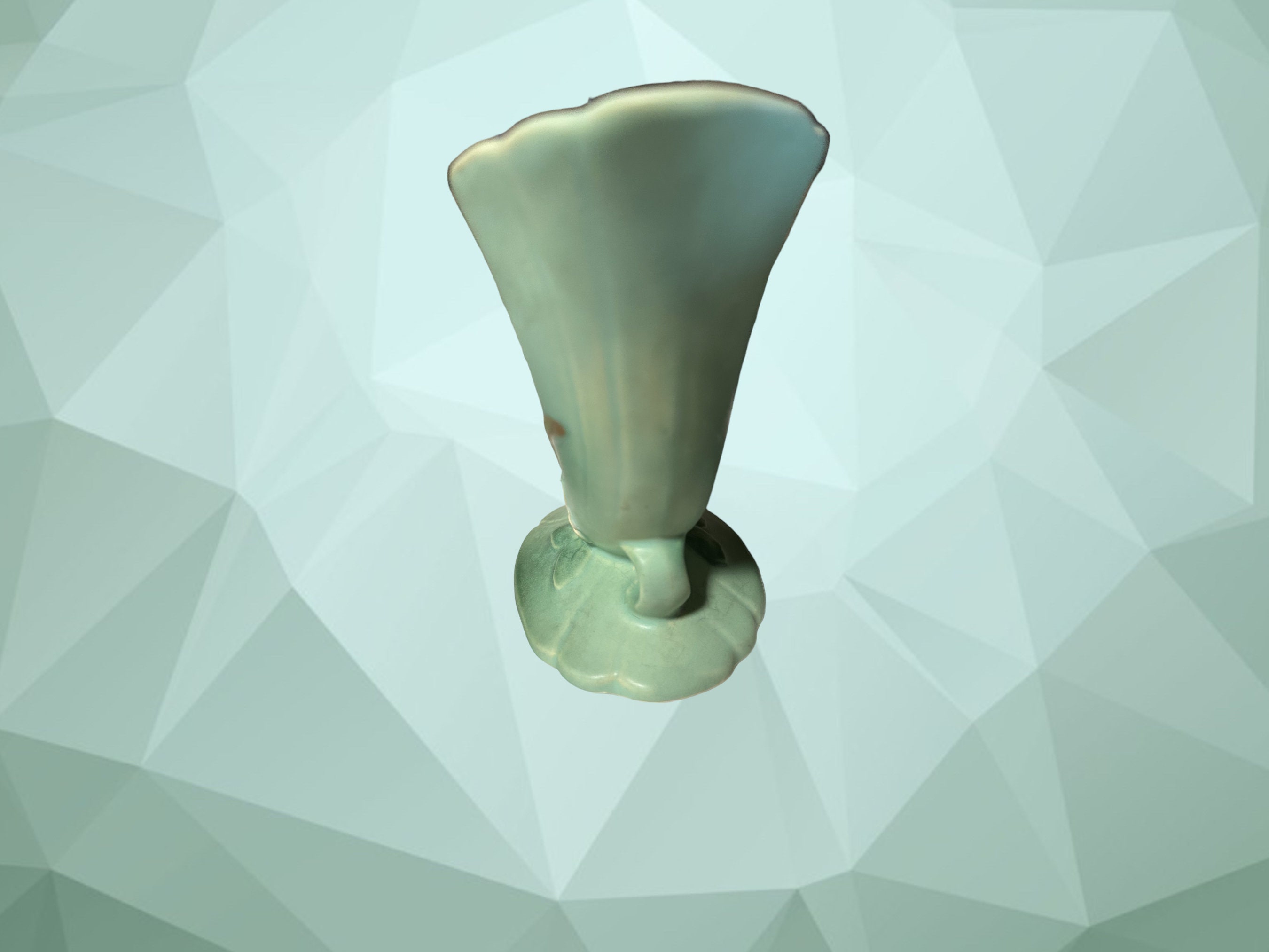 Discover the timeless charm of this pottery vase set of two vintage Weller Pottery Cornucopia vases, elegantly adorned with green floral designs that capture the essence of Art Deco style. These vases stand out with their unique shape and glazed finish, offering an authentic piece of art pottery that enriches any space.