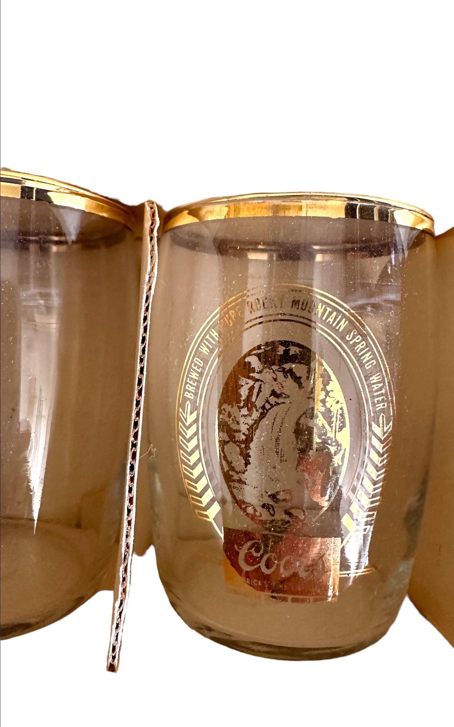 Coors Beer Vintage Taster Glasses Set of 6 | Gold Rimmed Sampler Glasses for Beer, Barware, Gift for Him or Dad