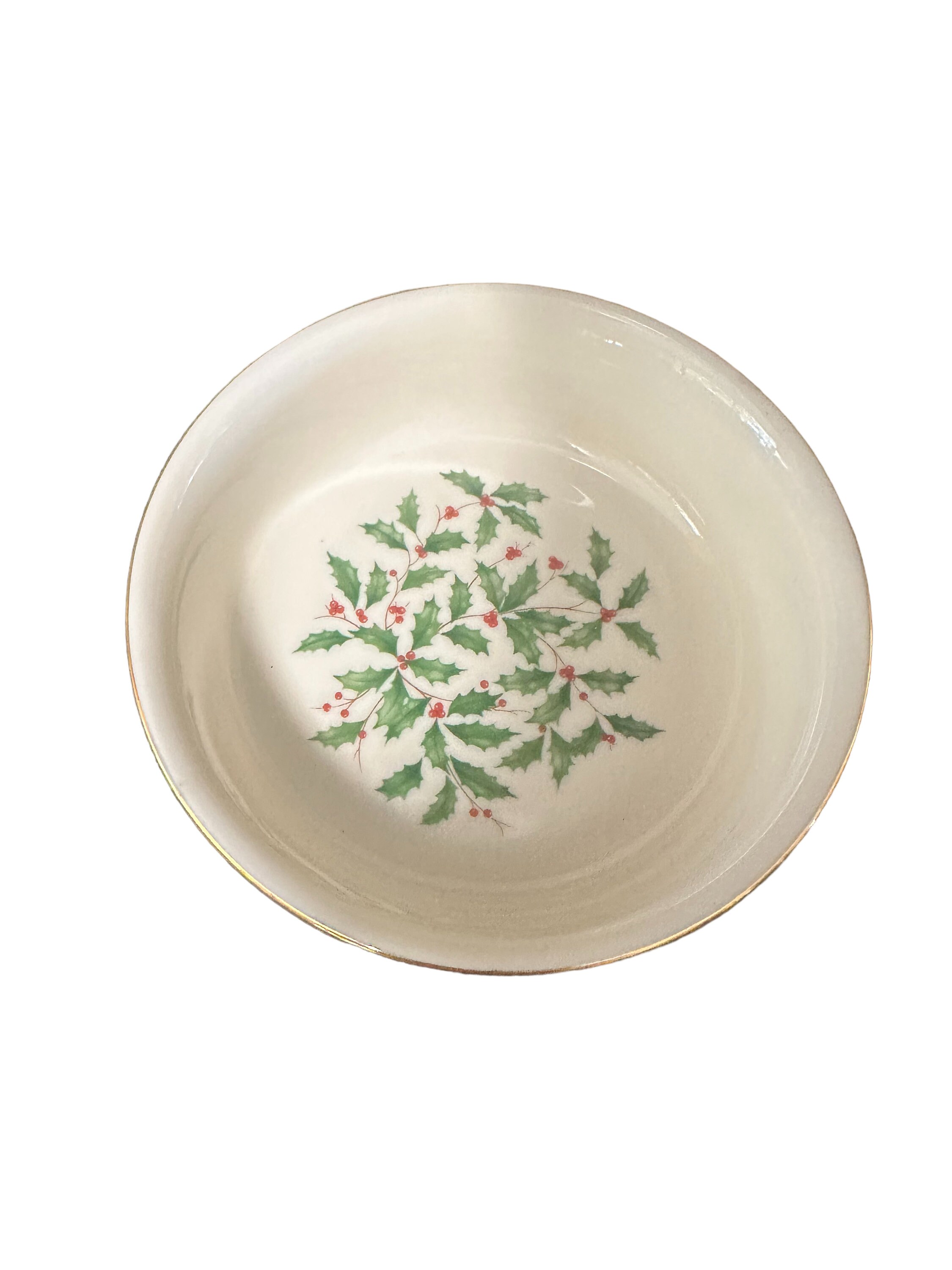 Lenox Holiday China Bowl: Christmas Holly & Berries, Gold Trim