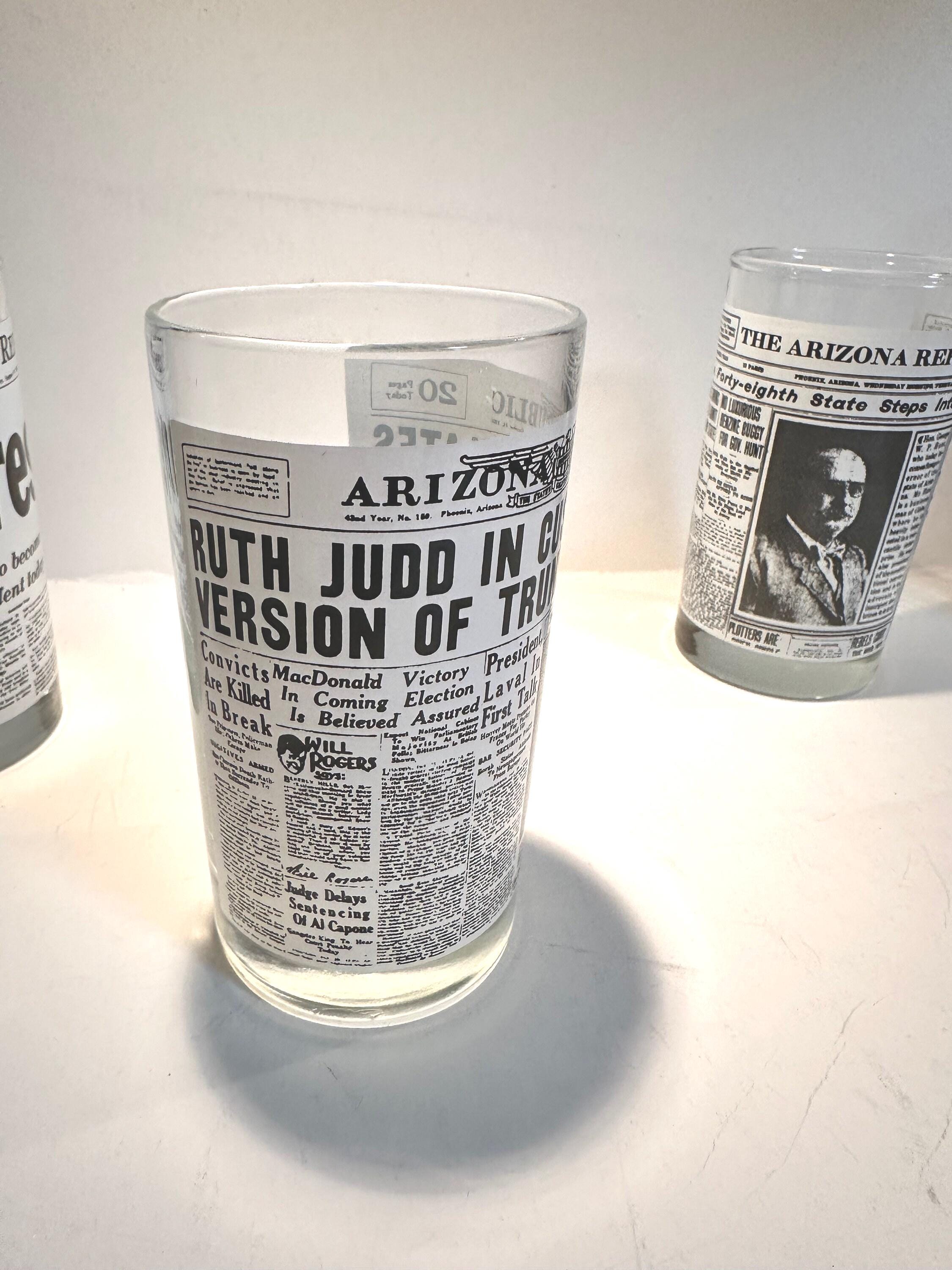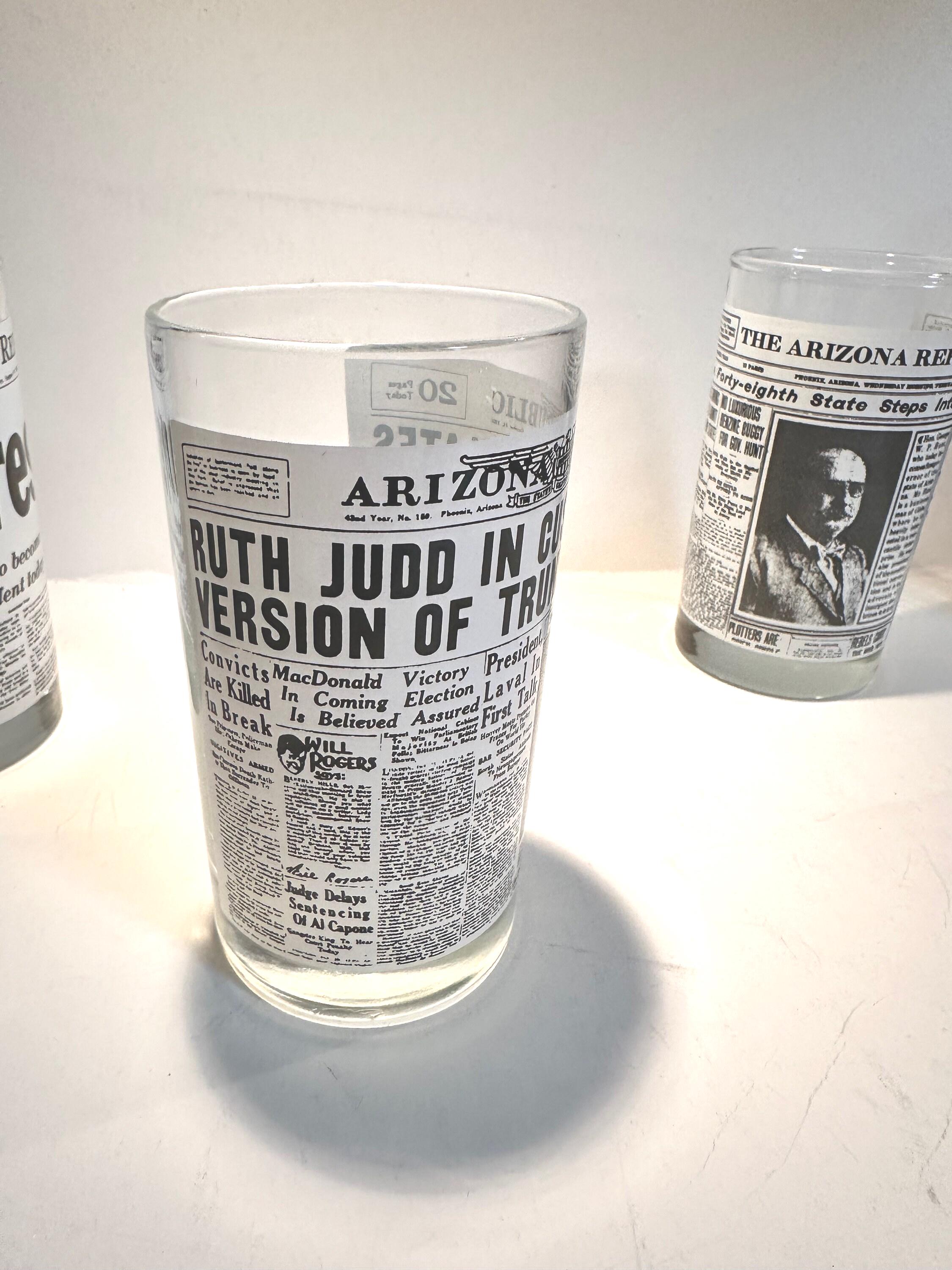 Set of 4 Libbey Drinking Glasses | Arizona Republic Historic Newspaper Covers
