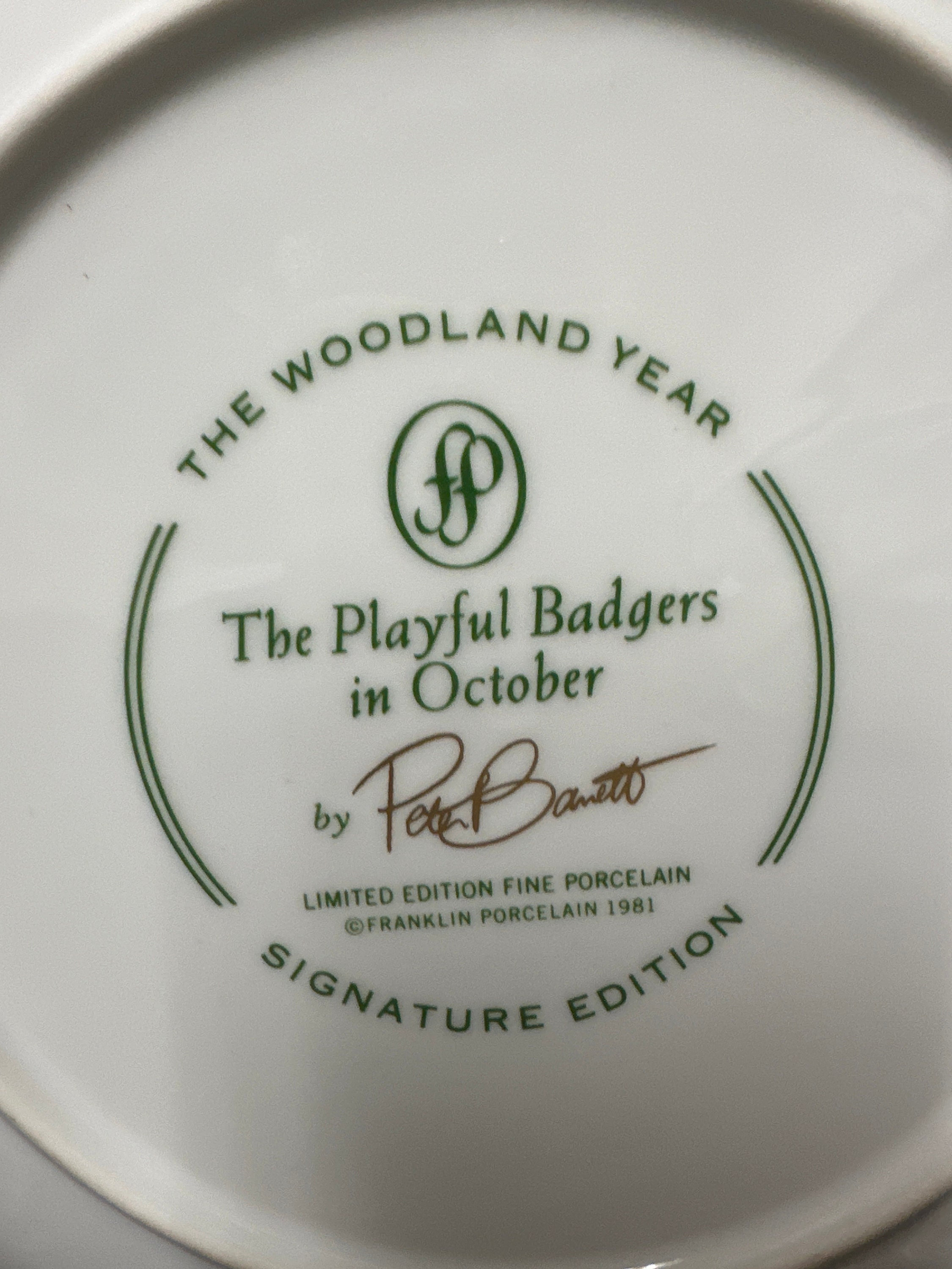 Vintage Peter Barrett Badger Wall Plate | Woodland Year | Gift For Veterinarian | Playful Badgers In October | Peter Barrett | Gifts for Him