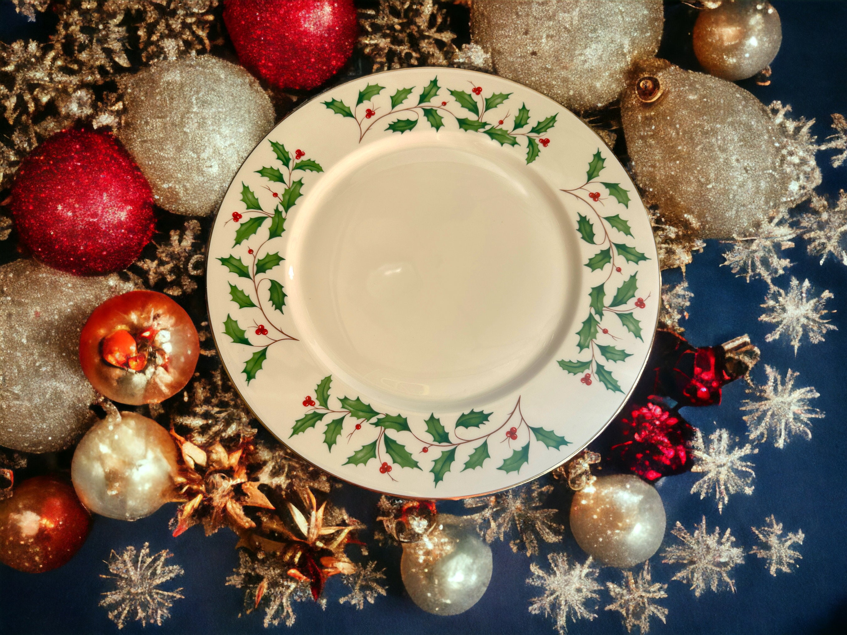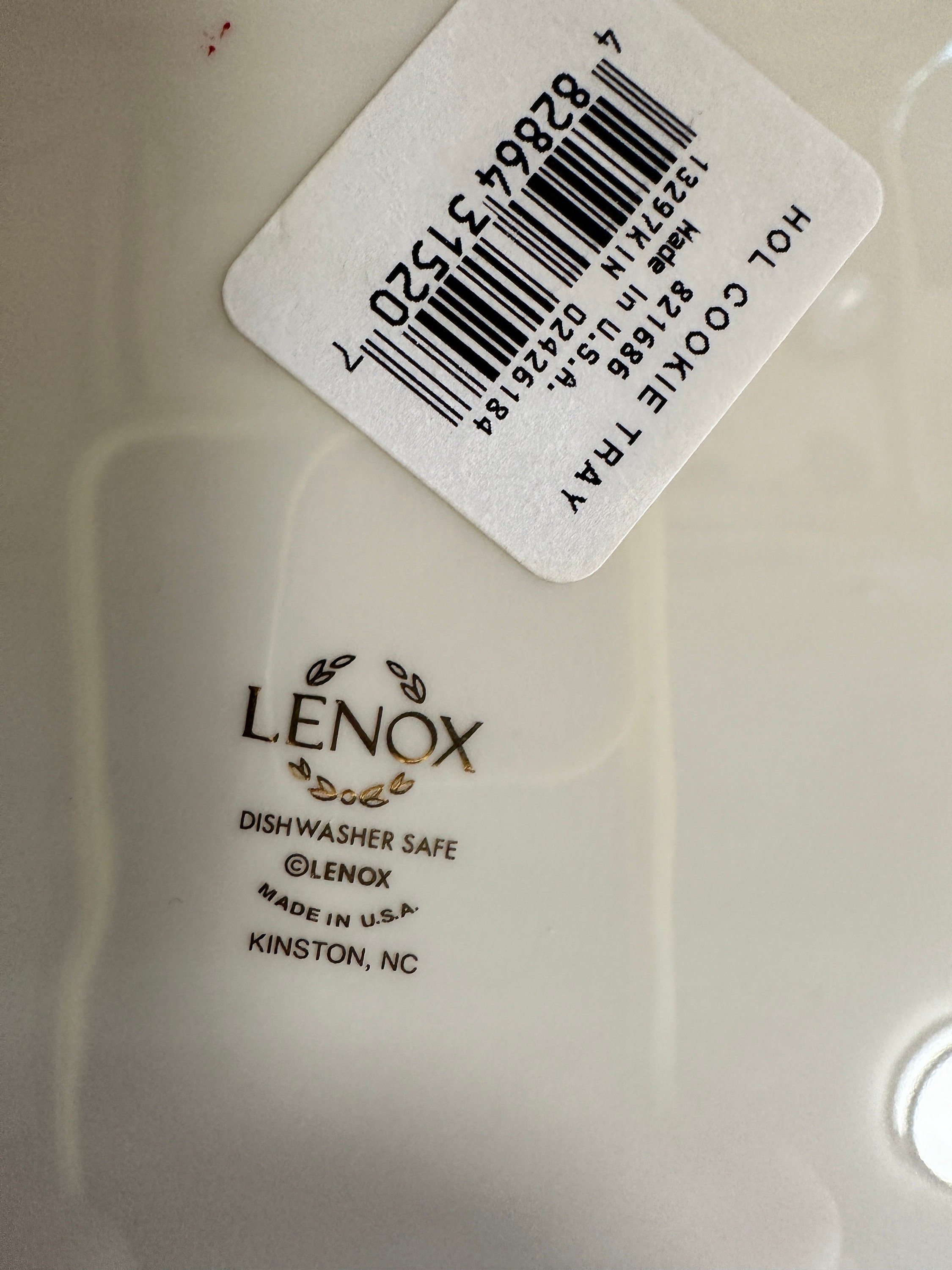Lenox Christmas Cookie Plate: Ivory Porcelain Holly Design