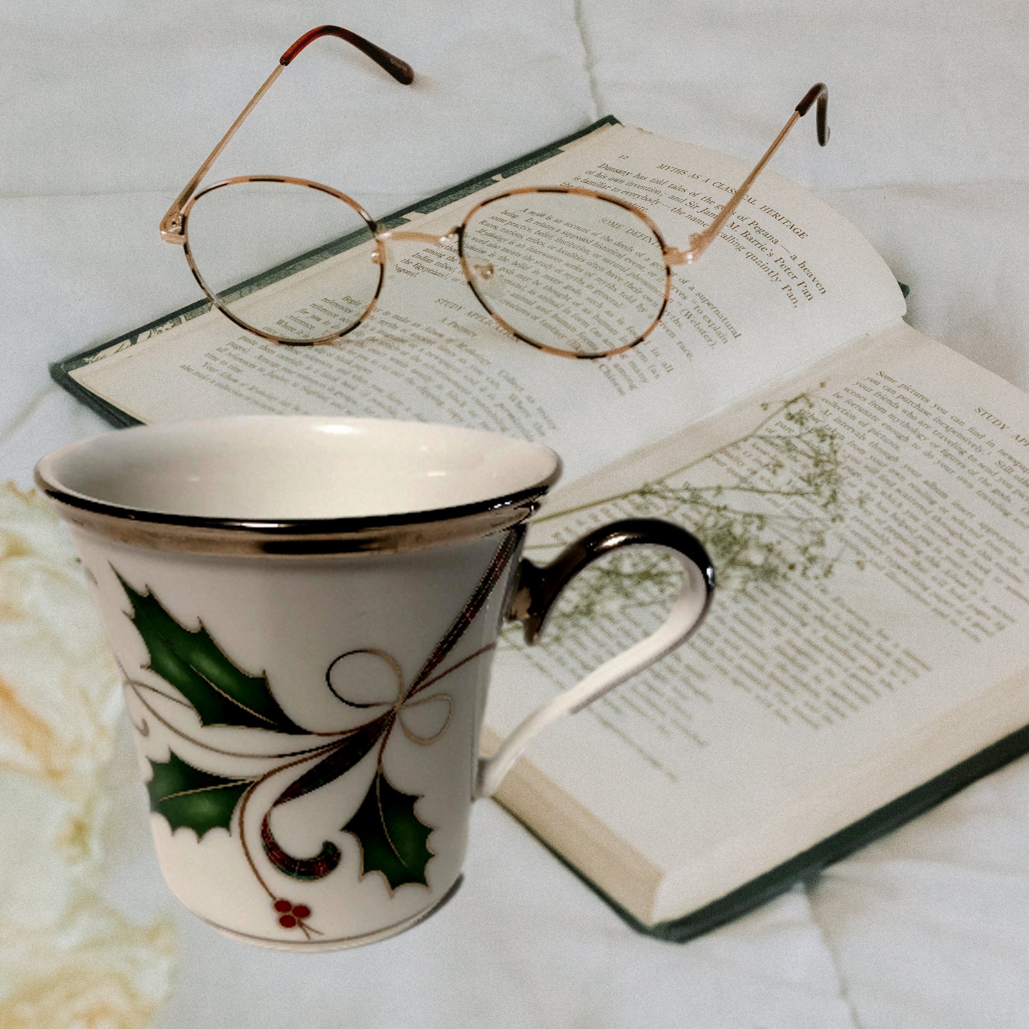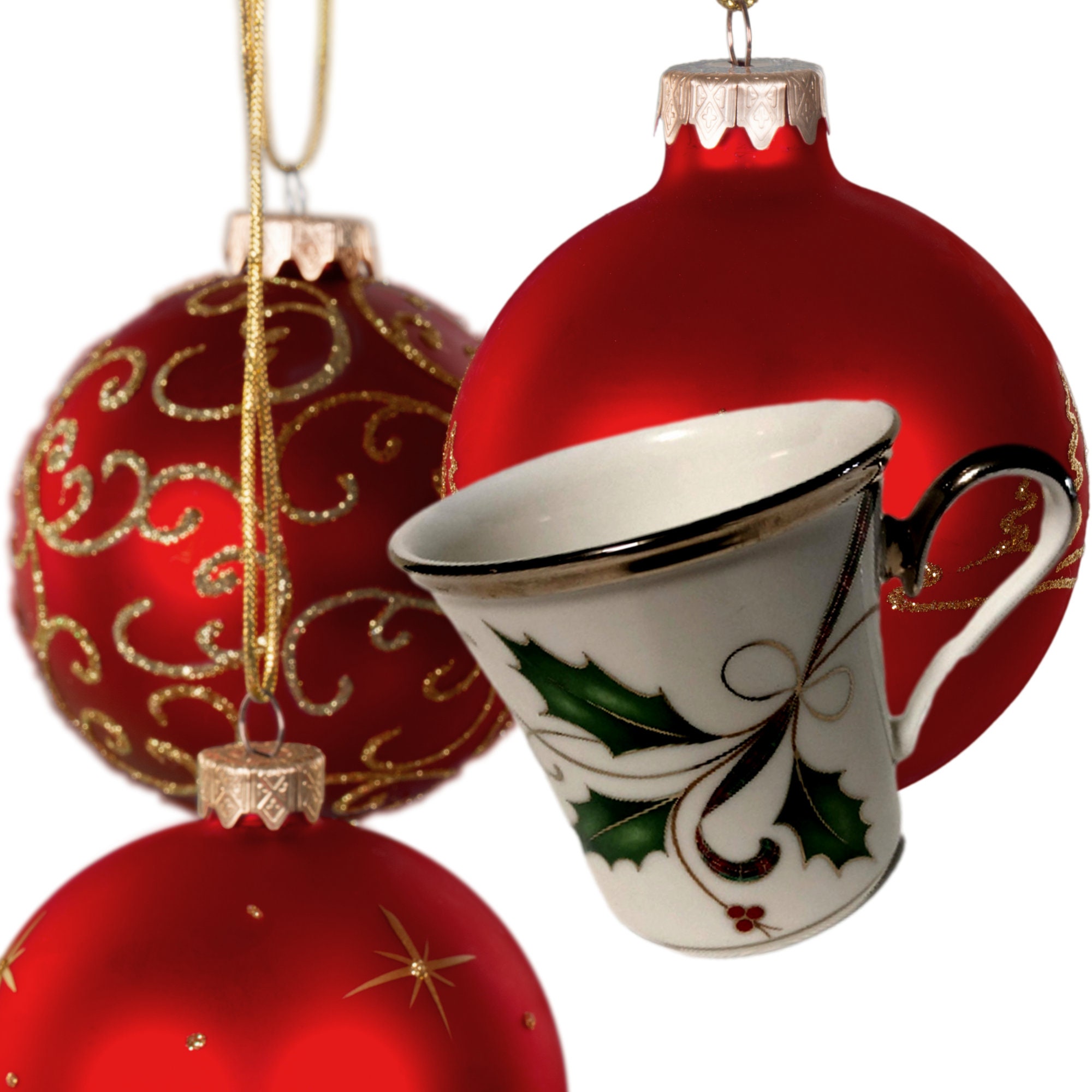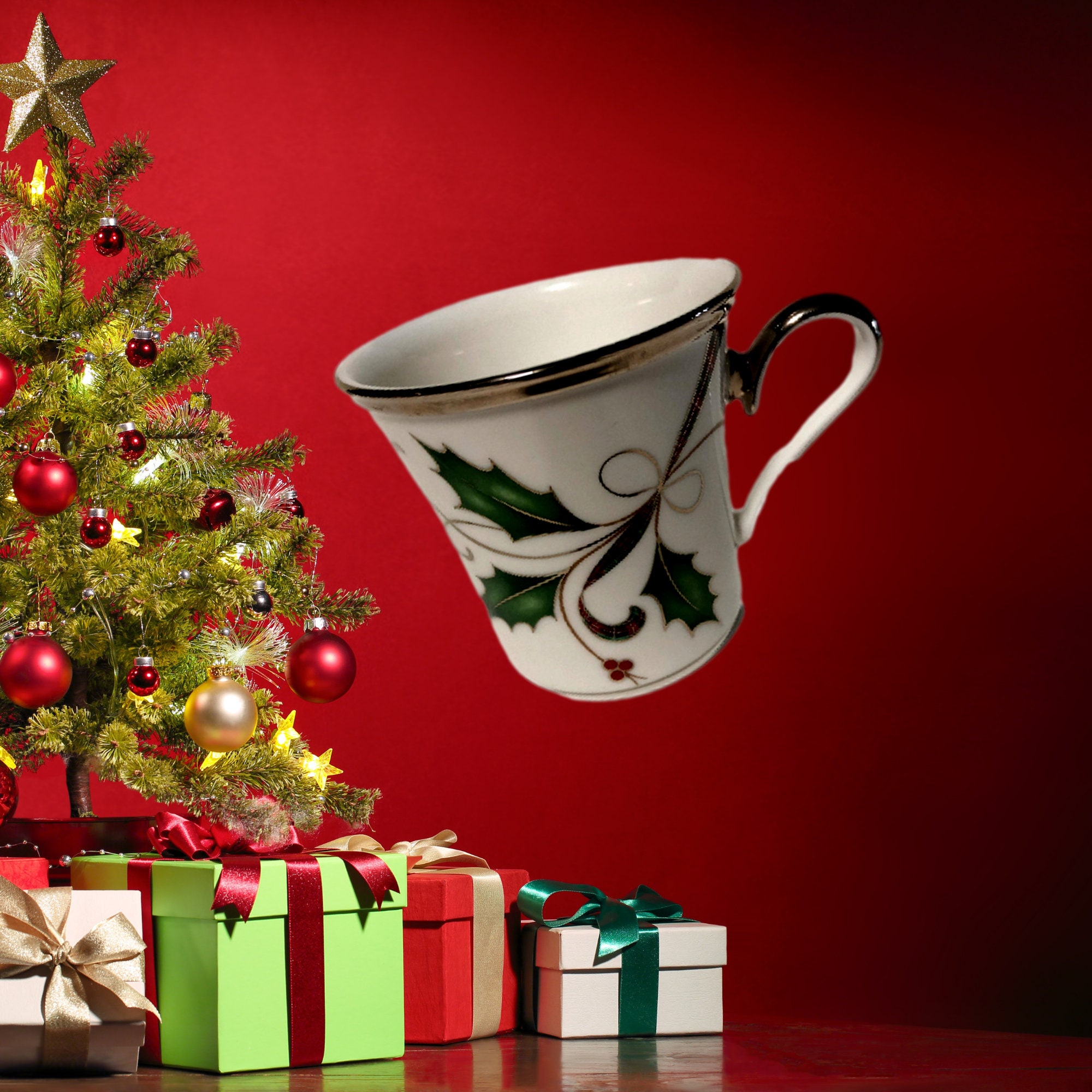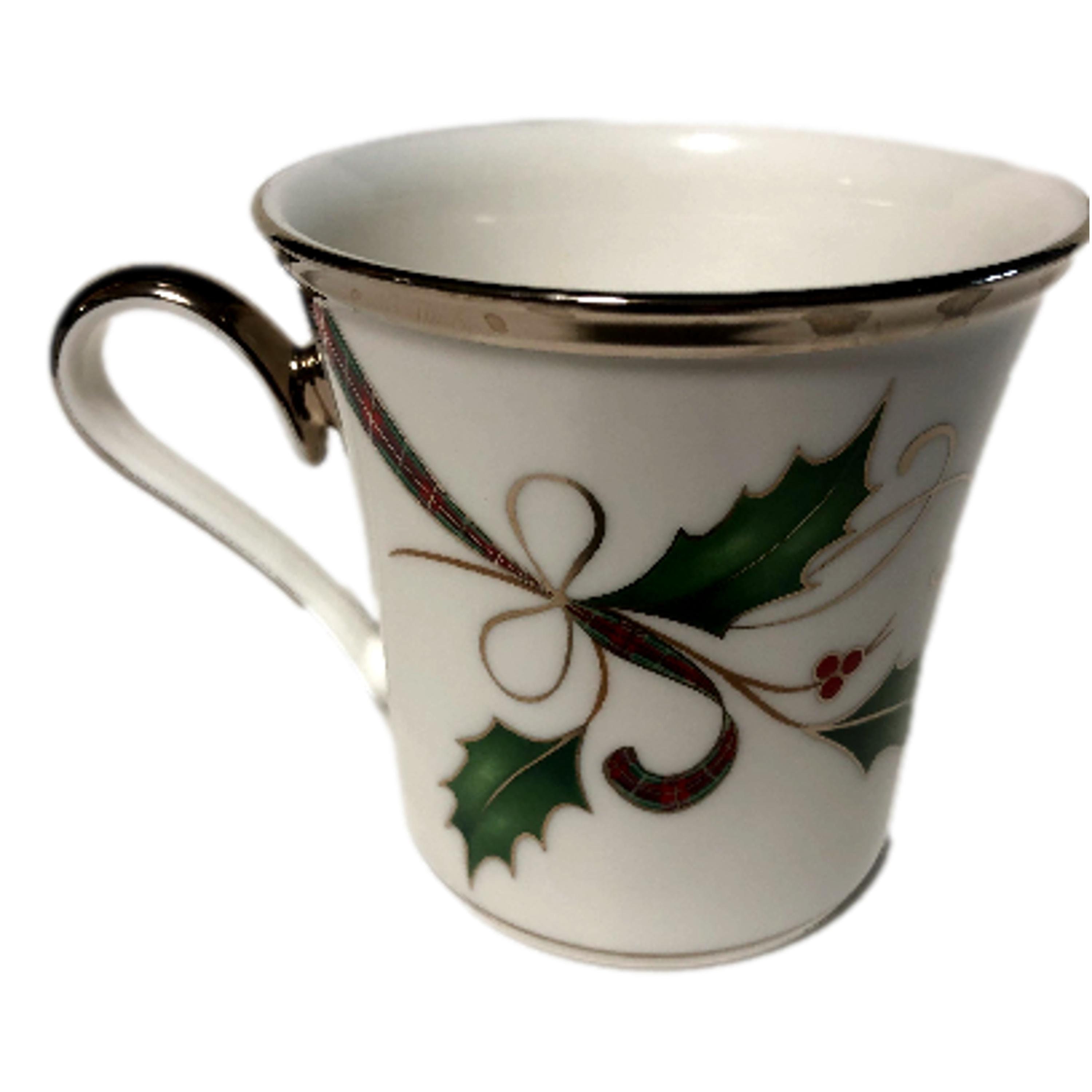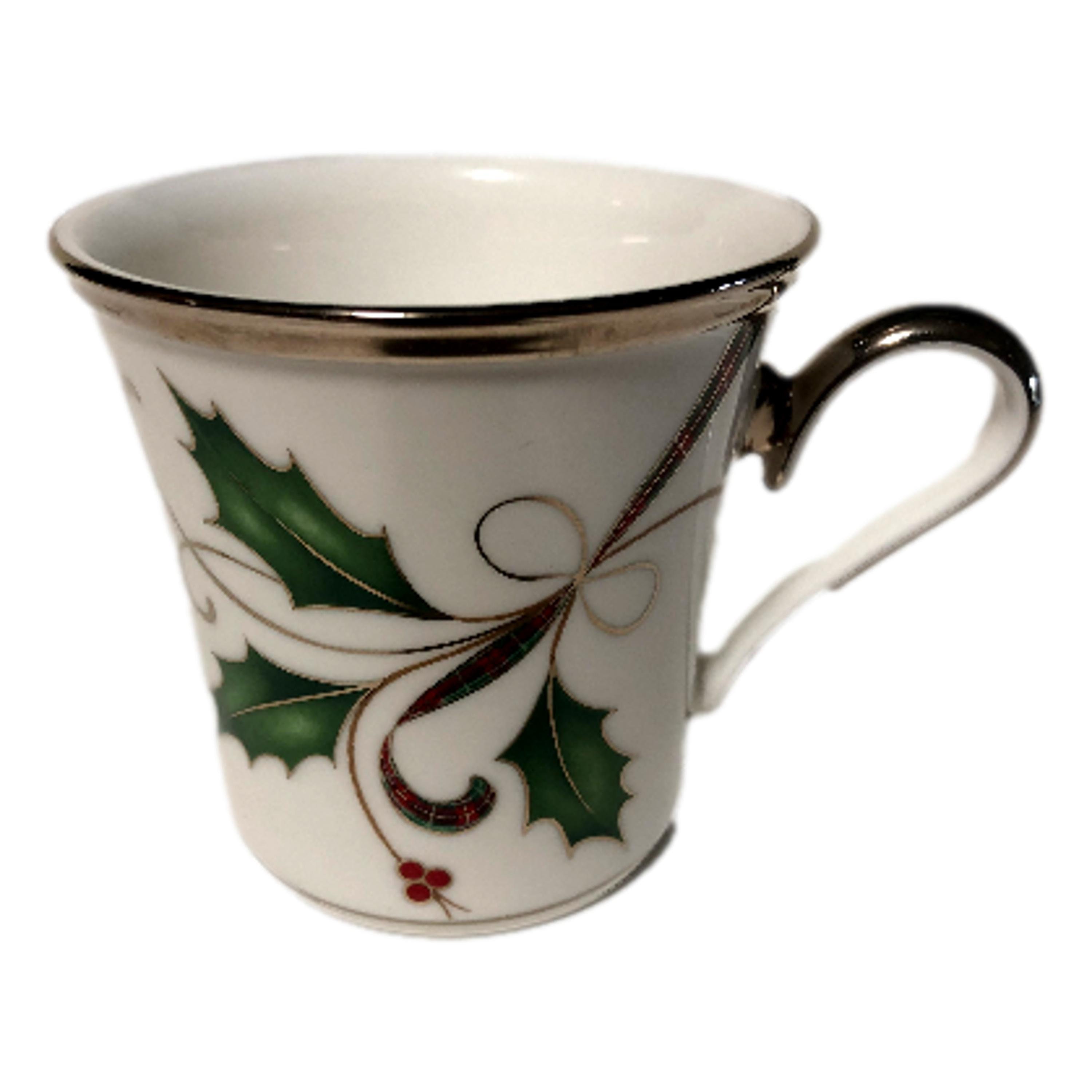 Lenox Holiday Nouveau China Coffee Cup Set of 4: Platinum Holly Berry Design