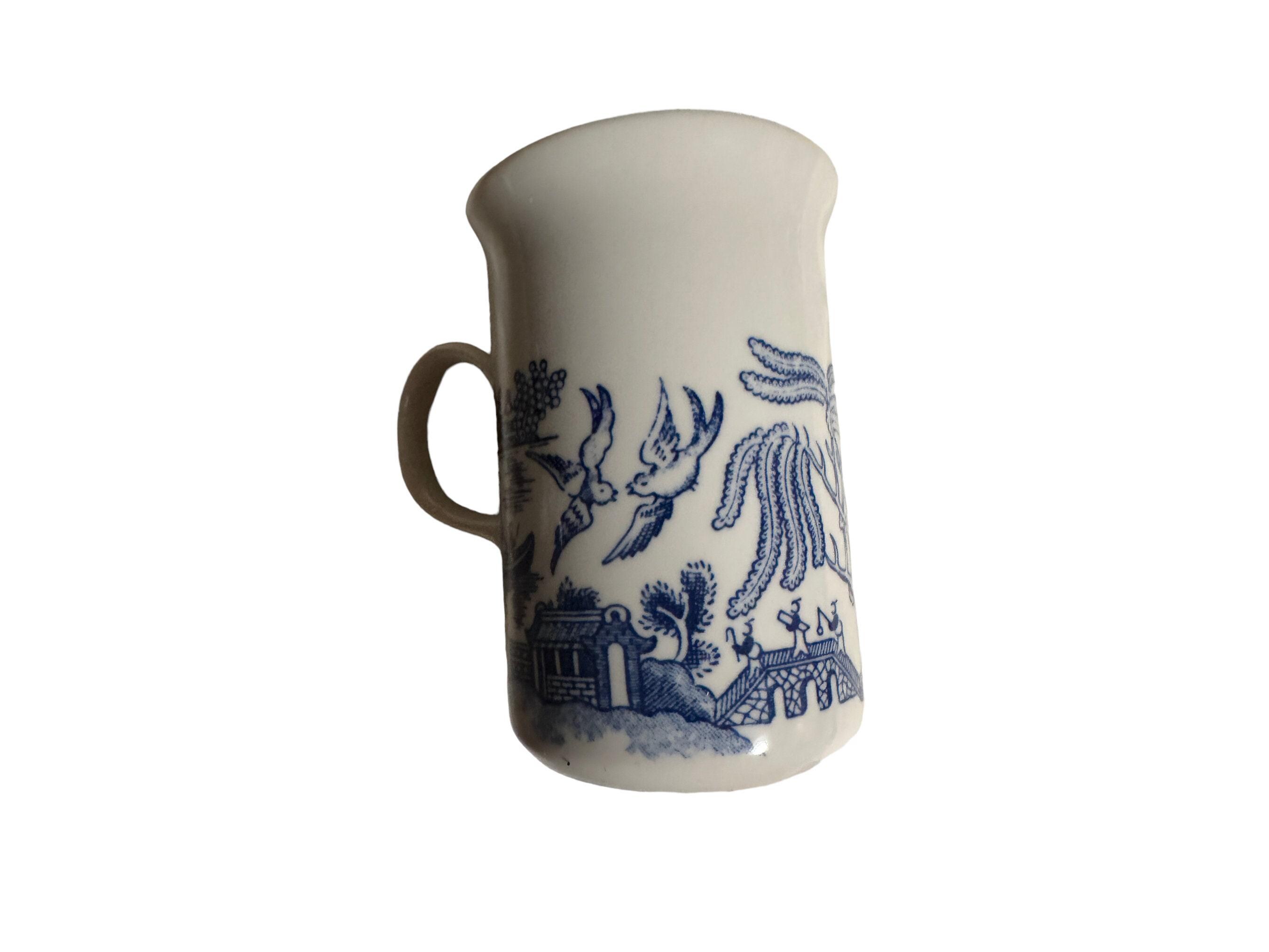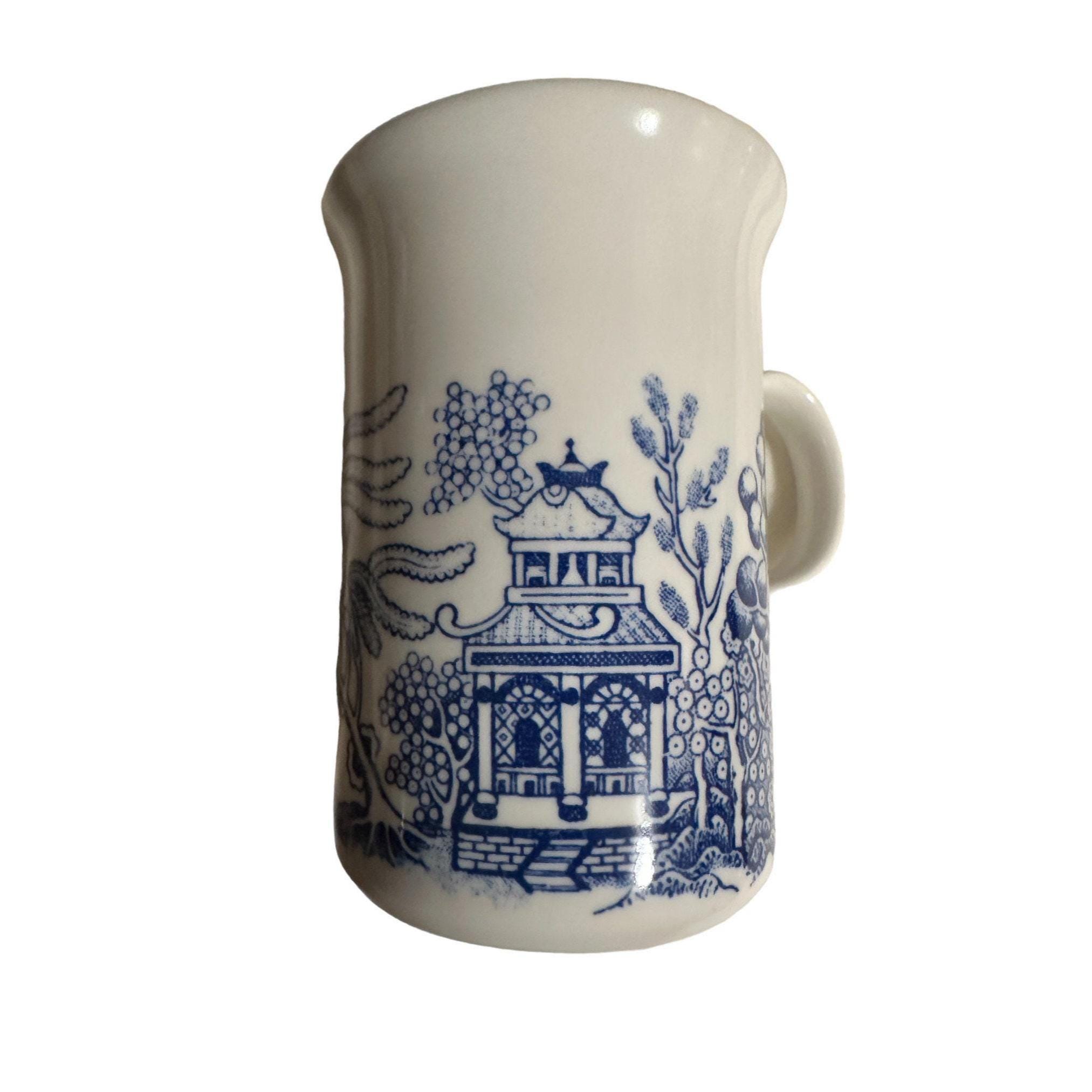 Staffordshire Asian Blue Willow Coffee Mug Vintage Ceramic Tea Cup from England