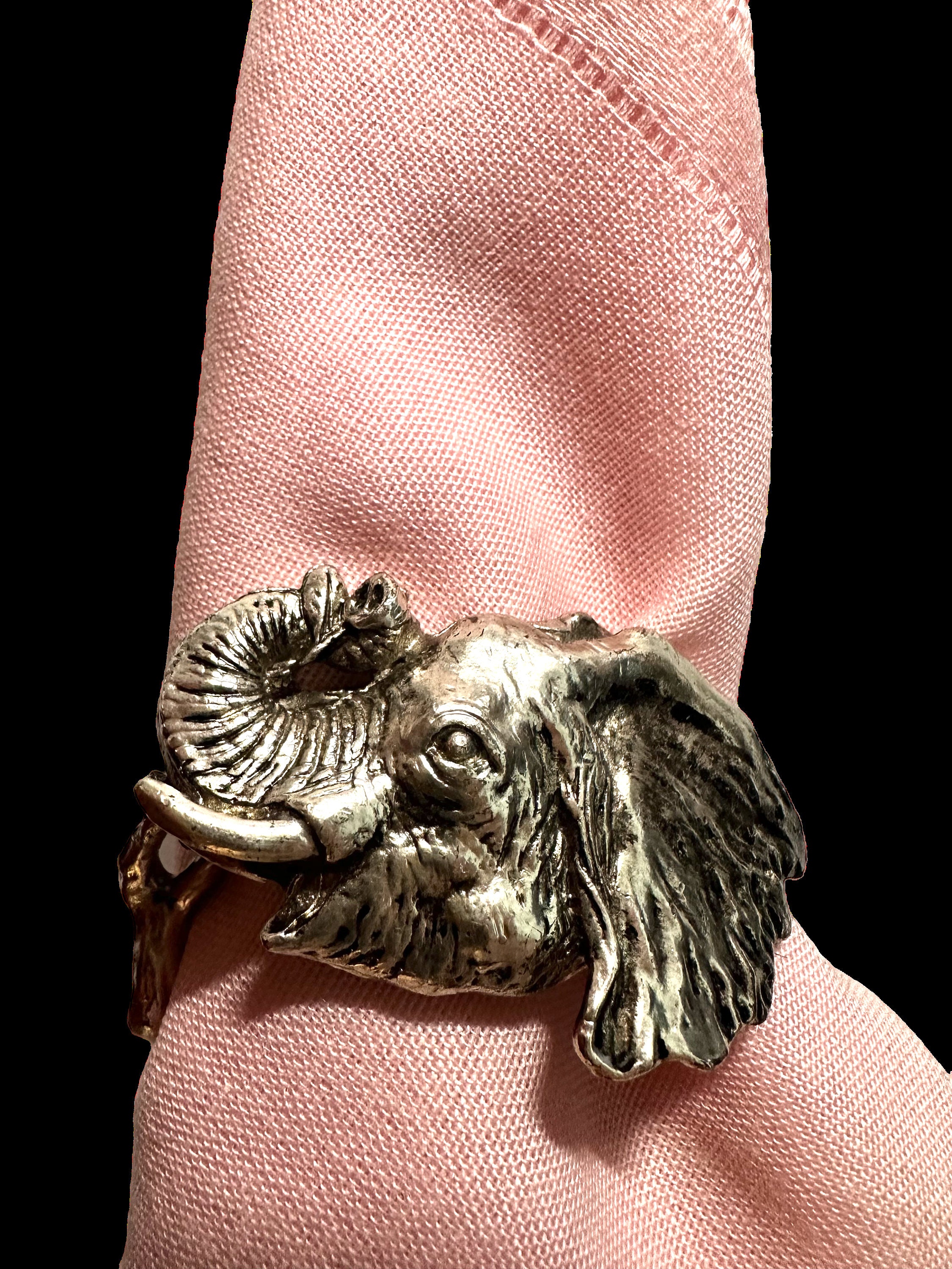 Bring a touch of playful elegance to your table with these exquisite Arthur Court elephant napkin rings — a timeless piece that celebrates style and tradition!