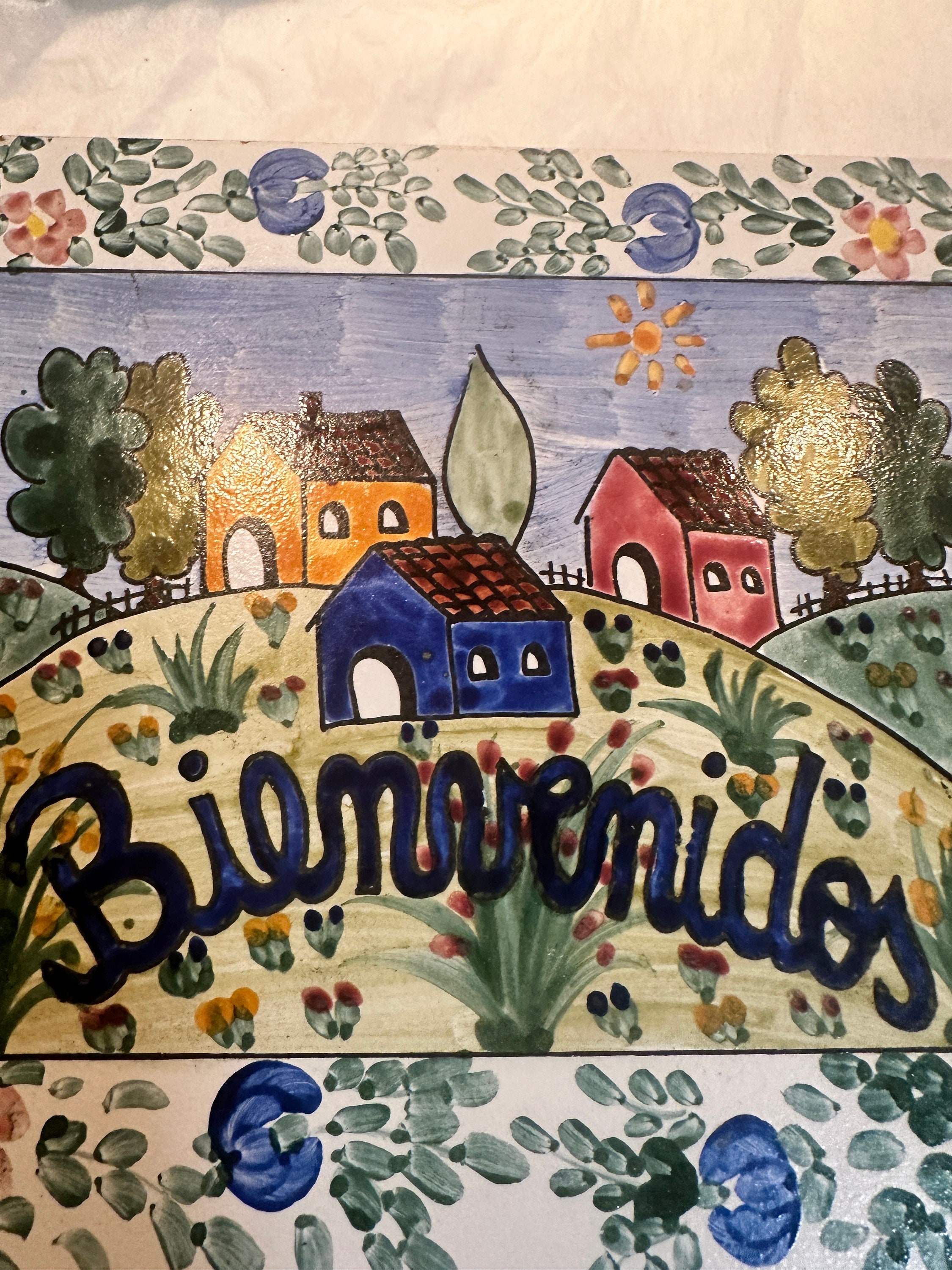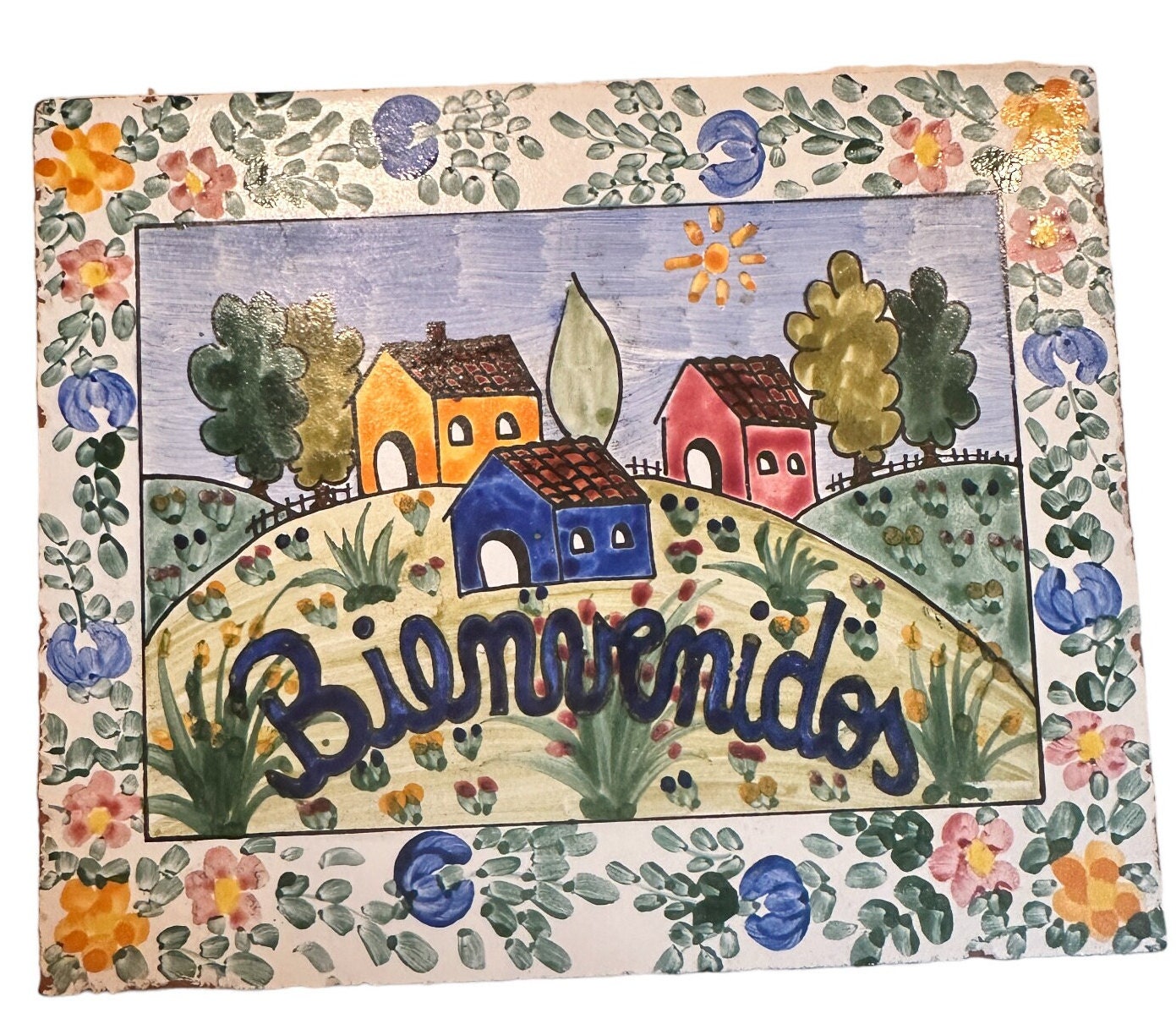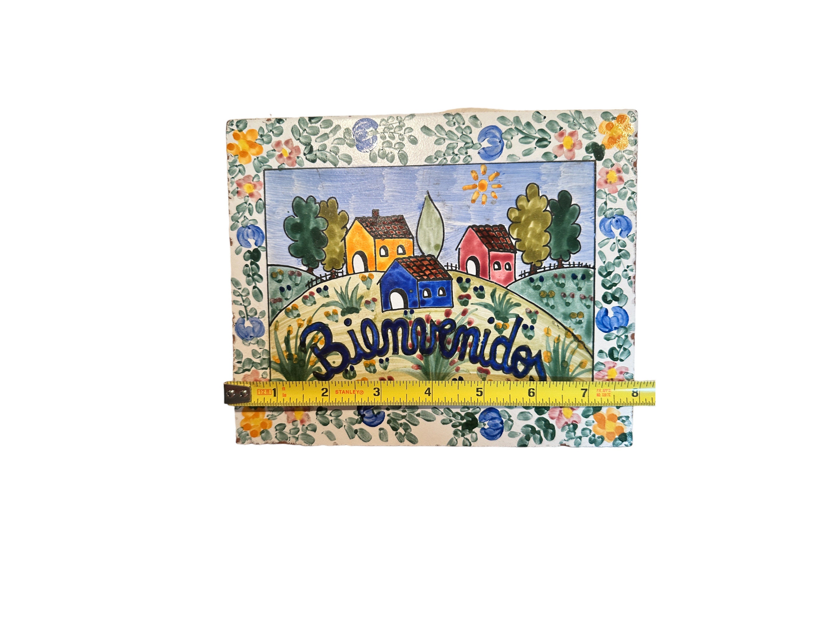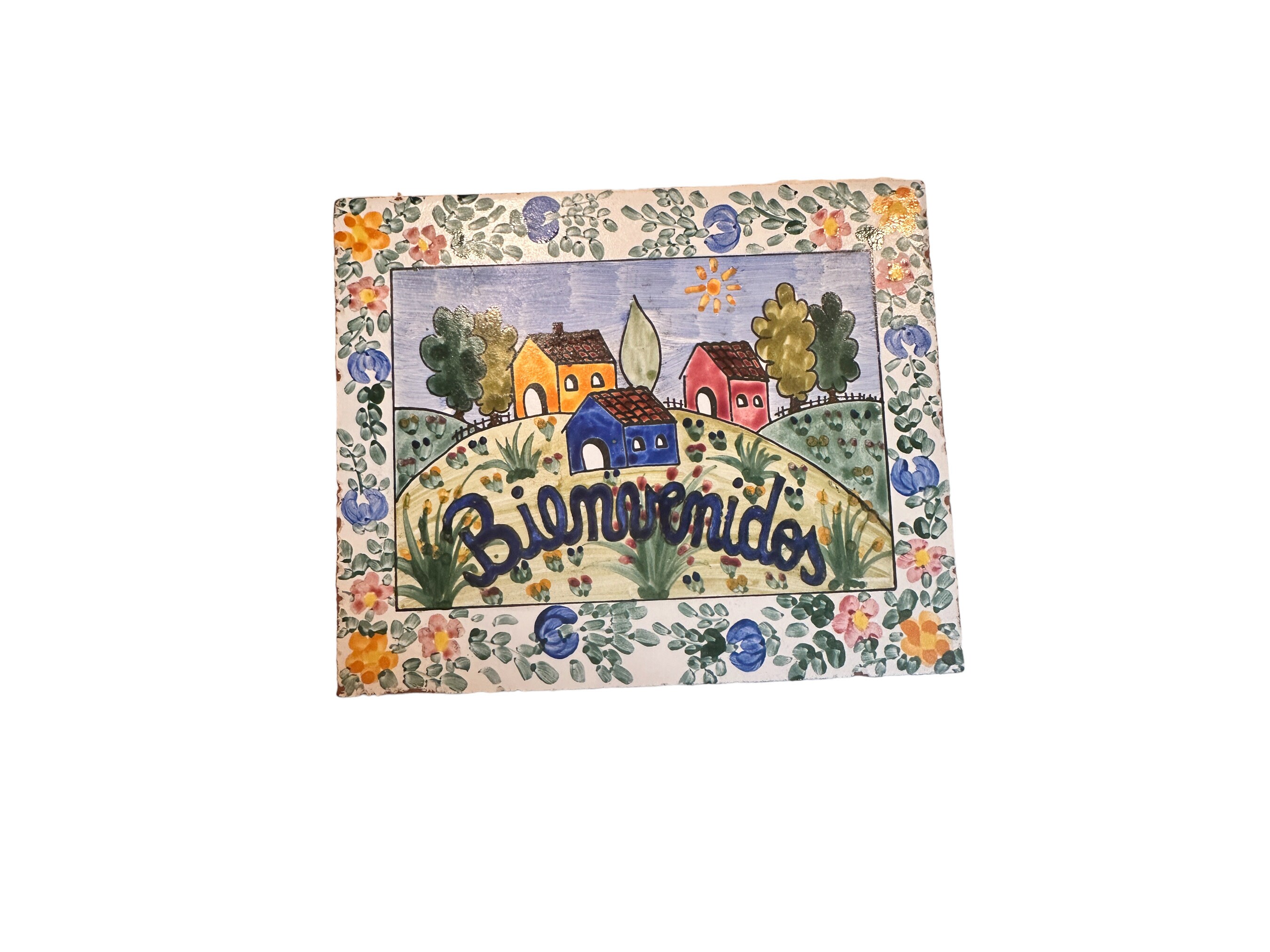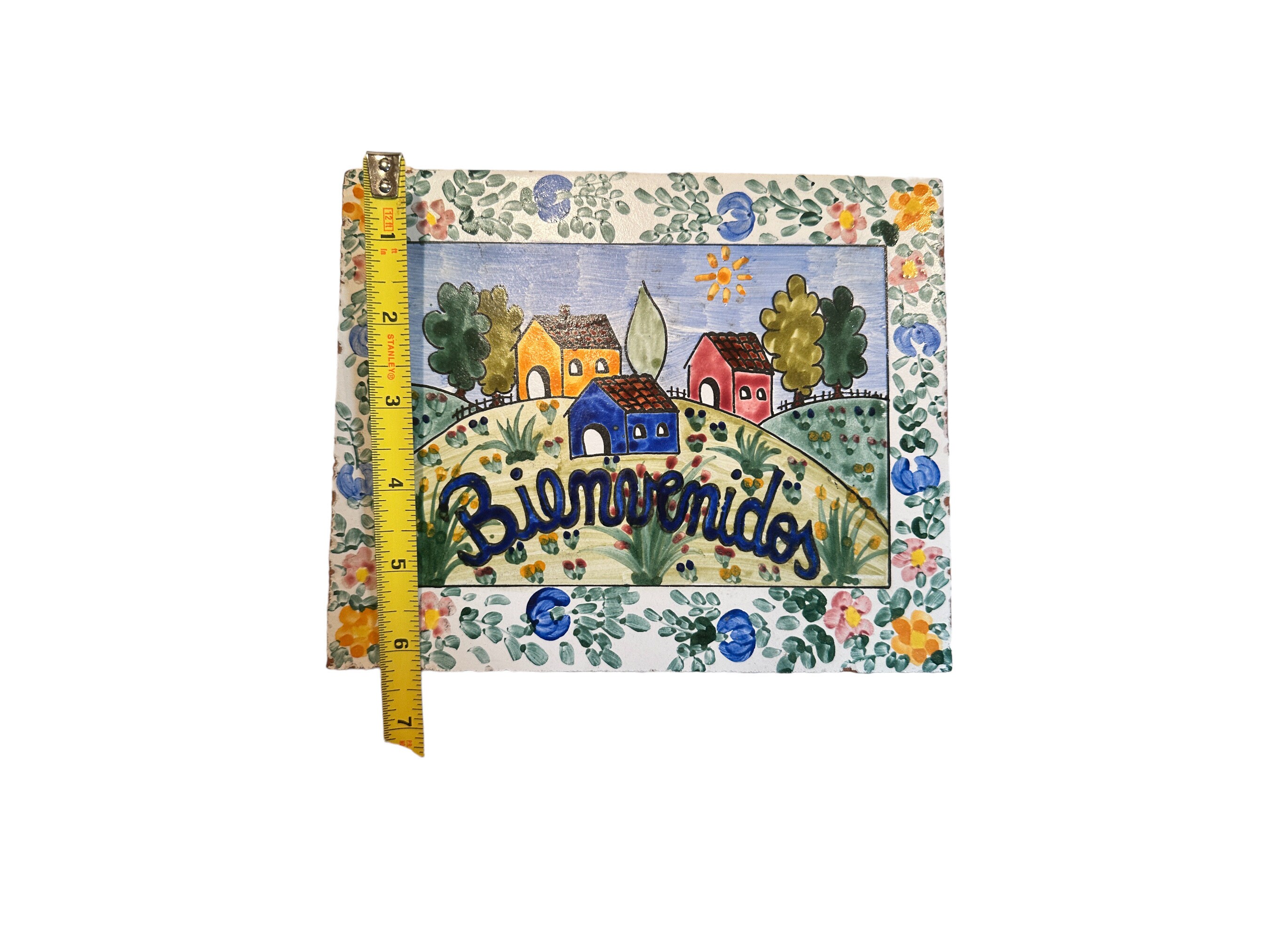 Bienvenidos Ceramic Art Tile: Hand-Painted Floral Welcome Sign