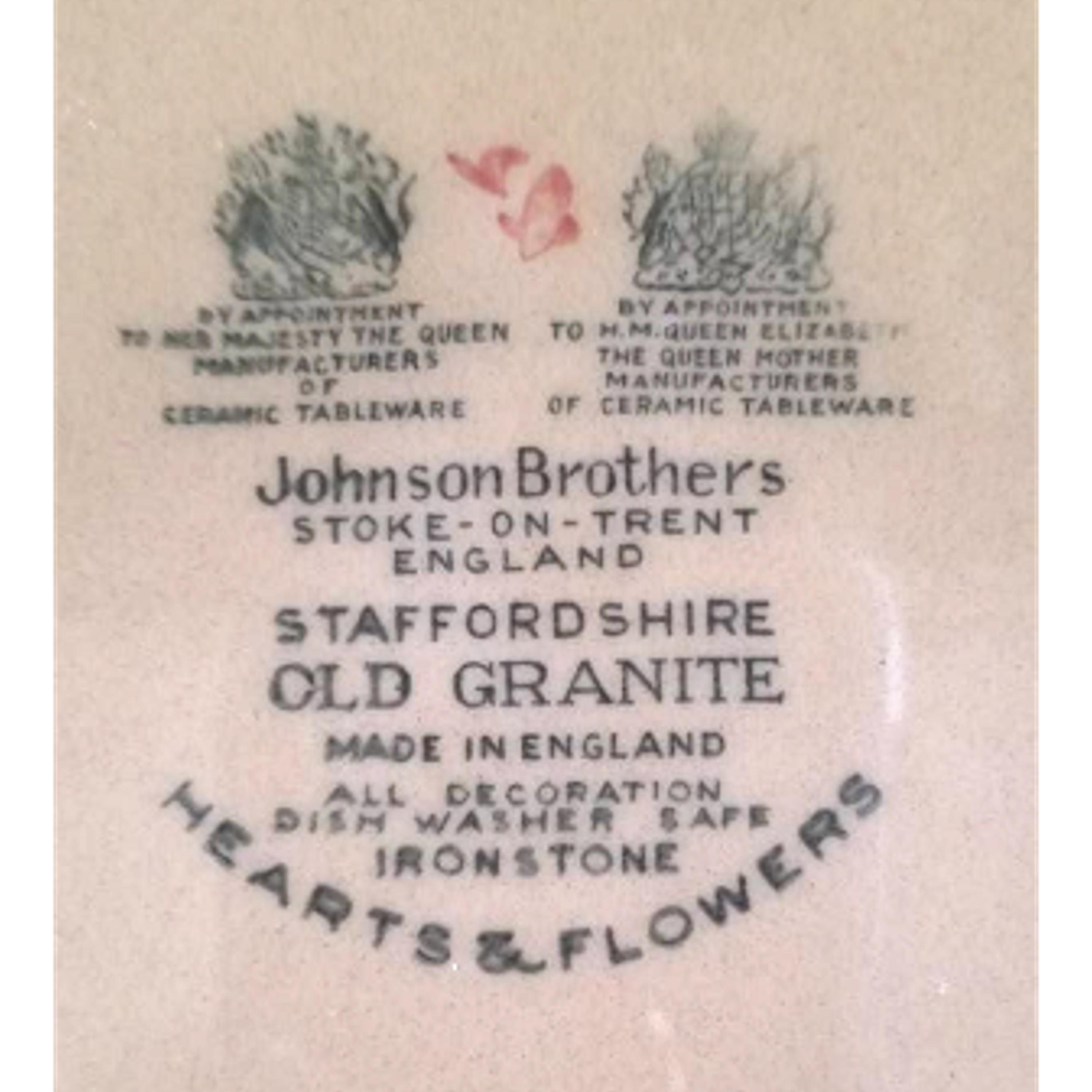 Vintage Johnson Brothers Ironstone Plate Hearts & Flowers Staffordshire Old Granite