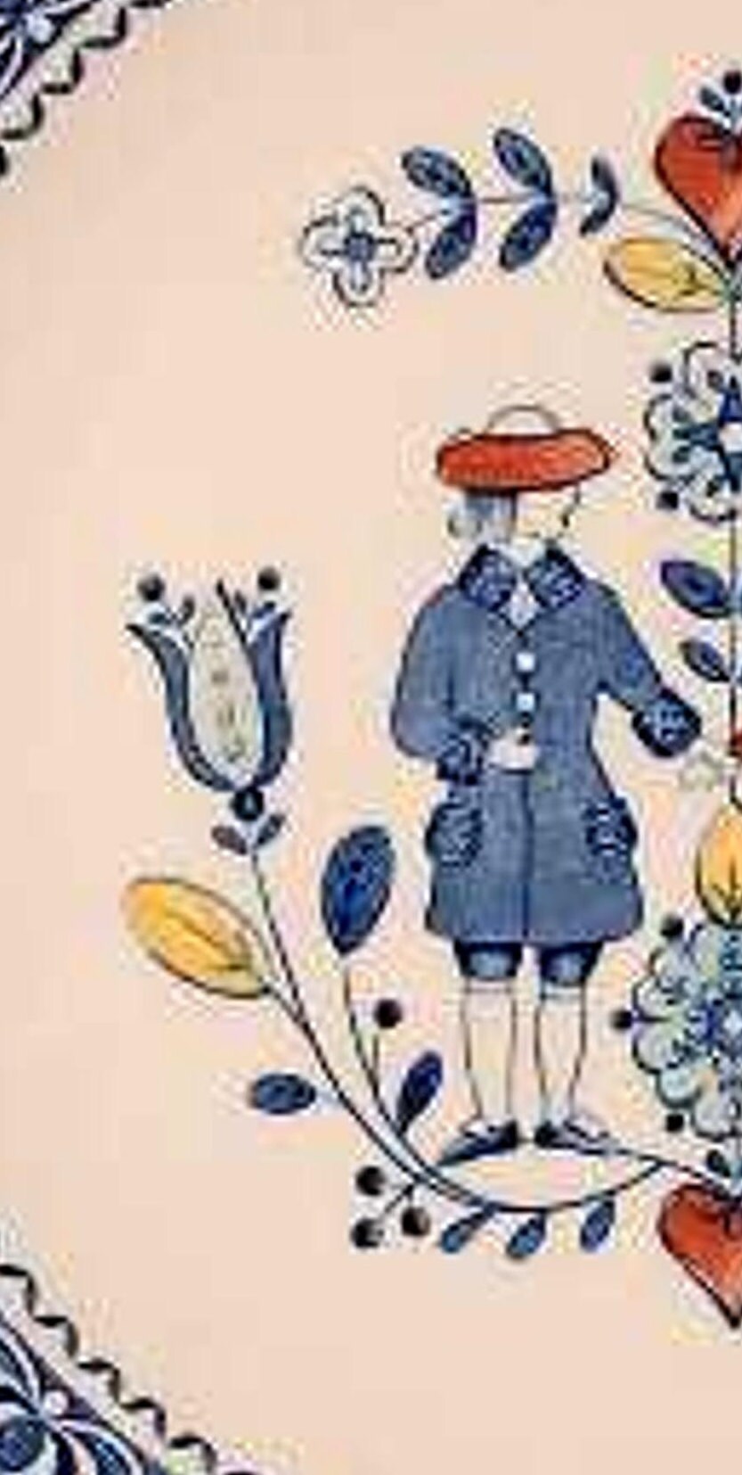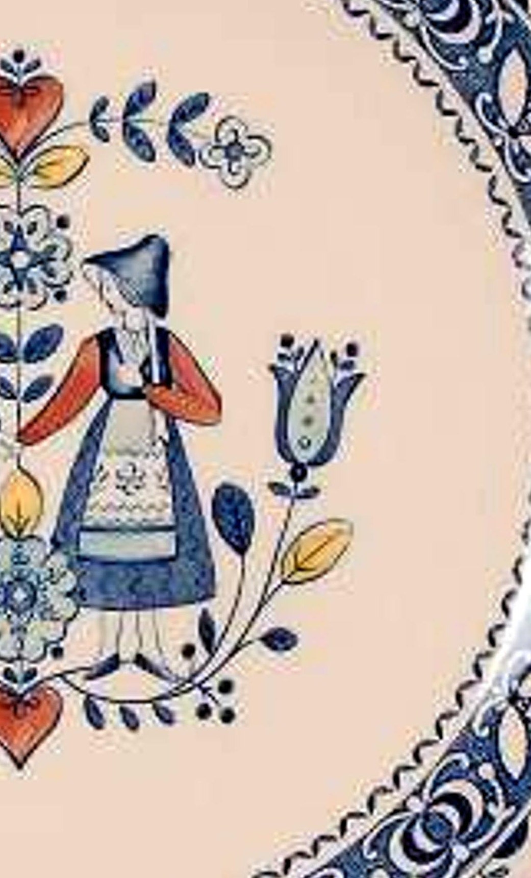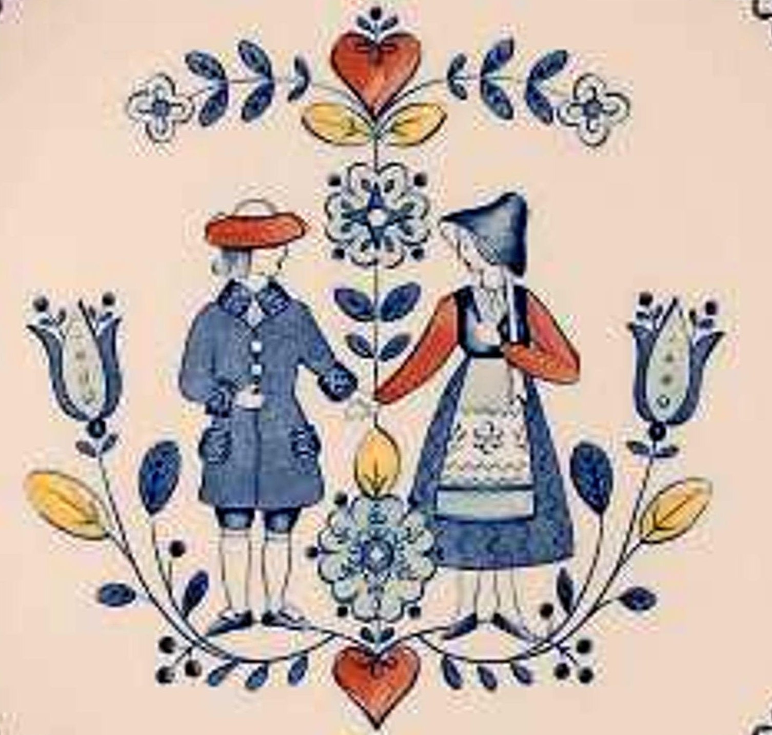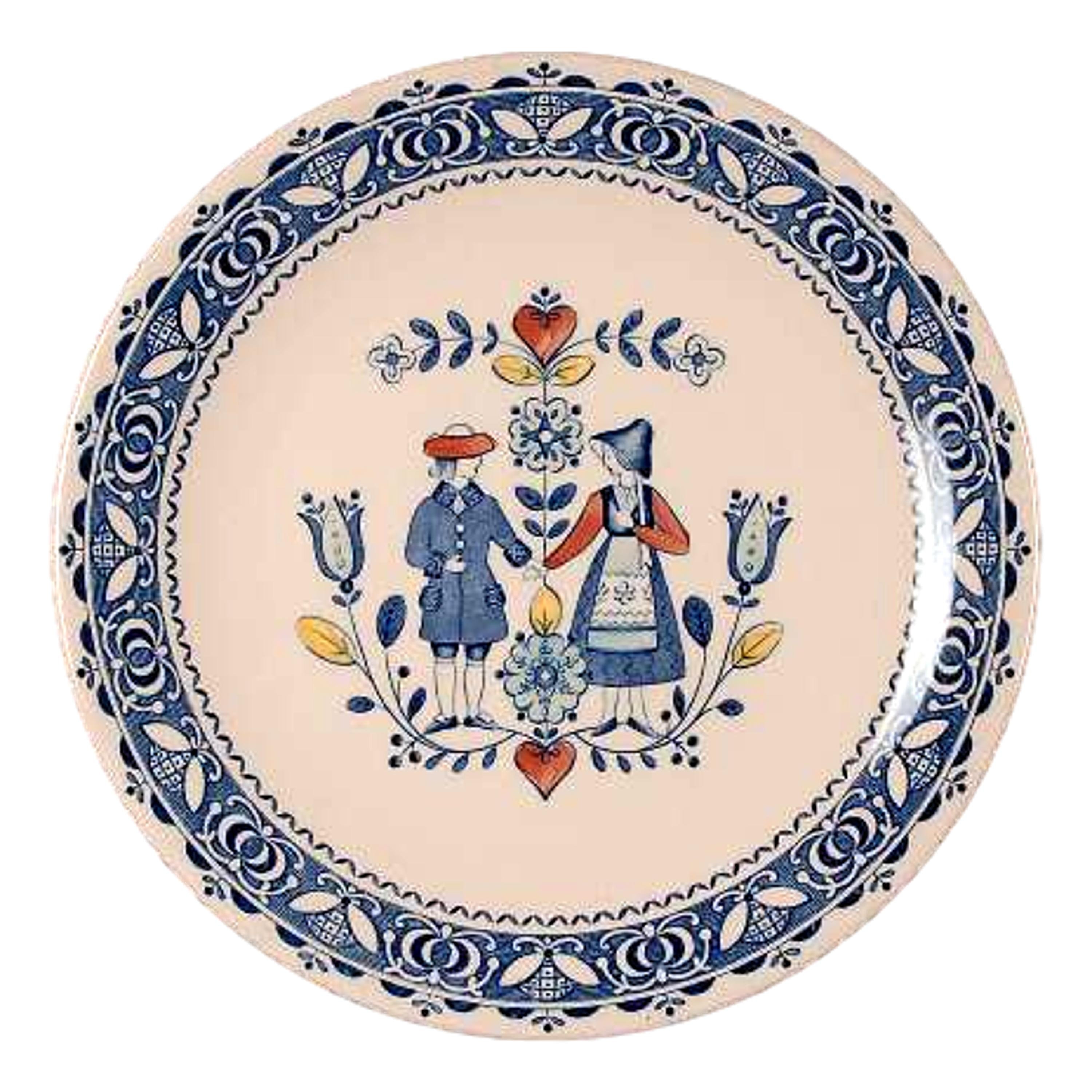 You'll love this man and woman, hearts and flowers, a blue border vintage plate.