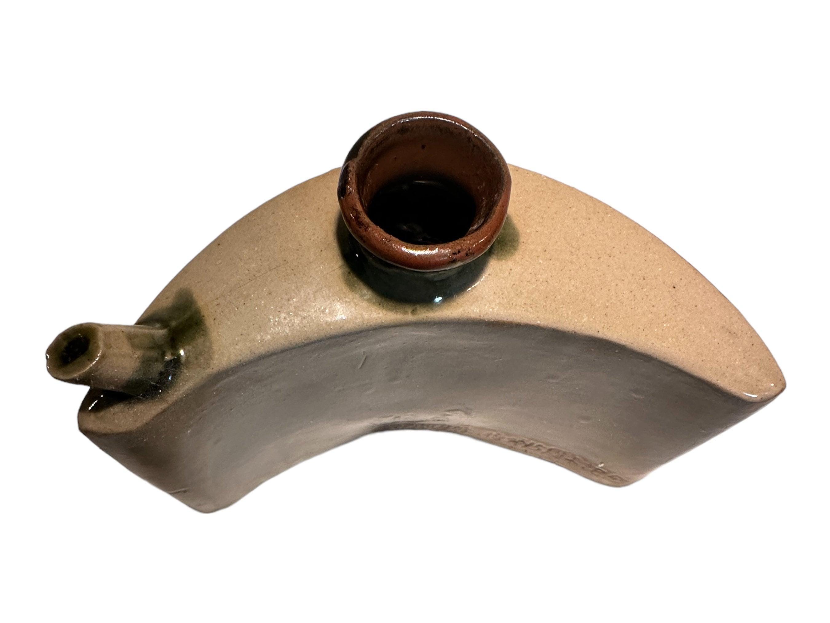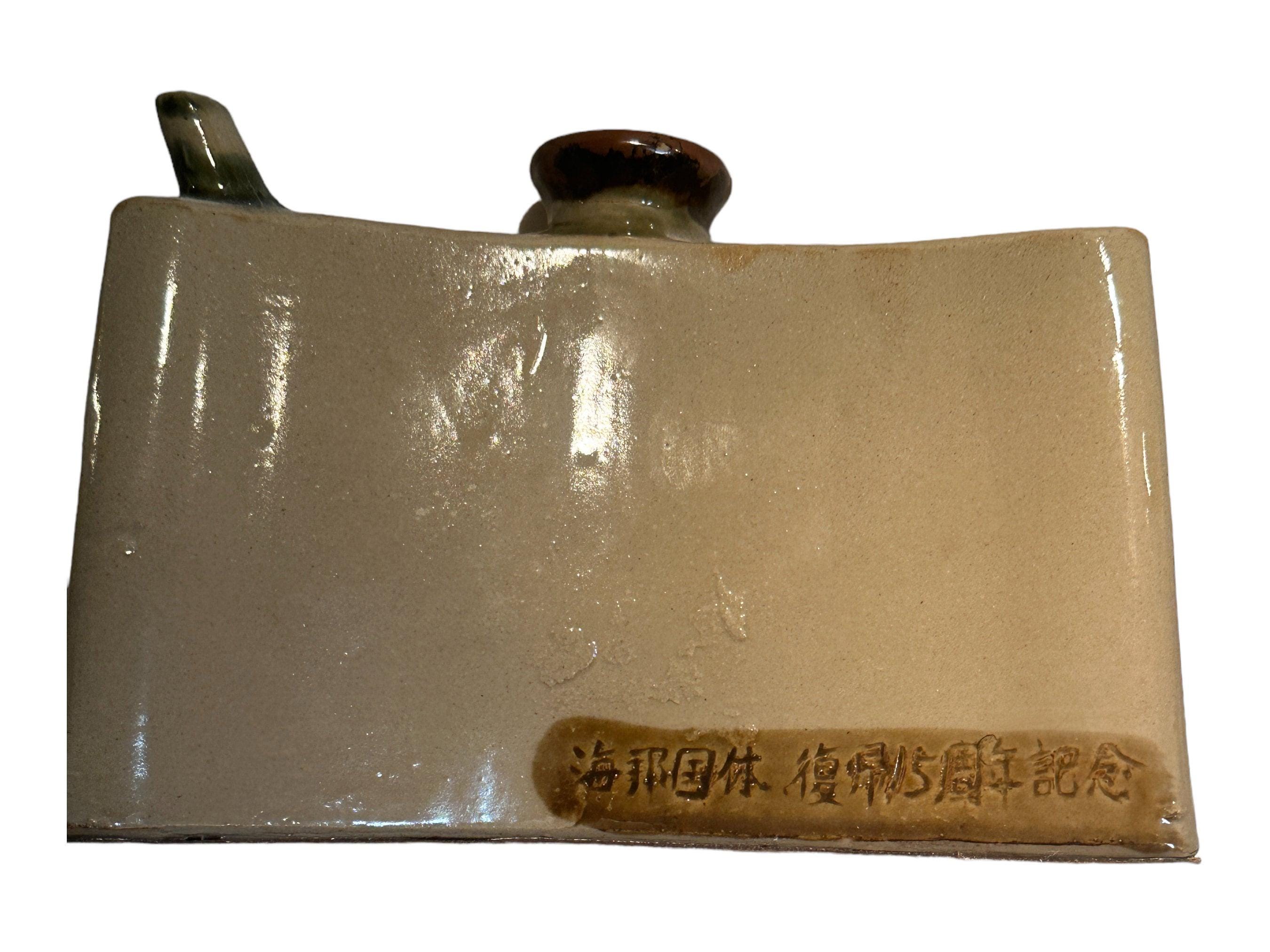 Hip flask for Saki made from pottery. This vintage ceramic flask measures 7.5 inches wide x 5 inches high. It is in great condition. Great gift for him. Great Father's Day Gift!