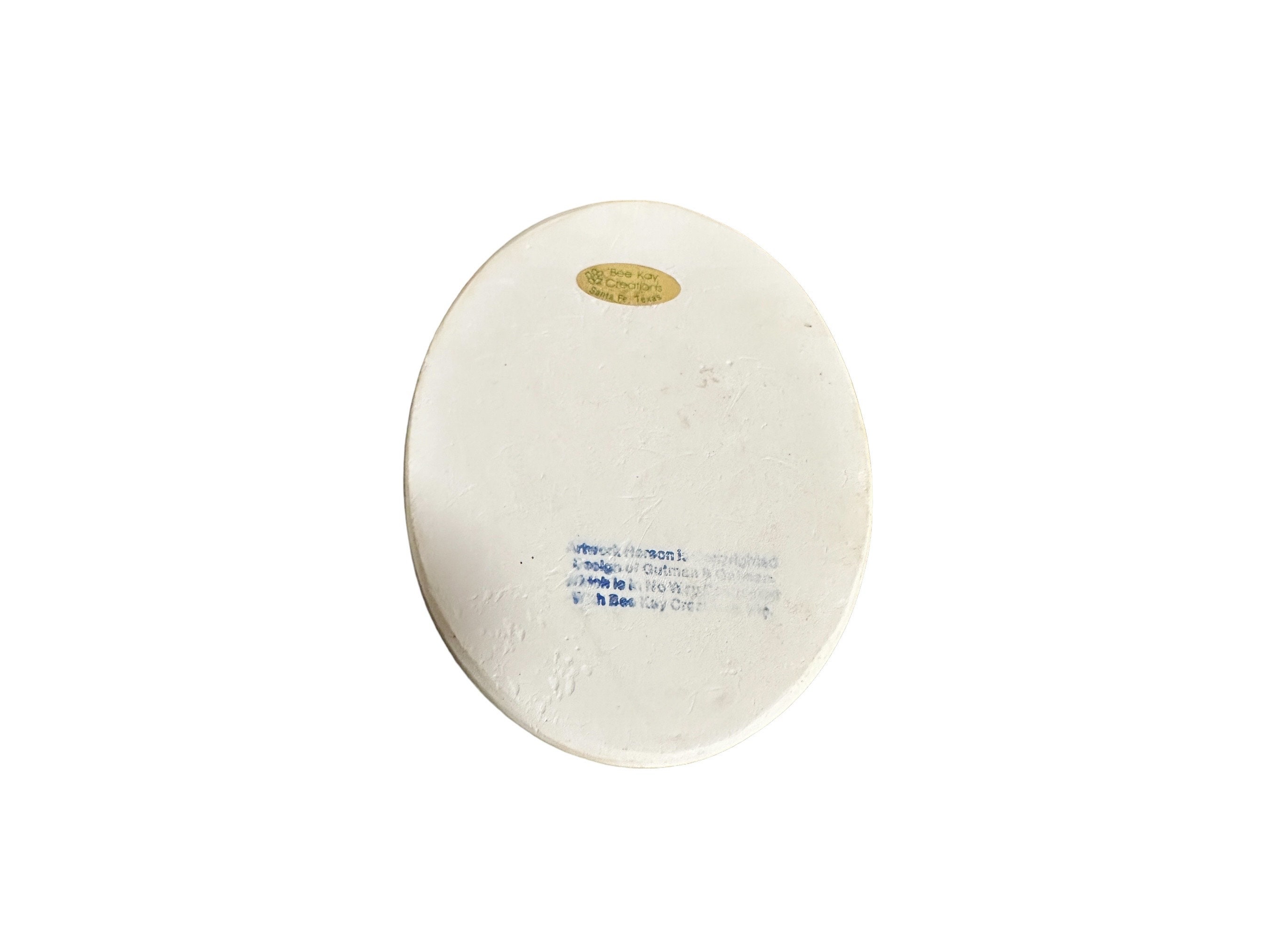 Crafted from high-quality porcelain, this charming wall hanging captures the sweet innocence and playful spirit of childhood. Its oval shape lends a classic, timeless appeal that complements various nursery themes and home decor styles. You can easily hang it with the attached hook or choose to frame it for a more polished look.
