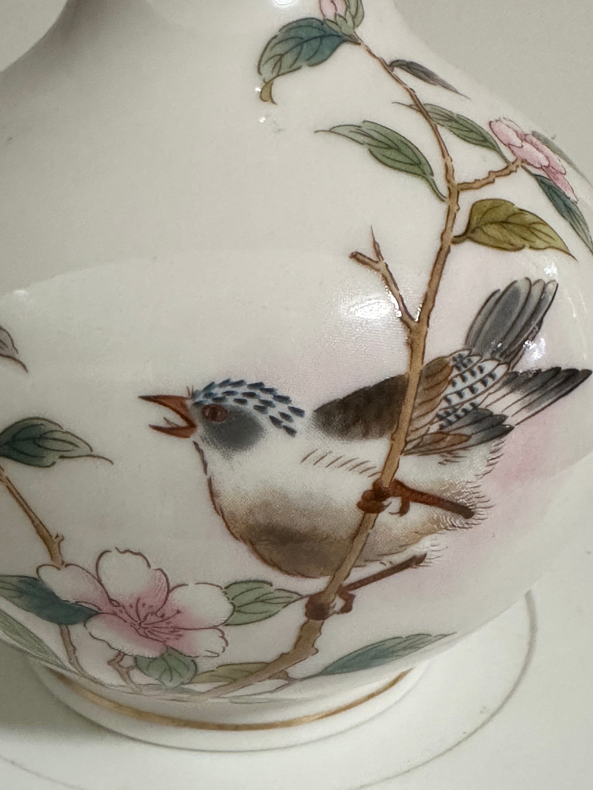 Japanese Porcelain Floral Vase: Yamaji Bird & Cherry Blossom Decor