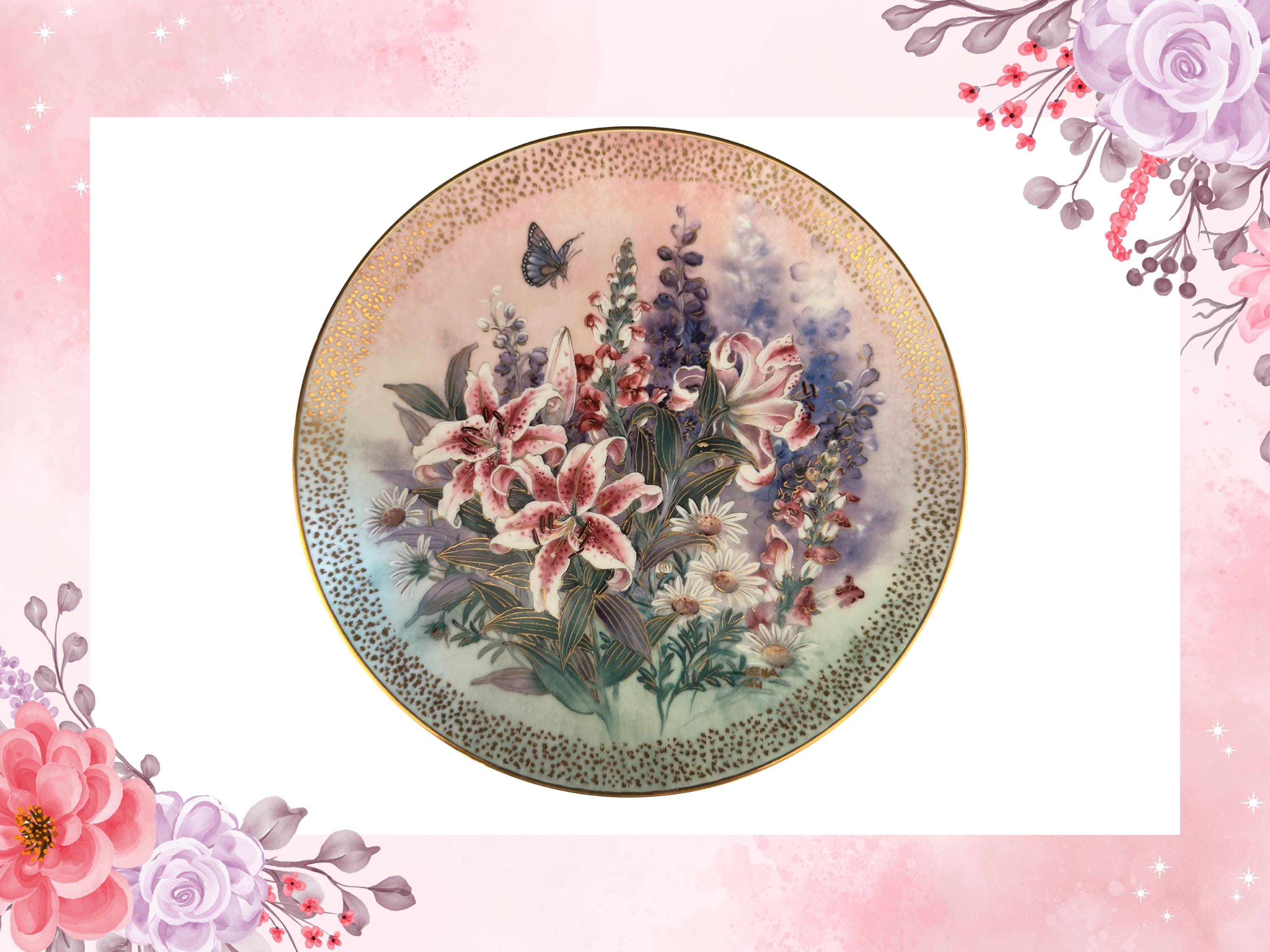 Sapphire Wings Iris Flowers Butterfly Wall Decor | Fine China Porcelain Plate with COA