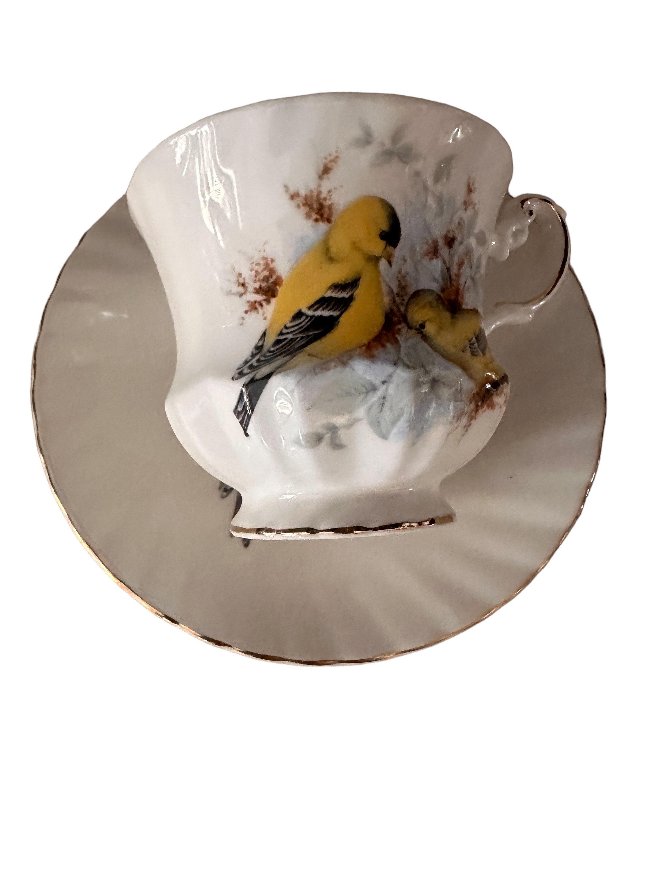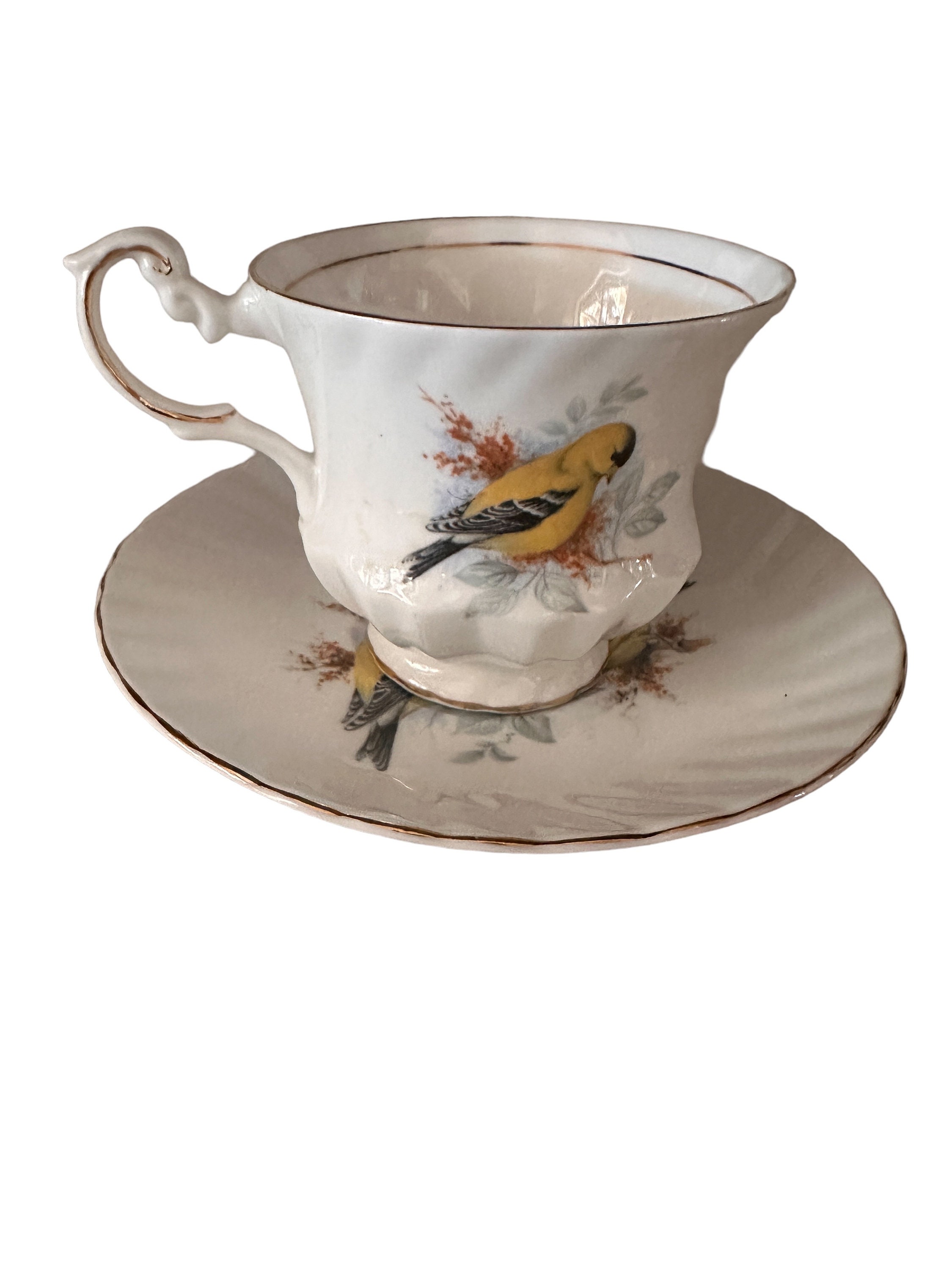 Queens Birds of America Teacup & Saucer Yellow Finch Design