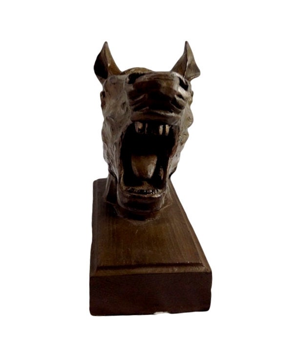 This decorative horse is in excellent condition. The carved bust measures 6" x 6" x 3". This handmade horse was cast in 1992 and has the title and artist name and number on the vintage piece. This decorative sculpture would make a great gift for horse lovers.