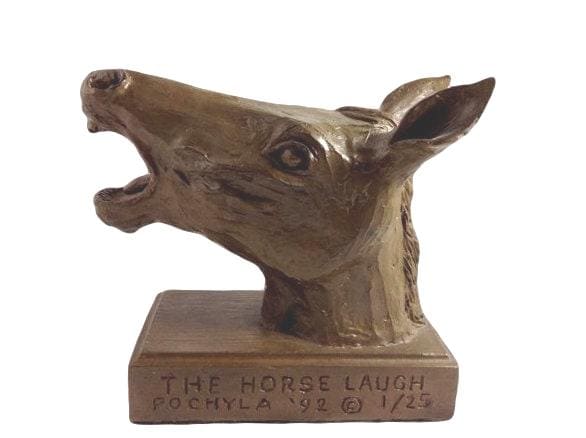This is a first edition bronze sculpture of horse art, the horse head by Major General Benjamin Pochyla. The horse head statue is called "The Horse Laugh". There were only 25 of these bronze horse head busts made. This bronze statue is number (1) one in a series of 25.
