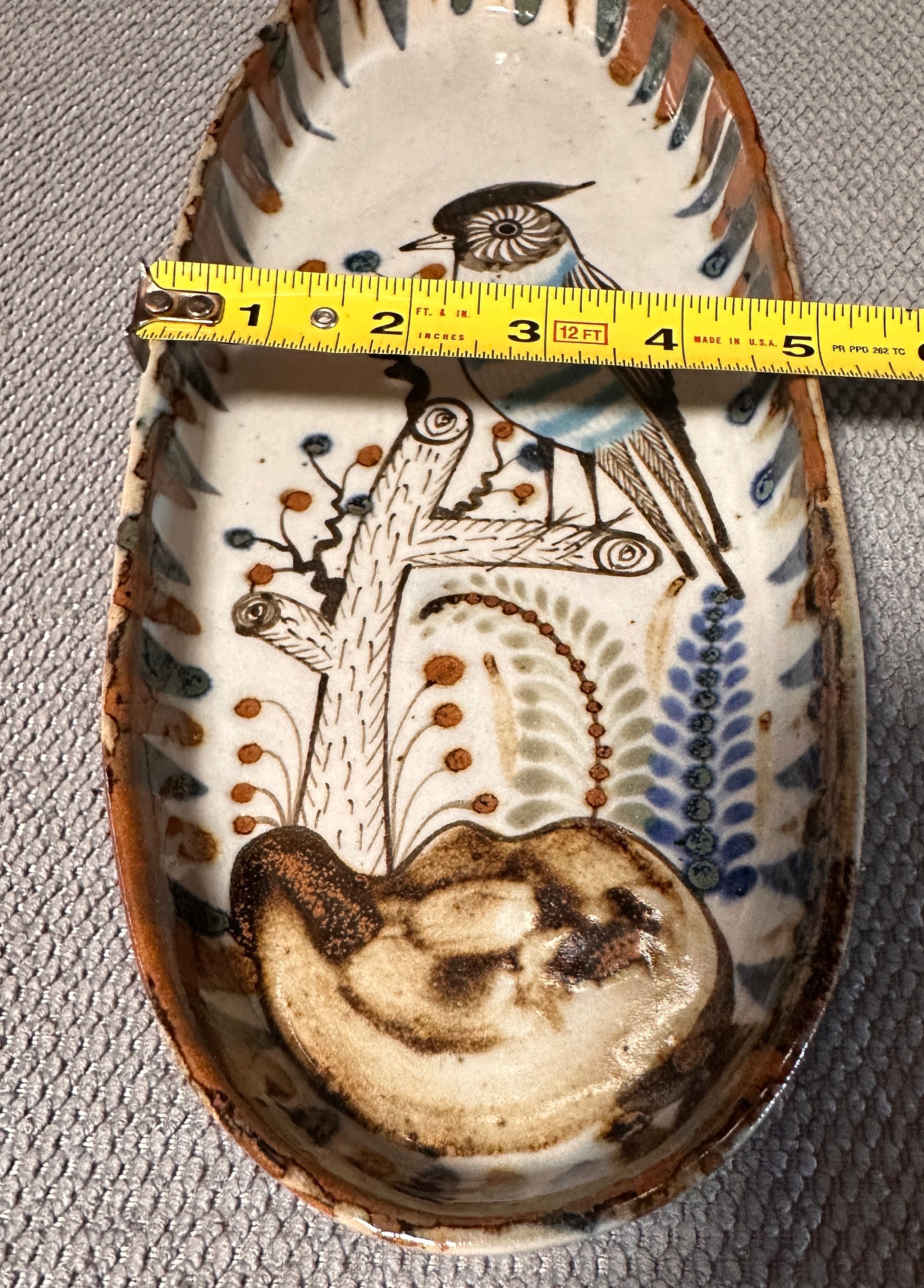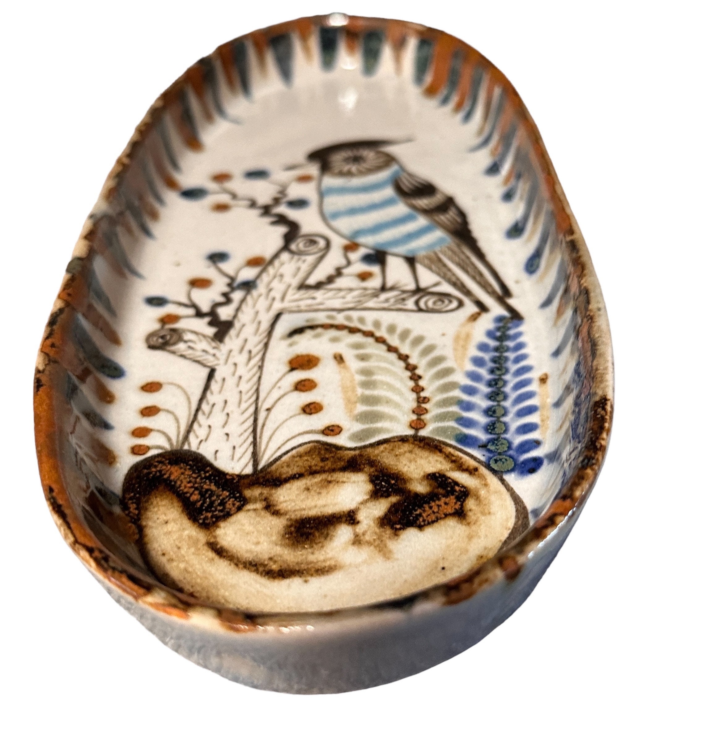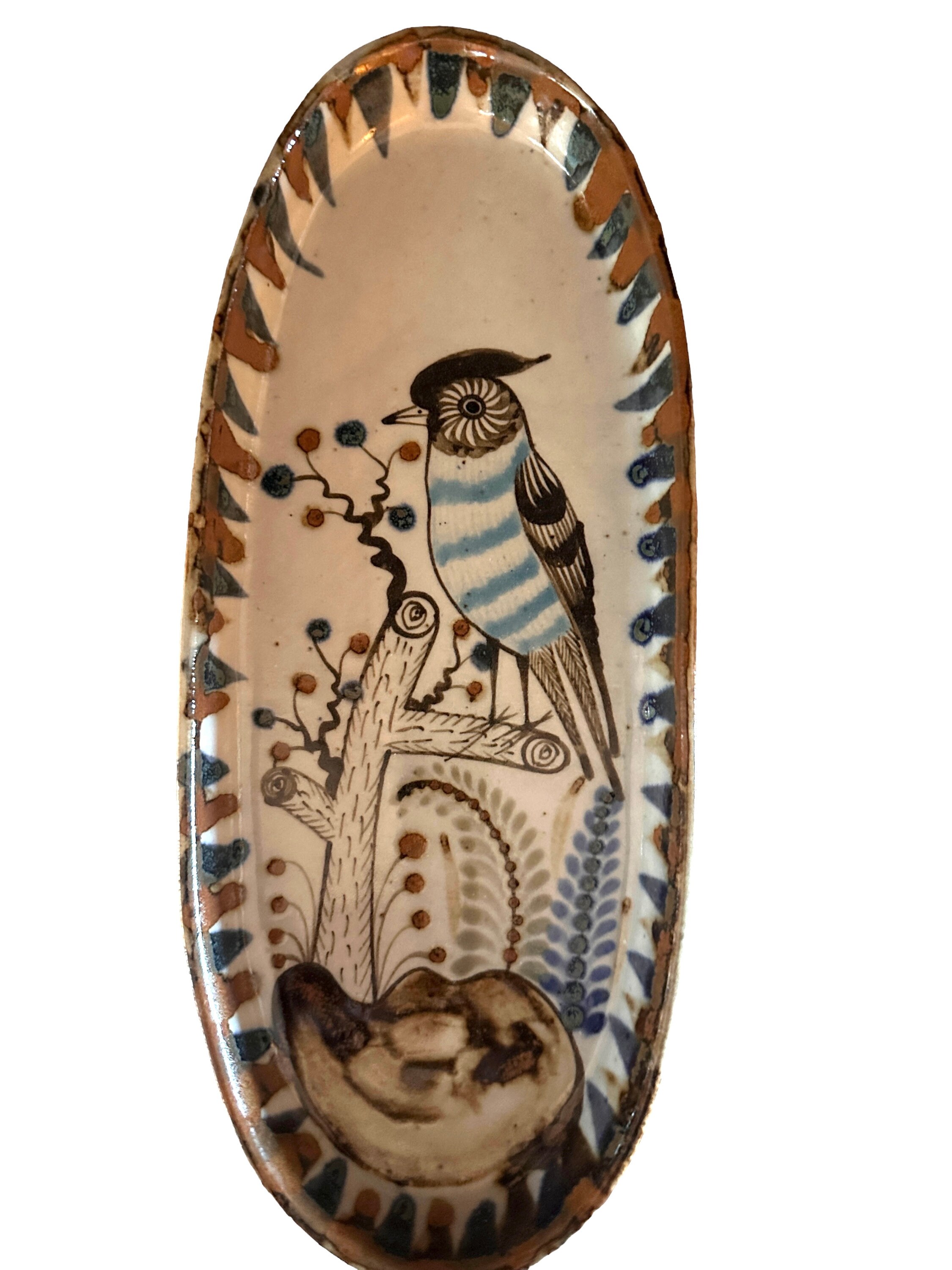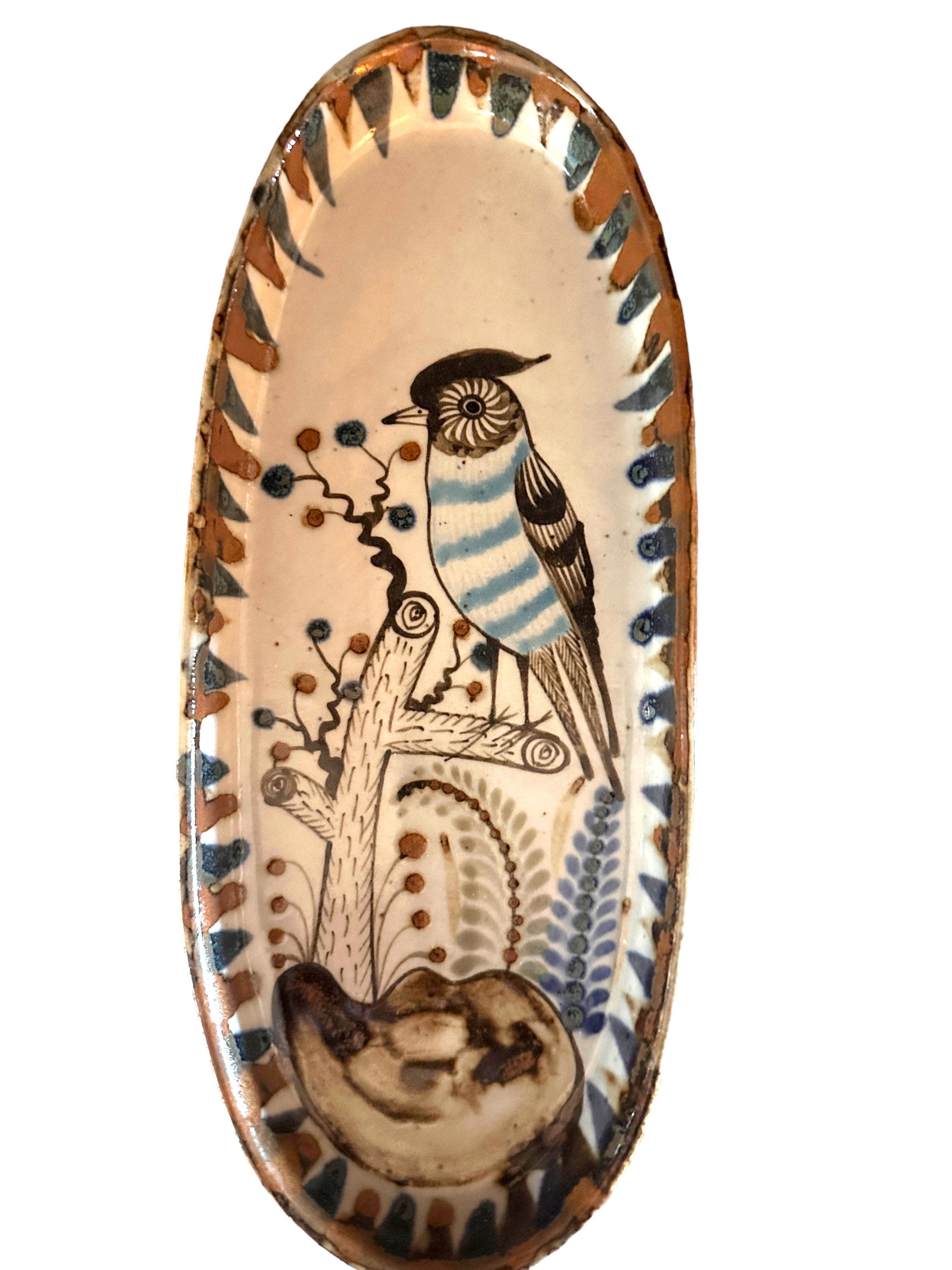 Tonala Pottery Dish: Handmade Southwestern Blue Bird Ceramic Tray