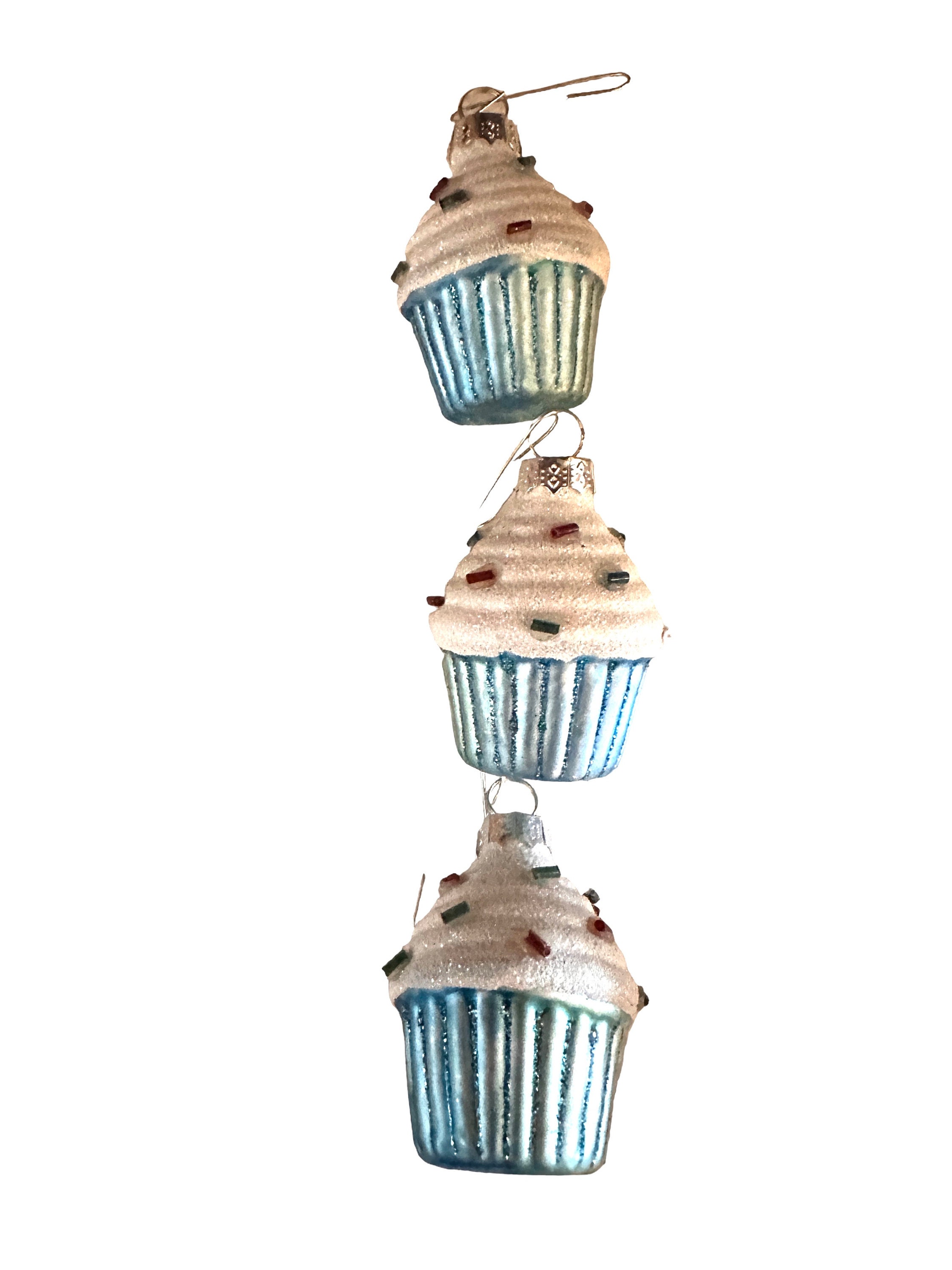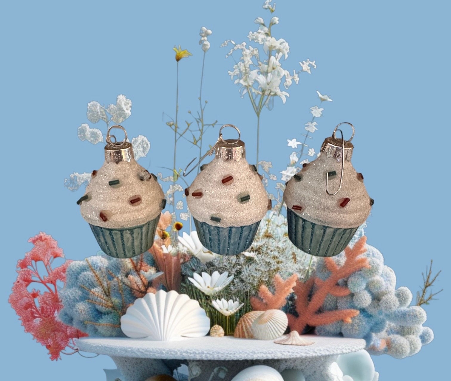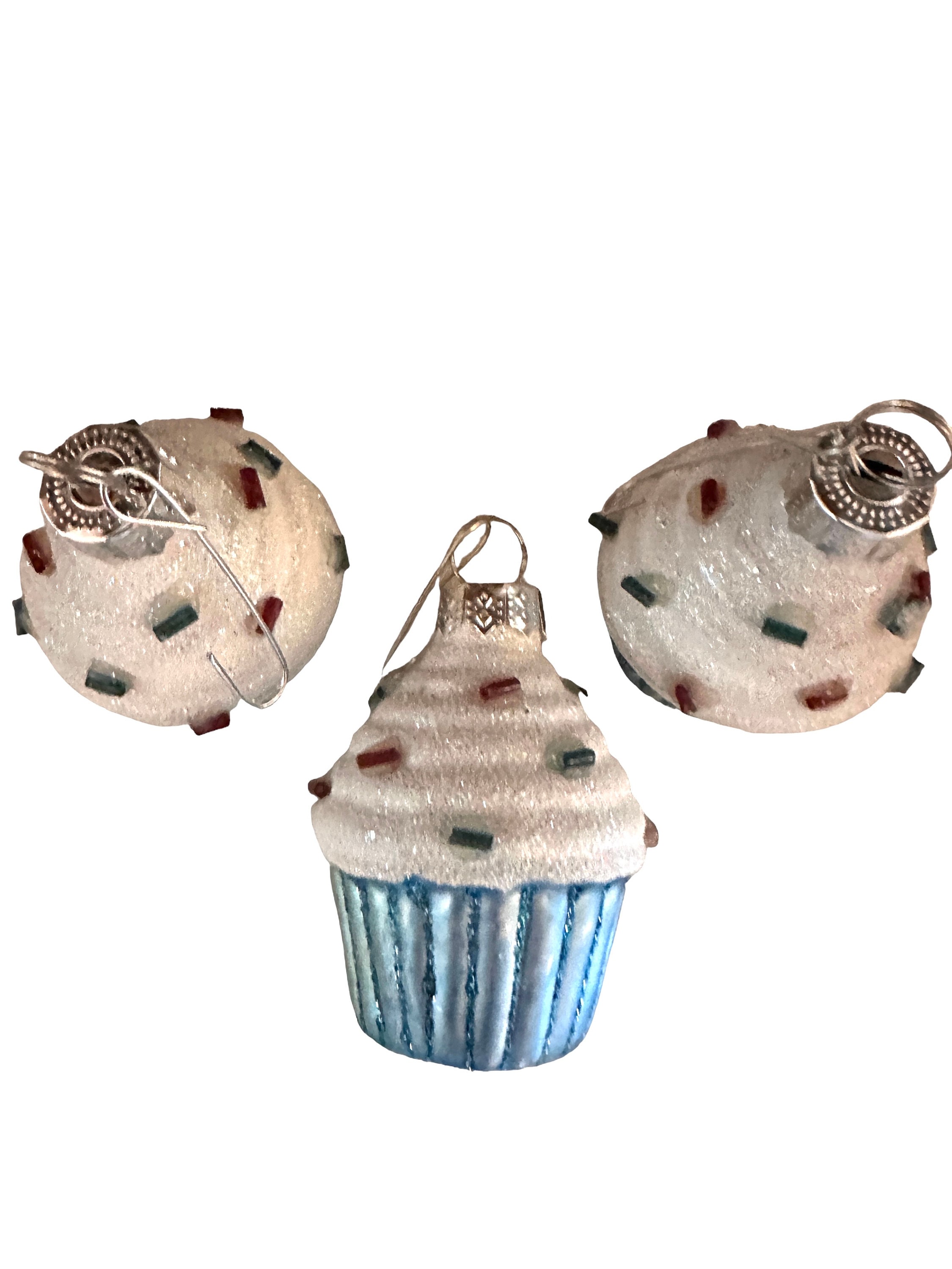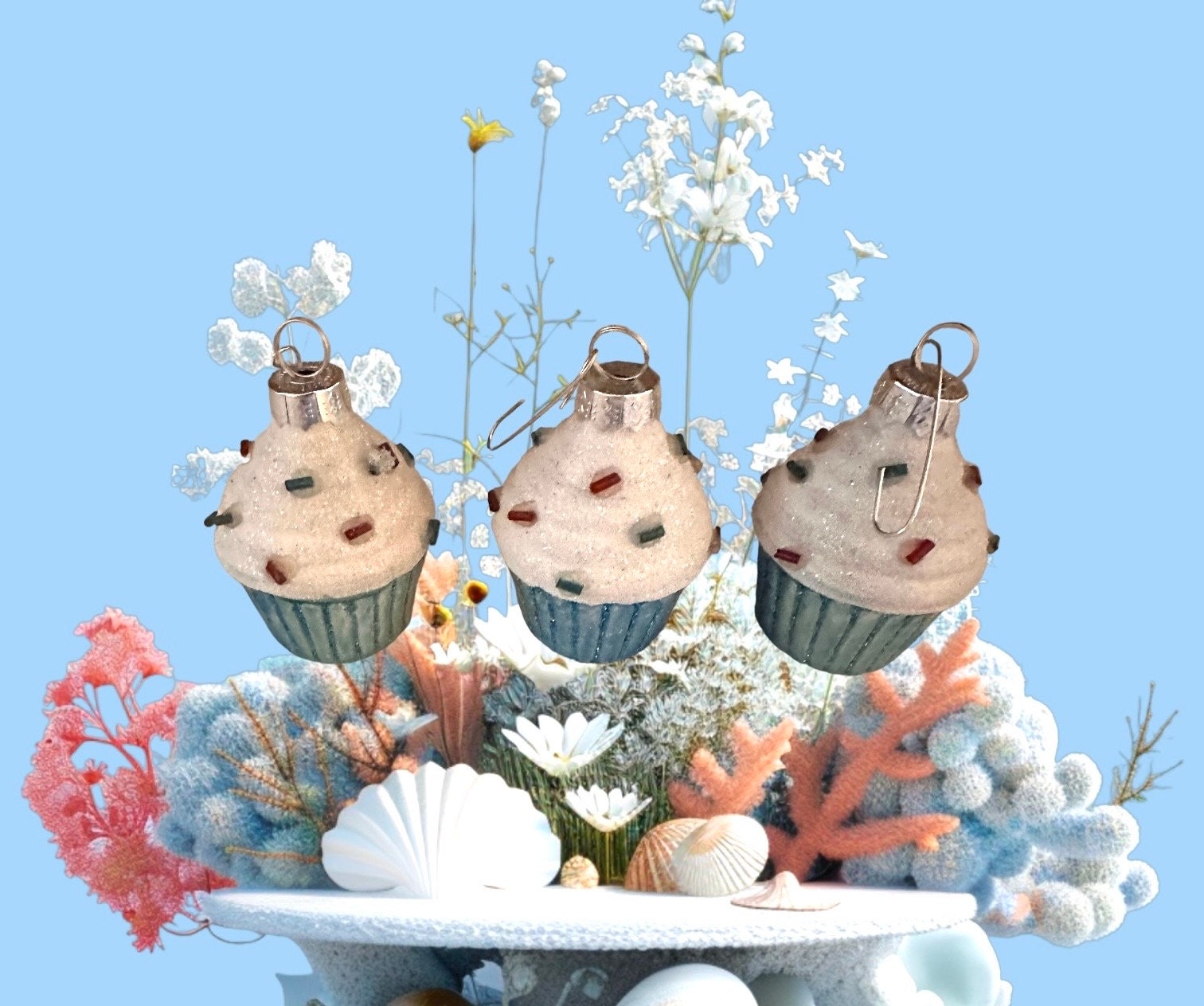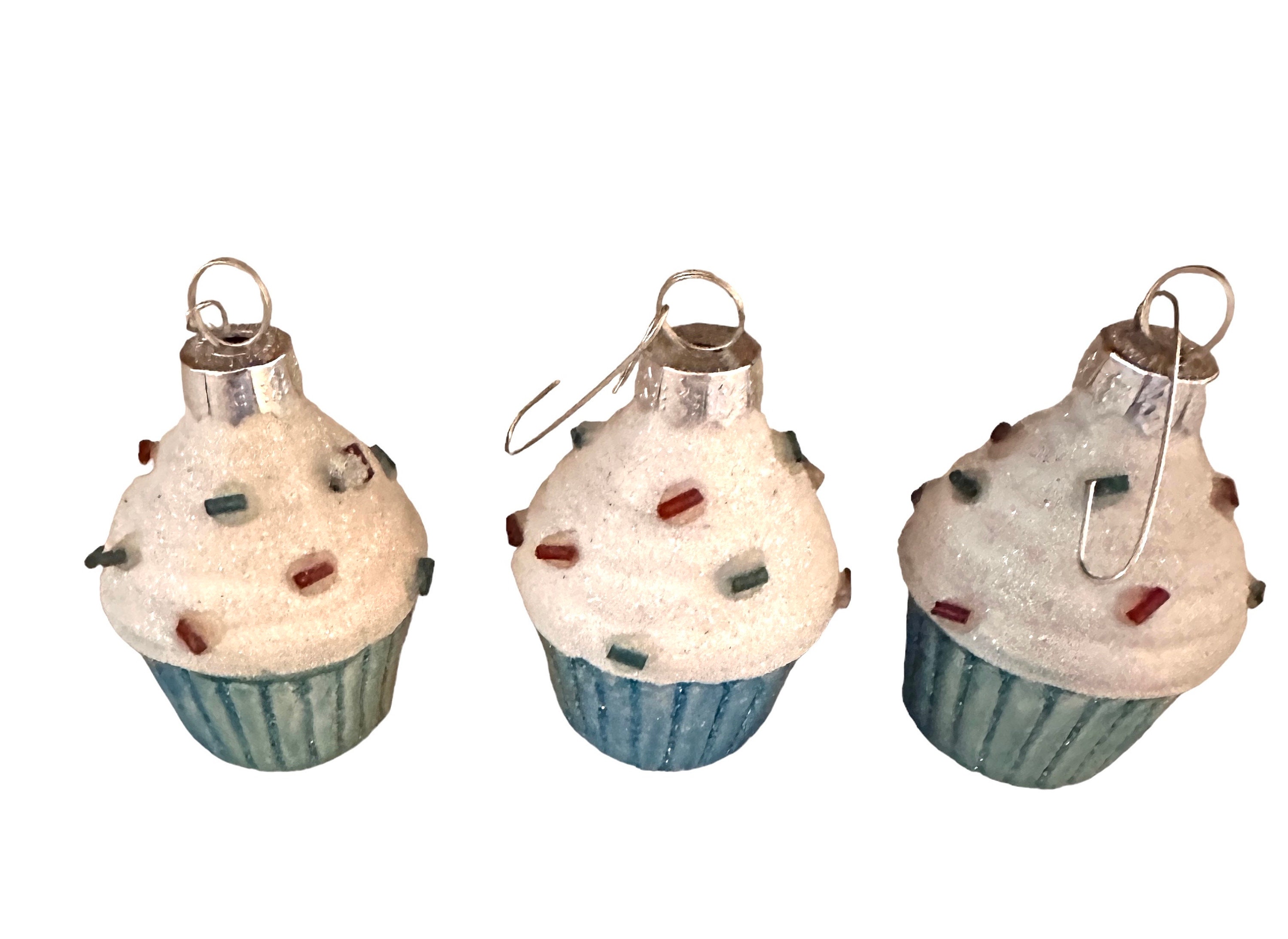 - Set of 3 vintage glass cupcake Christmas ornaments
