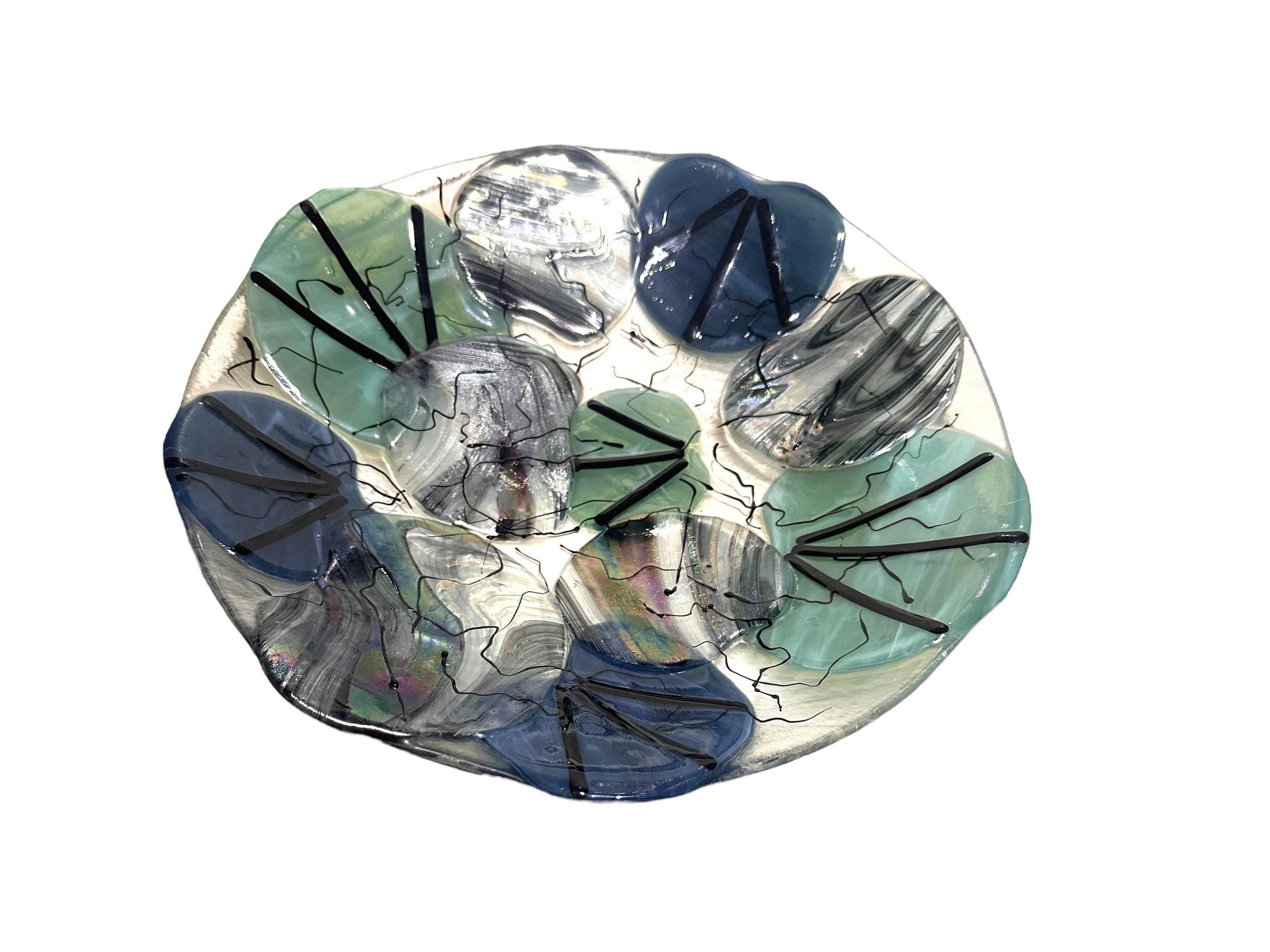 Fused Art Glass Bowl: Lily Pad Design, Handmade Glassware