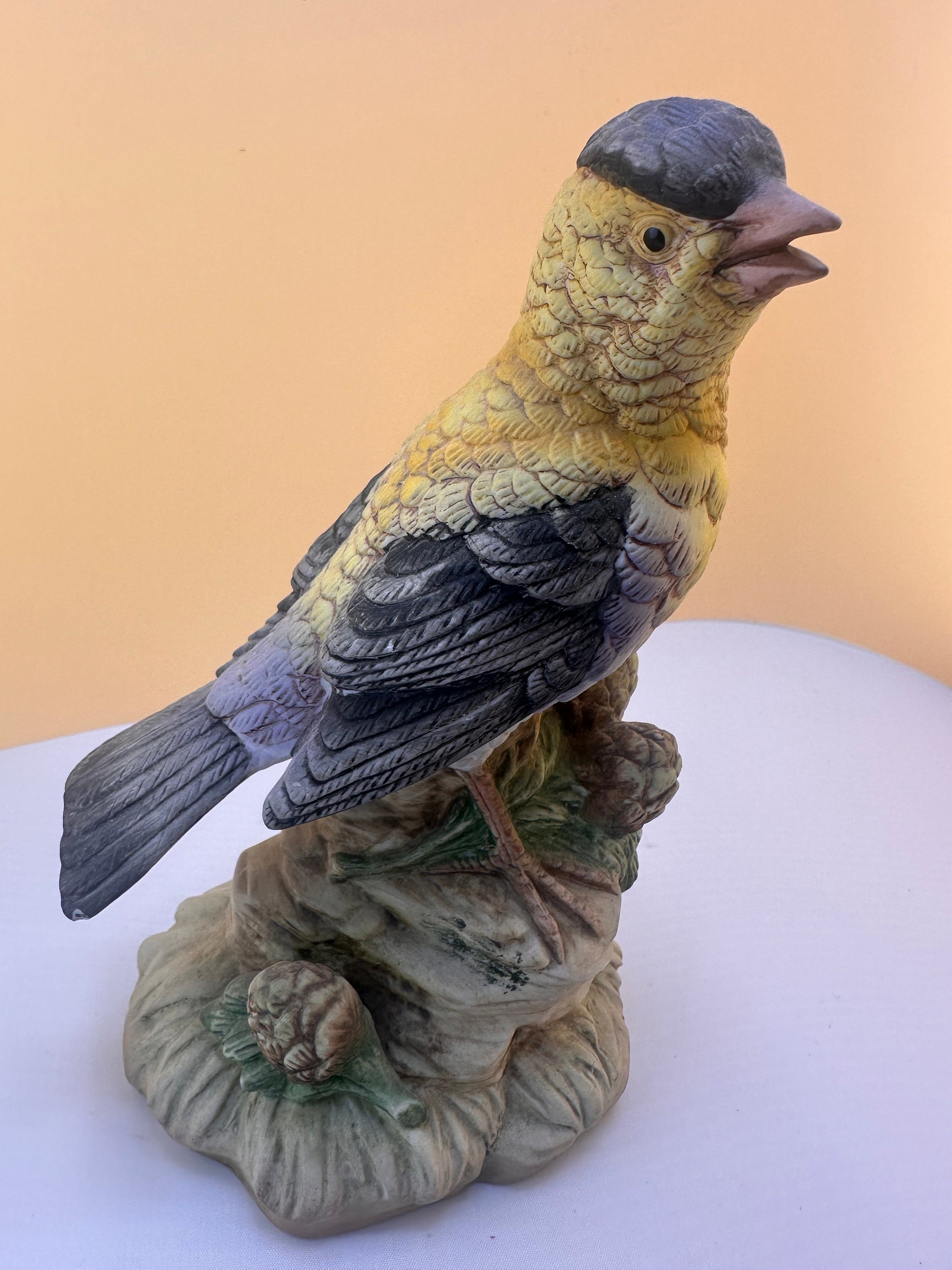 Lefton American Goldfinch Figurine: Bisque Porcelain Bird Statue